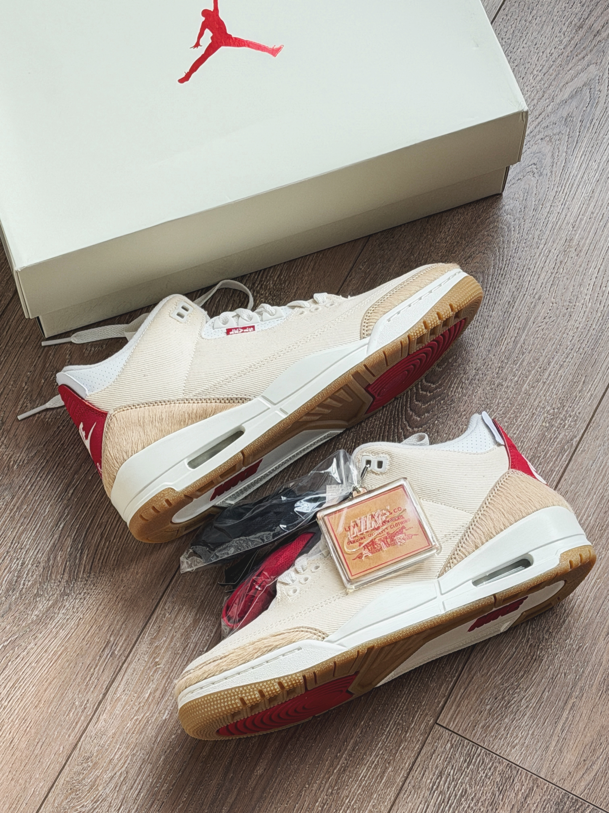 本篇笔记关联了Air Jordan 3 运动休闲鞋 潮流复古抓地支撑缓震合成革圆头 Levi's联名/米色/红色等商品,为用户提供真实的使用体验和购买参考。