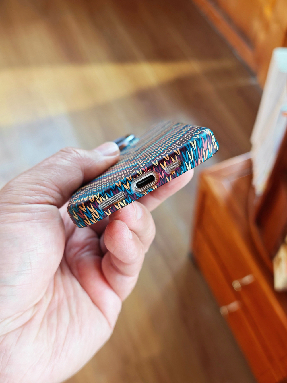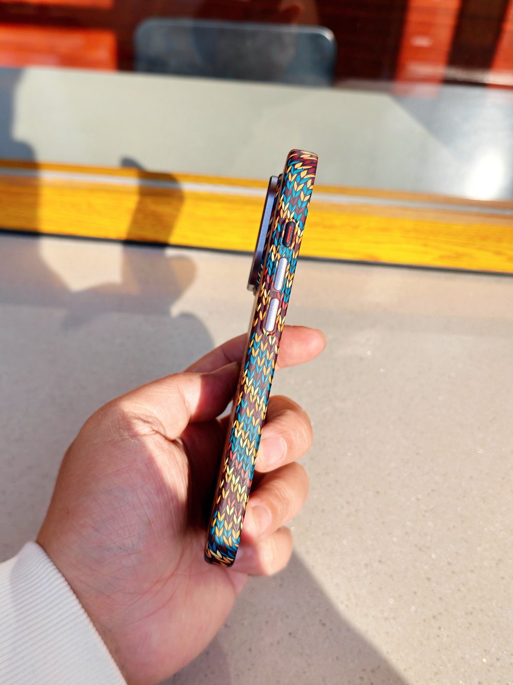 给iPhone16 Pro淘的波西米亚PC硬壳,好看还总被误认为碳纤维(实际价格很亲切)!特别服这个壳的设计,套上严丝合缝不松垮,拆装却顺手没阻力(怎么做到的?)——这点对于我们这种经常爱换壳的人来说,真的是太-戳-心了!壳体轻薄还内置隐磁环,磁吸配件都能搭,微凸细边框不仅不硌手,还稳稳保持了屏幕的一体感。壳美价好手感佳,直接列入我的下一款新机配壳必选清单!