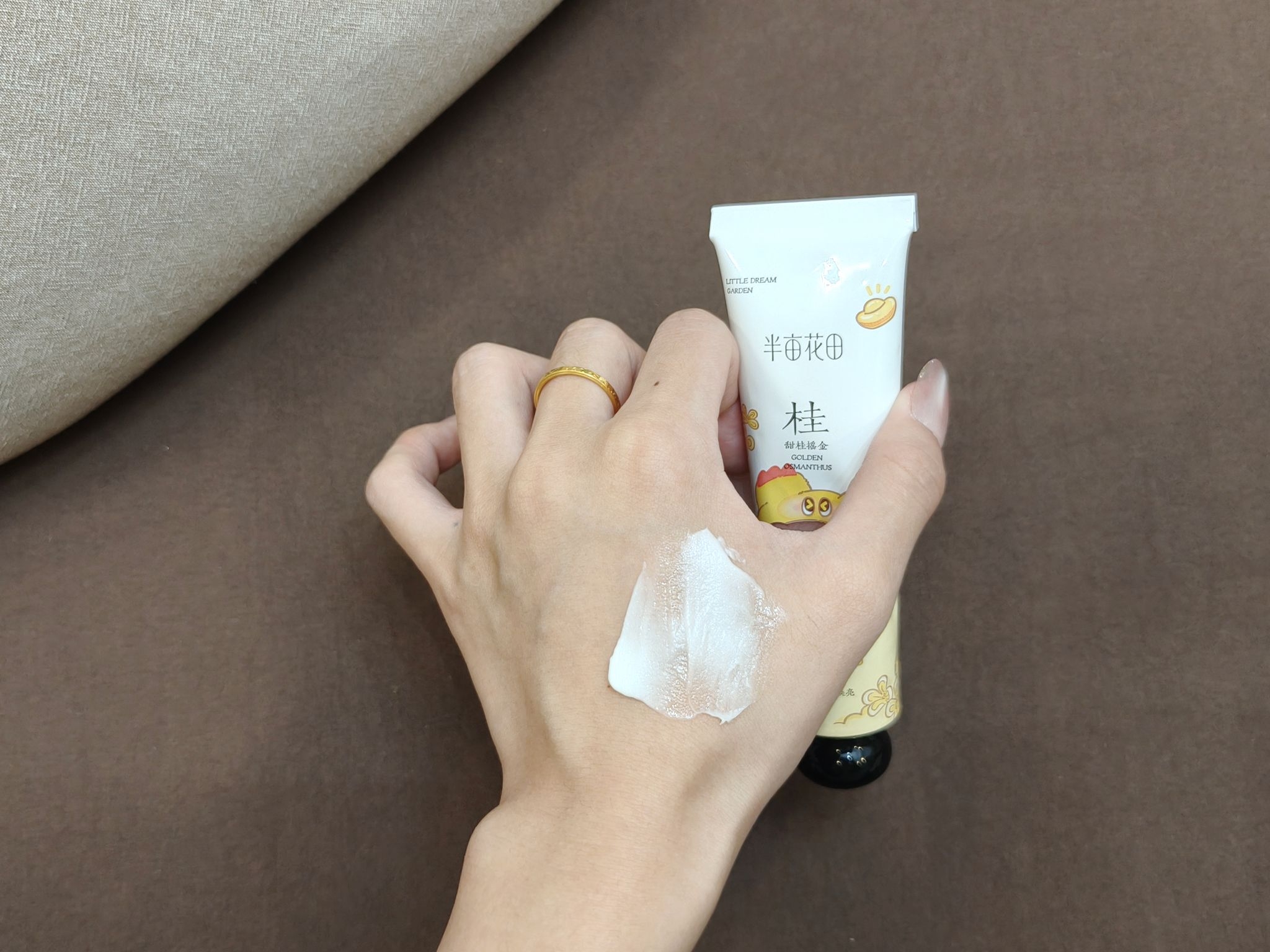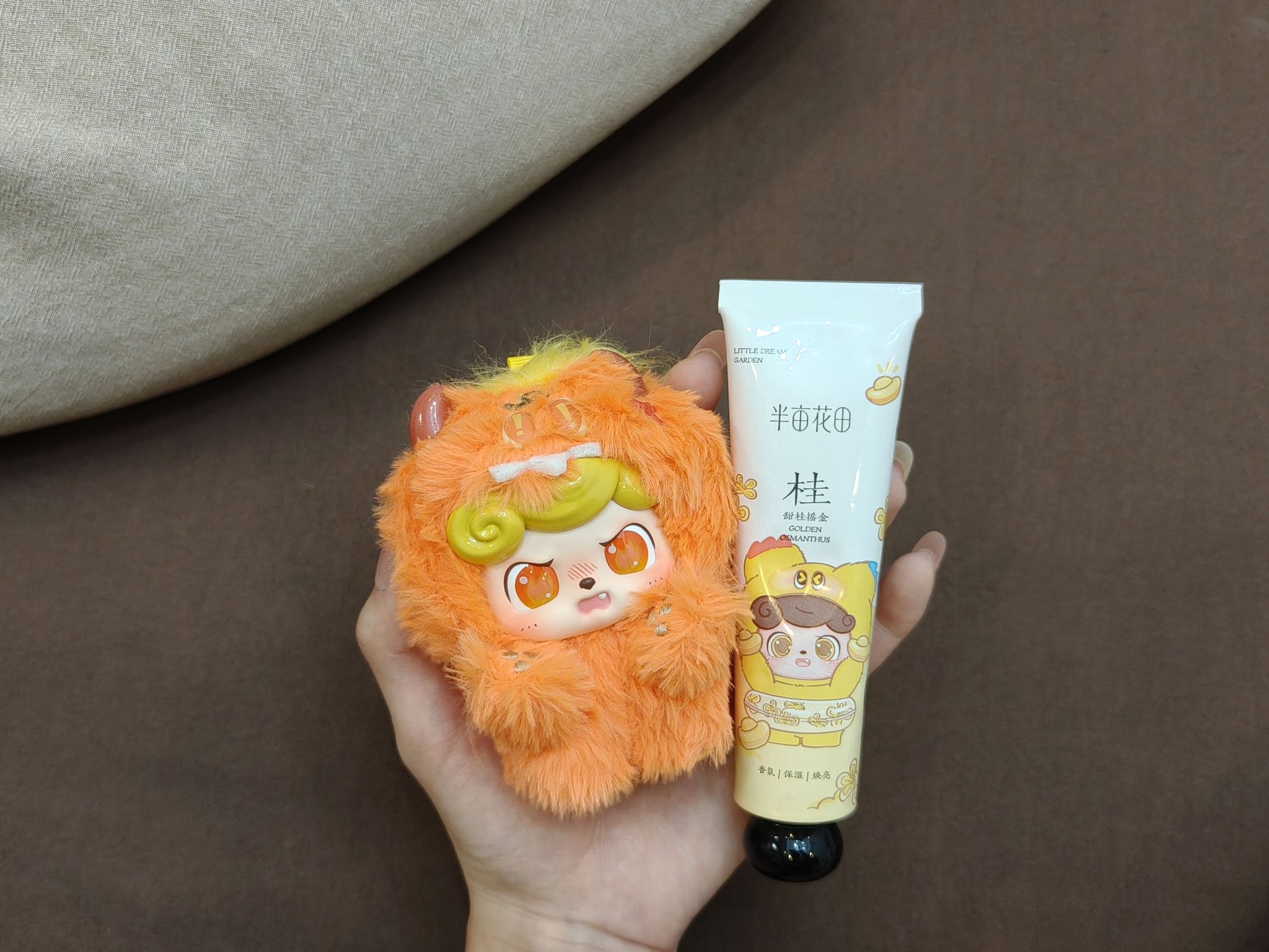 半亩花田居然和Q宝联名了!!这是要萌鼠谁啊!!而且买手霜礼盒还能抽Q宝盲盒谁懂啊,直接一套四个味道全买回来!!! 而且谁敢想我还拆到了很想要的怒烧狮子头真的好可爱,华晨宇同款,4只手霜的味道也老香了~~ ✨甜桂摇金:这个味道就很适合现在用,满满的桂花香闻起来明媚又治愈!!有一种似有若无的桂花清甜,还以为把桂花树搬在了身边呢! ✨桃野玫瑰: 是谁想到的把桃子🍑香和玫瑰花香混合在一块!!谁懂刚挤出来就...