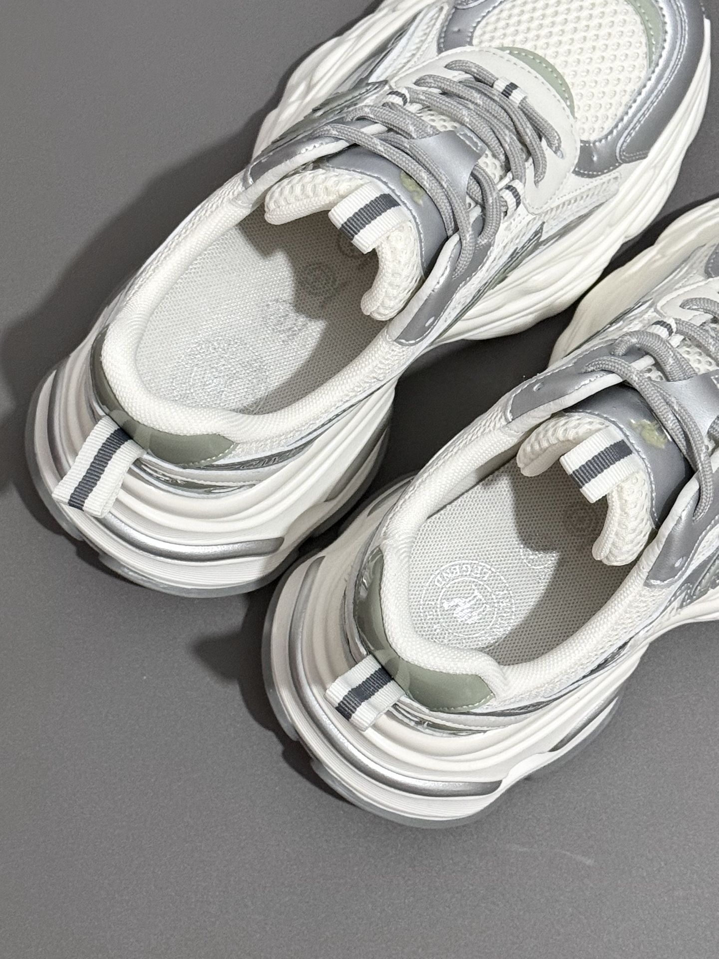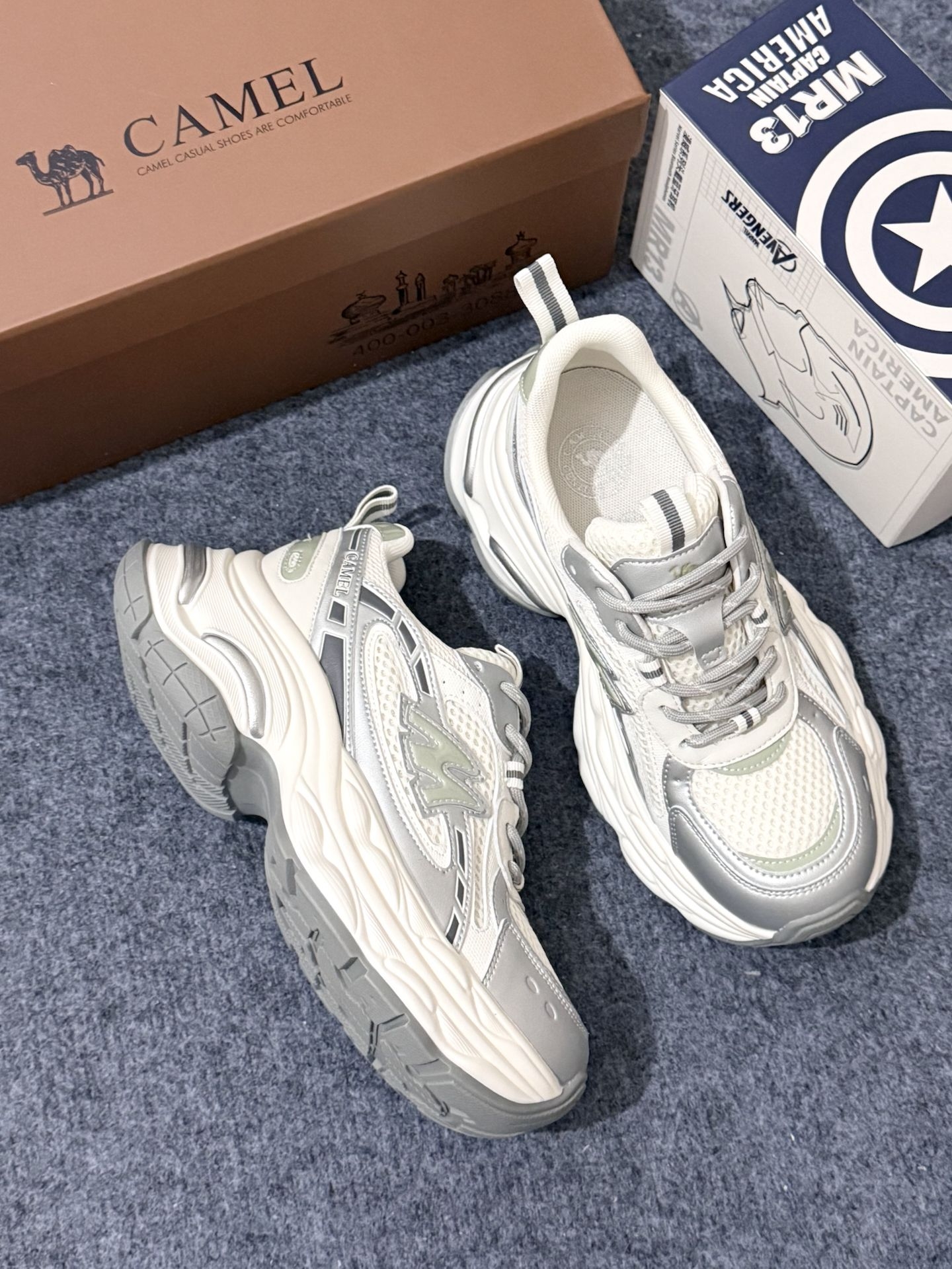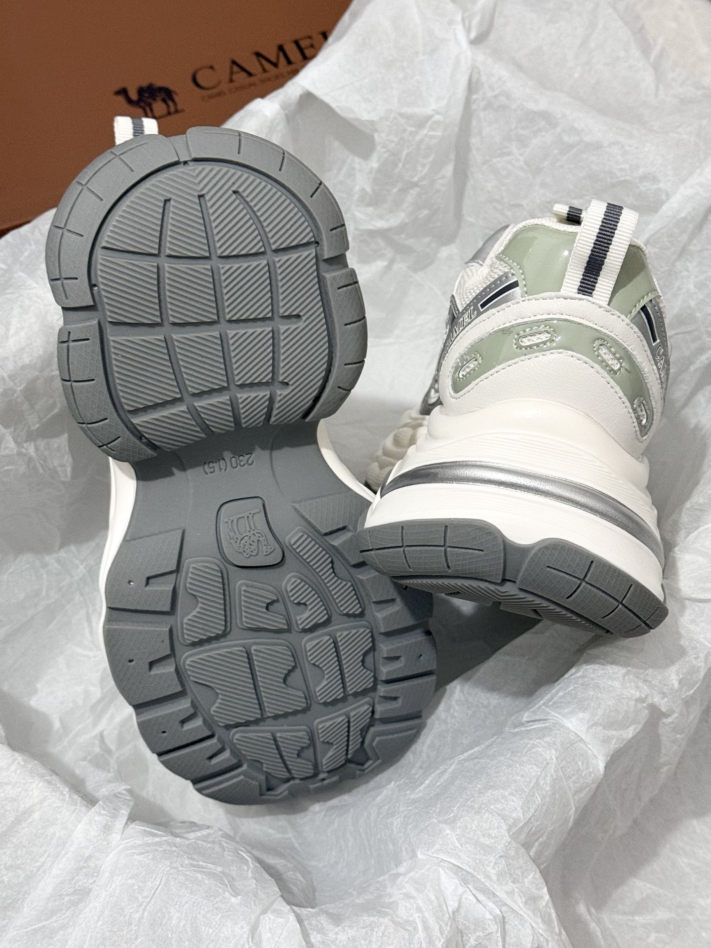 就素骆驼家的滴介双老爹鞋呀 它和我的耳机有点搭喔 银色y2k风我感jio巴里巴气滴 搭配上牛仔裤or休闲裤都阔以捏 我穿了一天也不觉得脚累 穿上它带上耳机我要粗去玩啦~