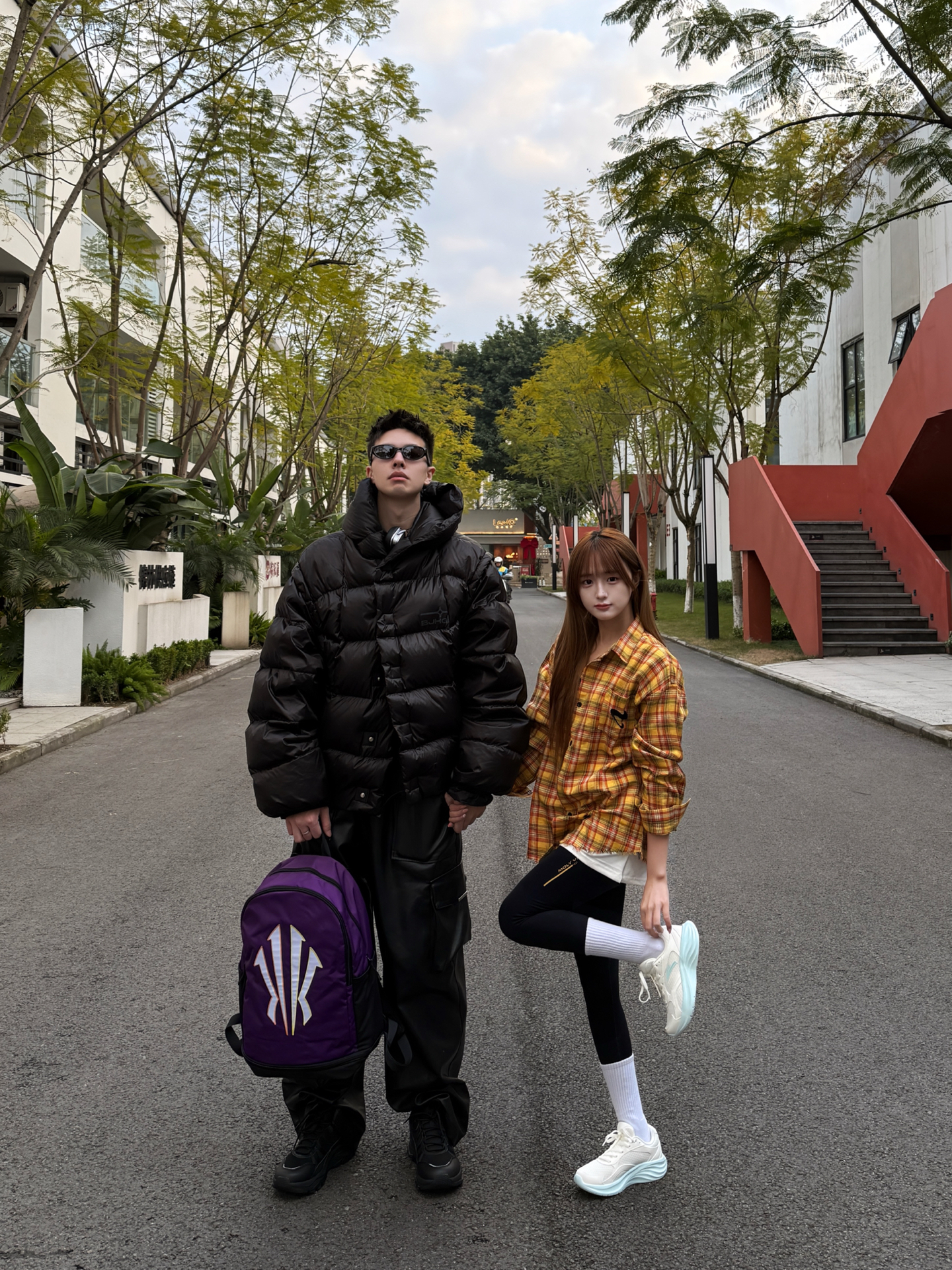 开春情侣出街这么穿,回头率直接拉满!男生一身黑硬核到底,安踏探山户外鞋防滑耐磨,搭配欧文系列紫黑背包,24L容量装下两人的随身物品完全没问题,防泼水面料应对开春的小雨也很安心。 女生则是甜酷风,星云2跑鞋轻便软弹,白绿配色清新又显腿长,搭配格子衬衫+leggings,松弛感直接拉满。黑白紫绿的配色碰撞,既有情侣间的默契感,又保留了各自的风格,妥妥的开春情侣穿搭范本! #Anta安踏 #安踏探山...