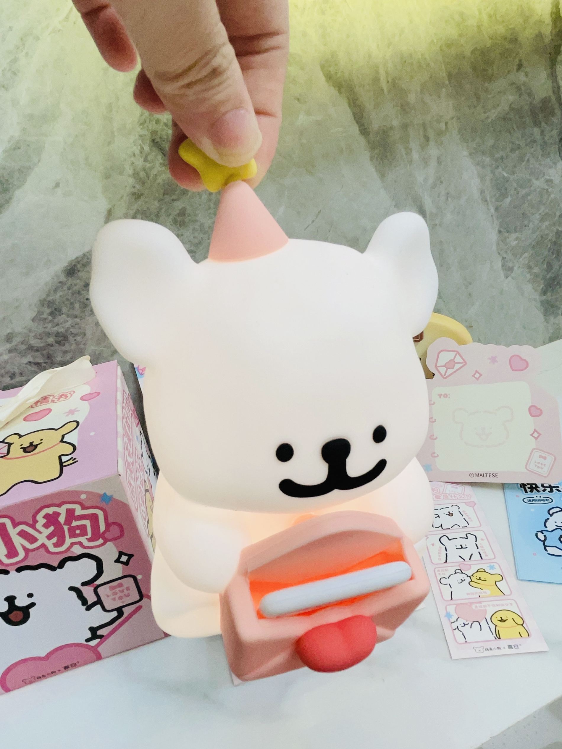 还有10来天就是一年一度的情人节啦 刚好又是春节期间呢 言仓×线条小狗联名的 这款情书💌小狗拍拍灯 拍一拍就亮啦 亮度可以调节 我平常放在卧室里 大晚上起来上厕所hin不错 包装精致 情人节送礼尊都可