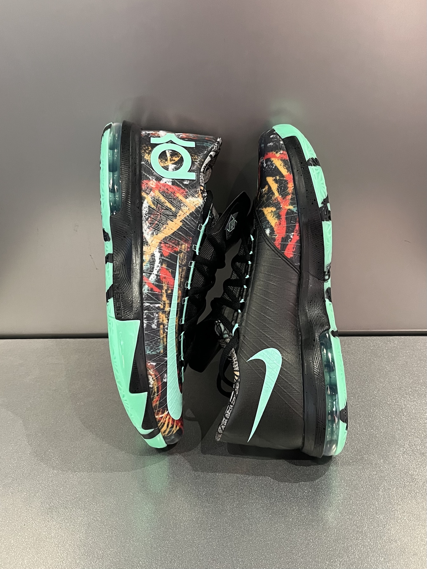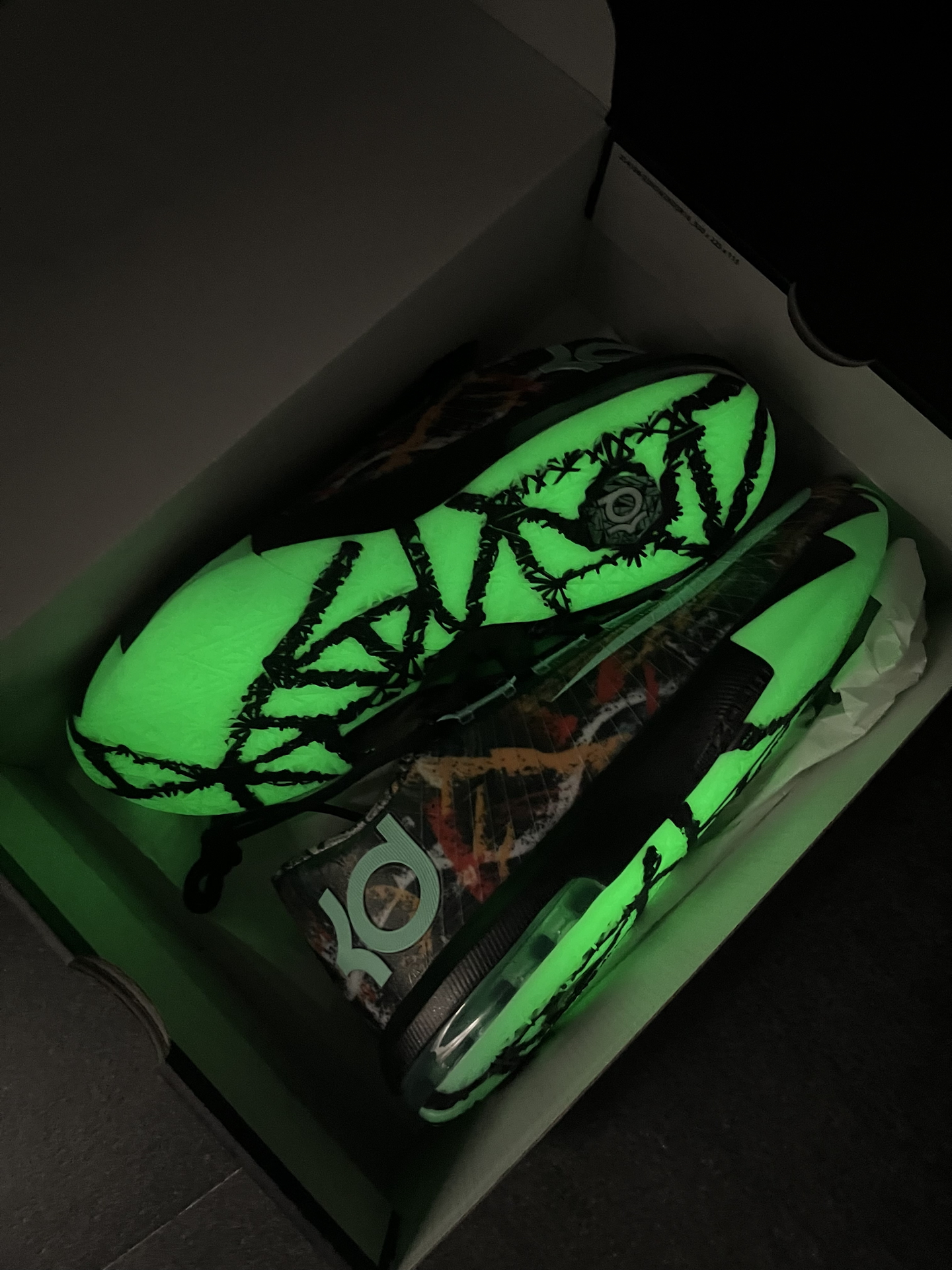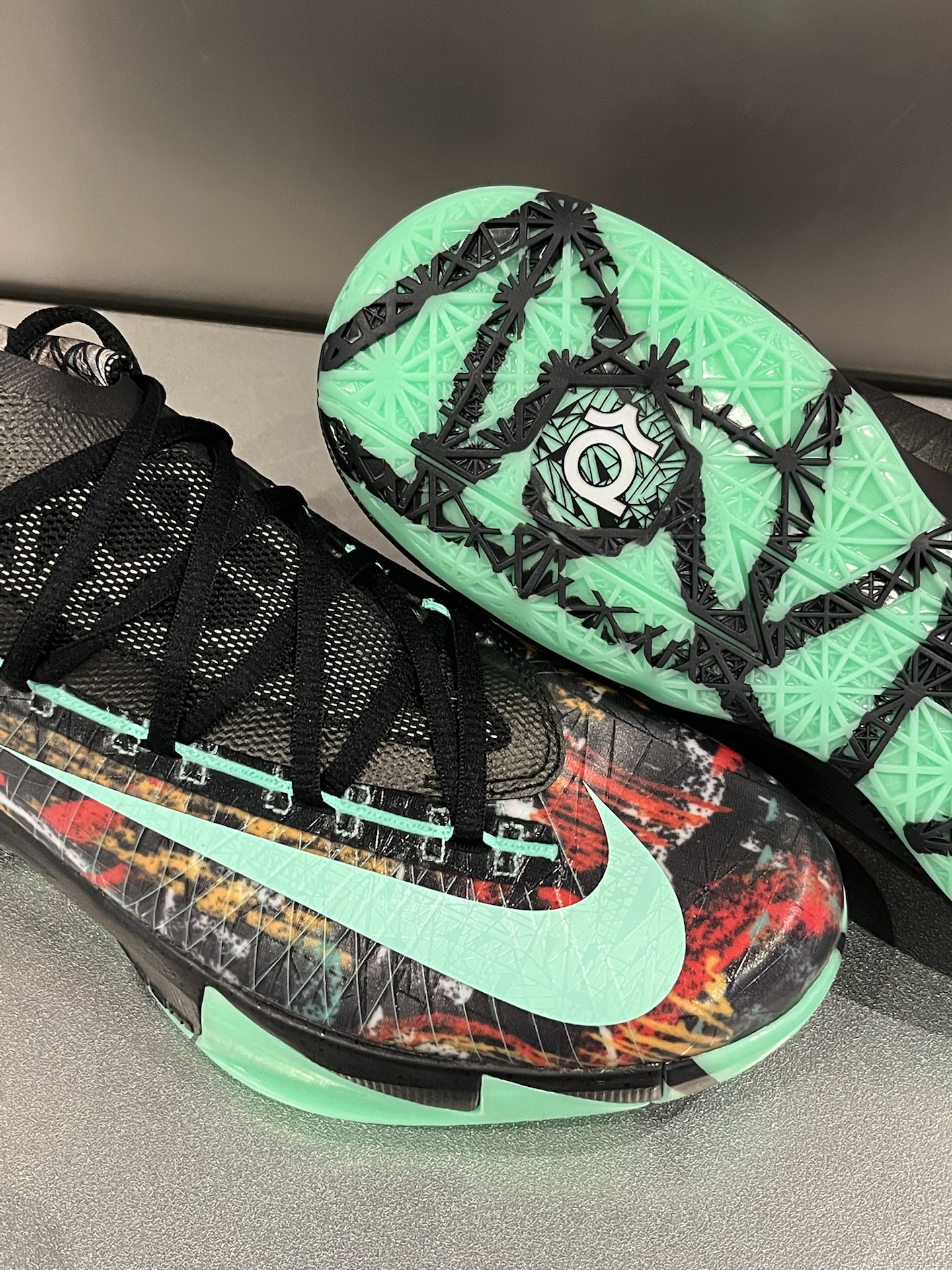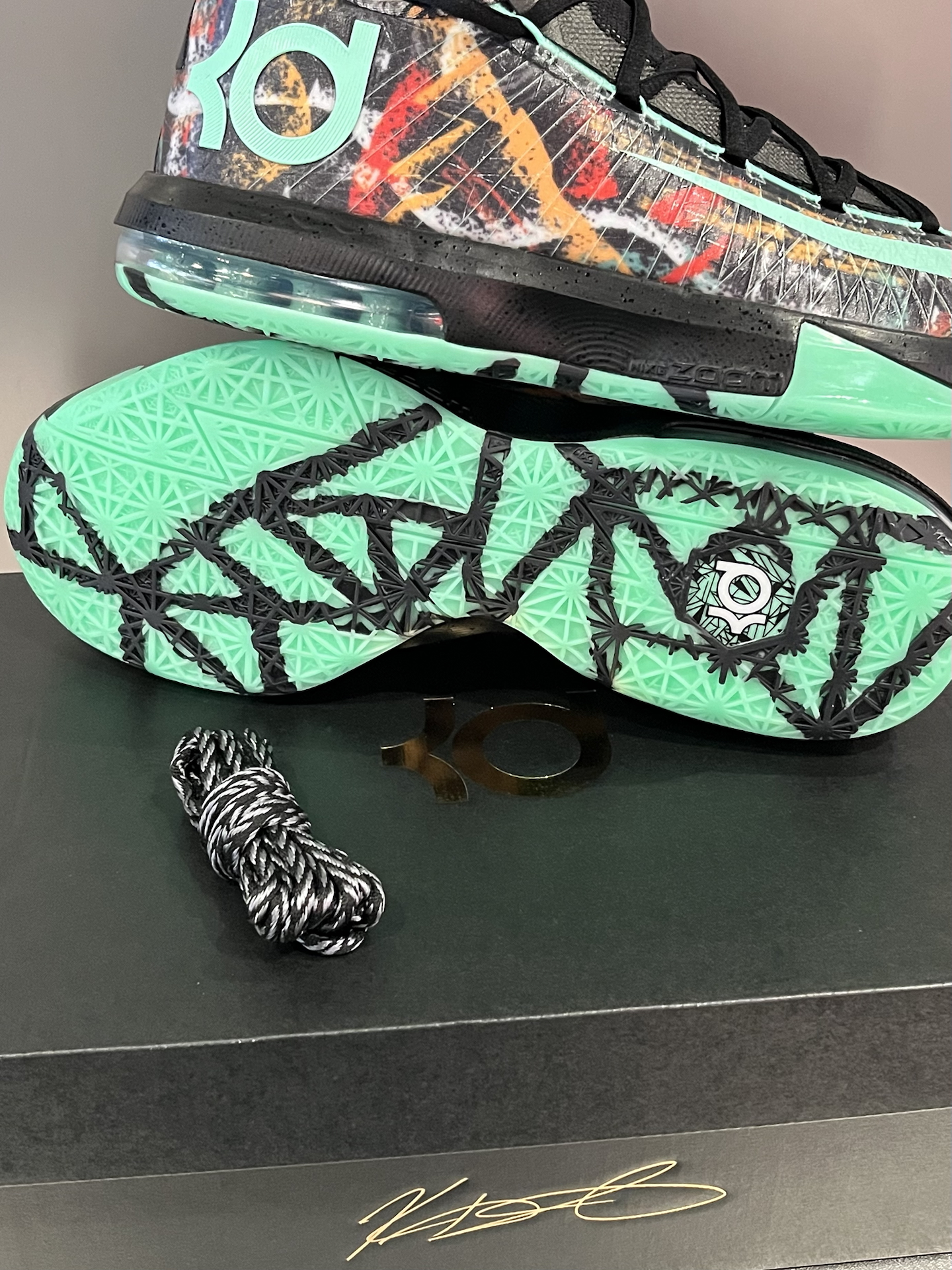2014年新奥尔良全明星赛,杜兰特脚上这双KD6“All-Star”,当年真是眼馋了很久 这次KD6全明星复刻,依旧是手绘涂鸦的质感,夜光效果很明显;浅口低帮的造型,加上抽象风格的图案,甚至还有点足球鞋的感觉 配置是全掌Phylon+前后分掌气垫,脚感中规中矩,后掌气垫可能需要多磨合适应 当年还是学生的我,遗憾没能入手,而12年后的复刻,直呼“爷青回”⁉️ #新鞋零时差 #学生党有自己的鞋...