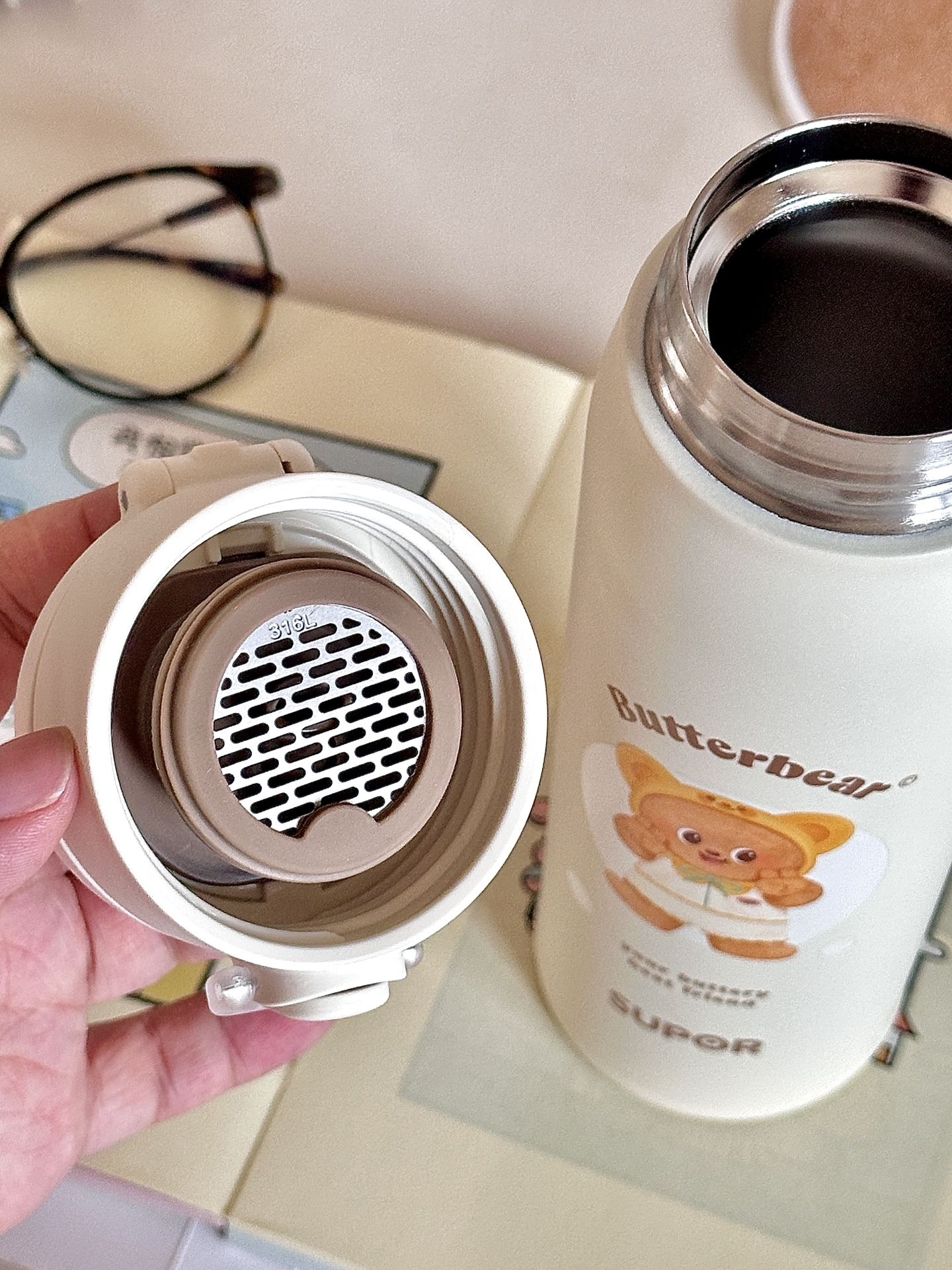 新入的黄油小熊保温杯好戳我😭 软fufu的白色配上小熊,真的好可爱 我选的内里和茶漏🍵全是不锈钢的 我感觉冬天用它来泡点花茶刚好好 这种细长款设计🧡,我手拿着大小刚好 不管是放包里、放办公桌上,都蛮好的 还有黄油小熊的小贴贴✨qq的感觉 我觉得用来作为小礼物也是可以的呢 #花小钱买大杯 #这些好物超哇塞 #新家的100件快递 #家的秋冬新皮肤 #家的秋冬精选好物 @得物家居