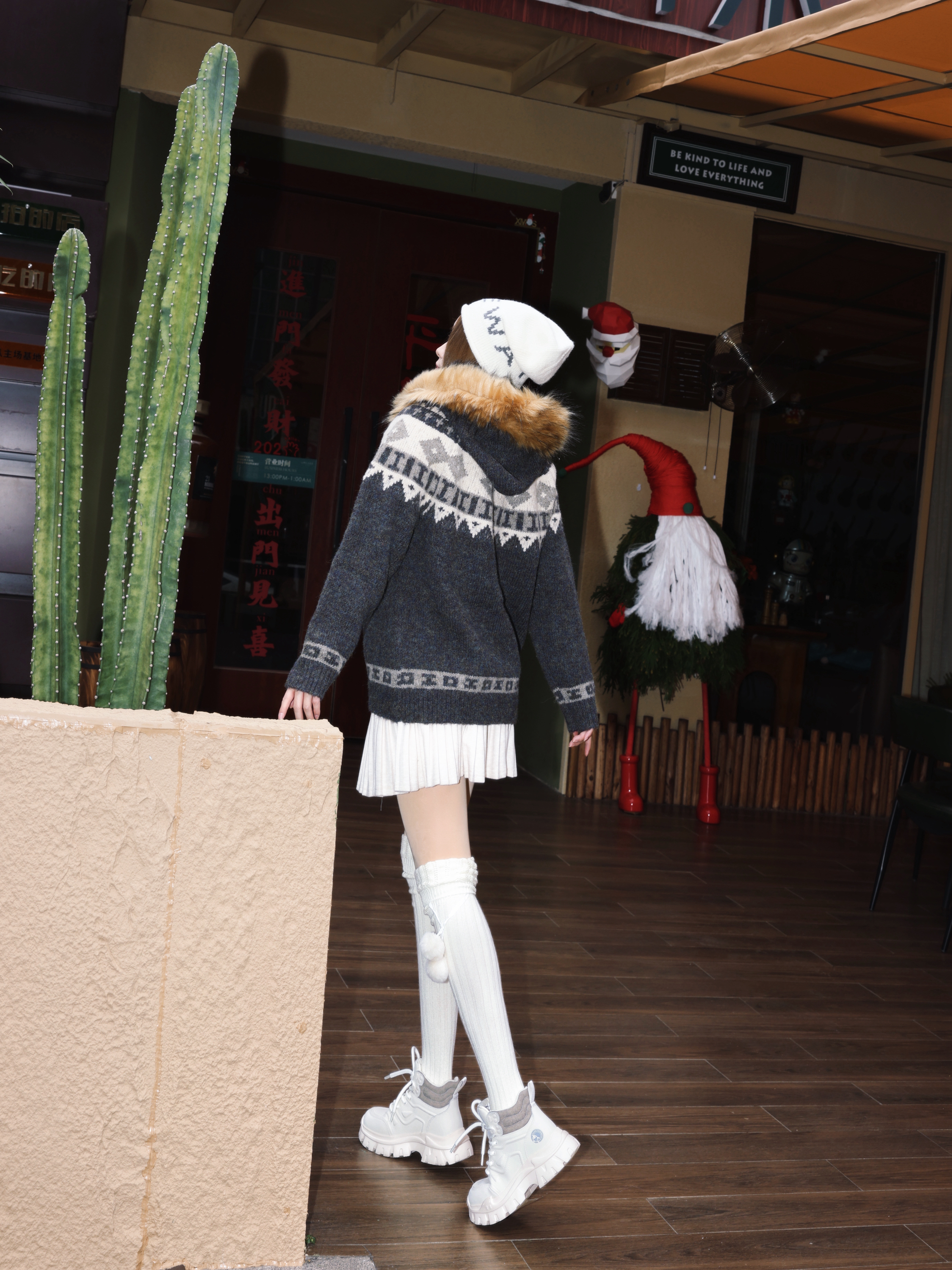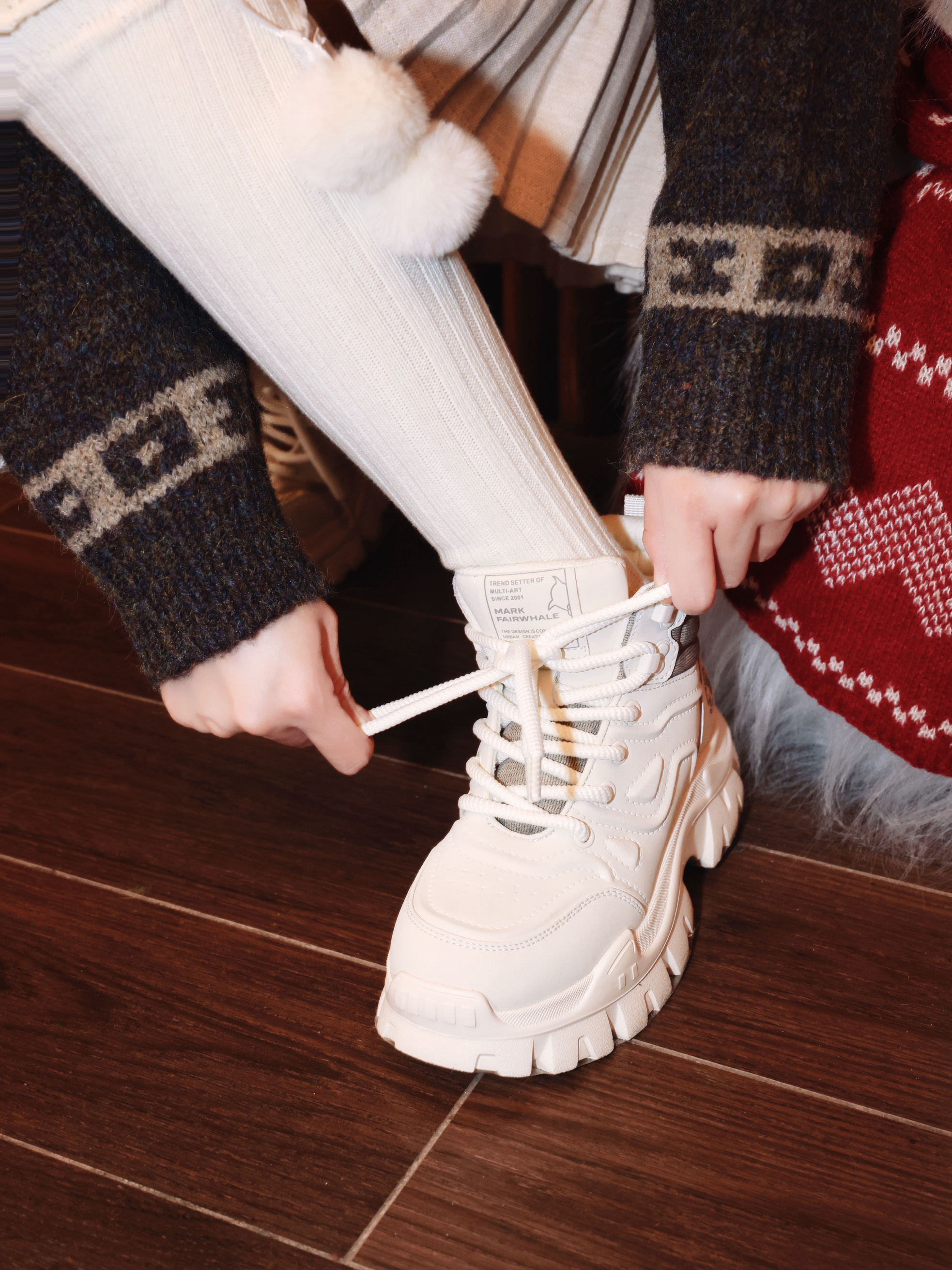 ❄️天冷真的好适合这种氛围感费尔岛ootd!! - 今天的毛茸茸外套就很有韩味 复古配色加上可拆卸的毛领 有点小ins还有点小设计 冬天穿暖呼呼的刚刚好~ - 衣服深色鞋子可以选浅色调的 厚底款的浅砂白马丁靴 厚底增高的鞋在秋冬穿搭界可以说太需要了 可以搭配自己喜欢的衣服,穿出去还能比例好看了🤩 -