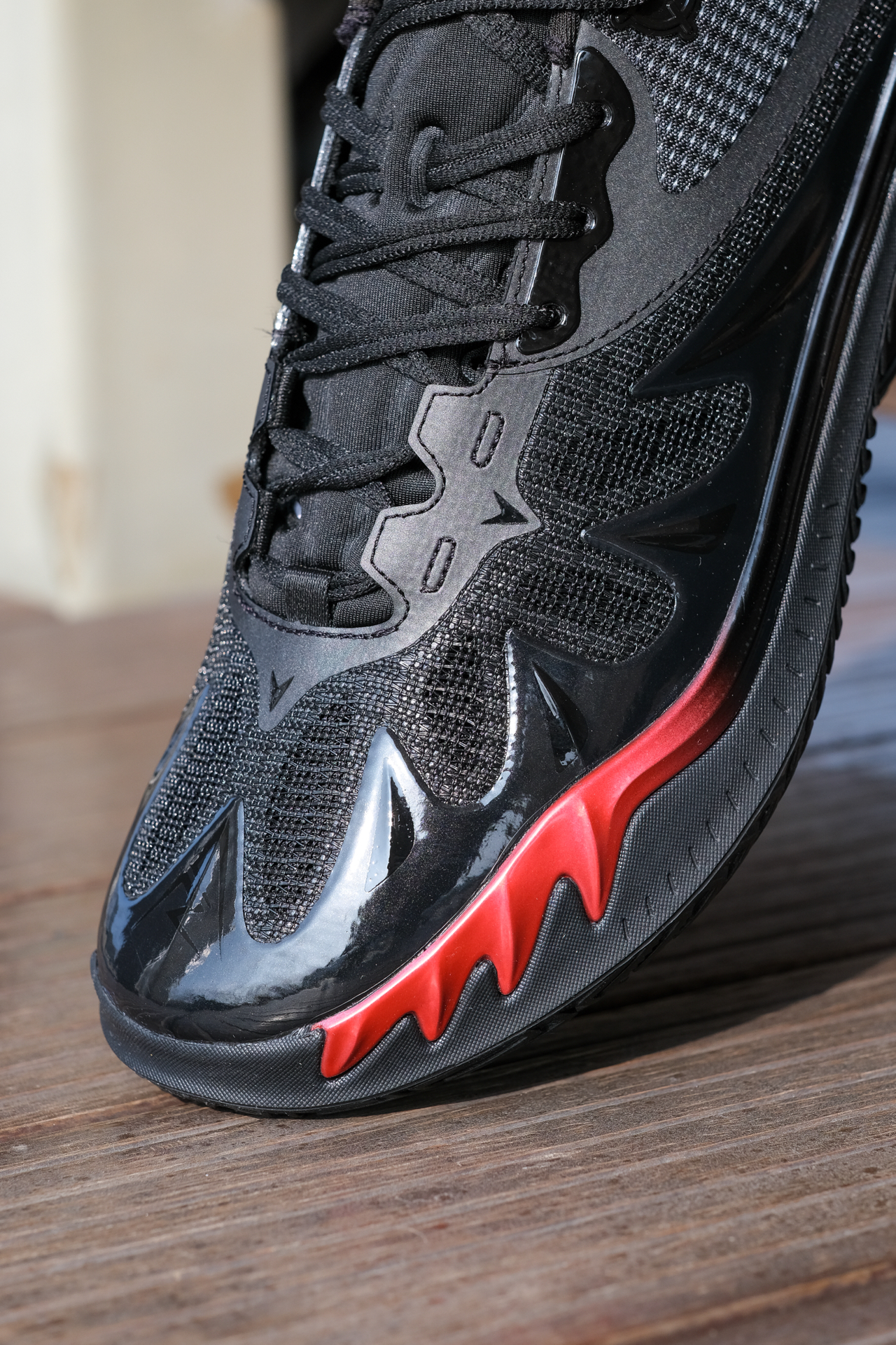 分享下AR3VISION新配色烈火,鞋身以黑色为主加上红色的飞刀状的TPU点缀,还是渐变的有种淬炼之后重生的感觉,很酷飒。 AR3 VISION之前也有实战分享,梭织鞋面搭配类似皮革的热力投篮区,强度在线透气也不错。中底全掌咻弹科技内嵌一块碳板,脚感韧弹支撑在线,启动推进感很明显。搭配人字纹橡胶大底,抓地防滑都是没有问题的。 比较适合有爆发的学生党,经常打全场冲刺型的后卫。尺码建议:正常即可@准者...