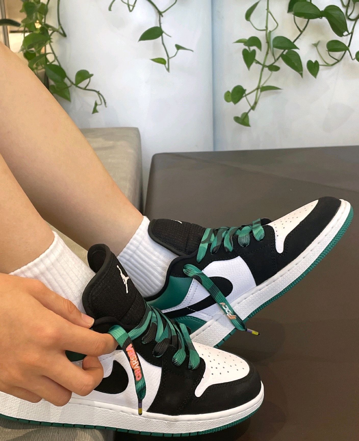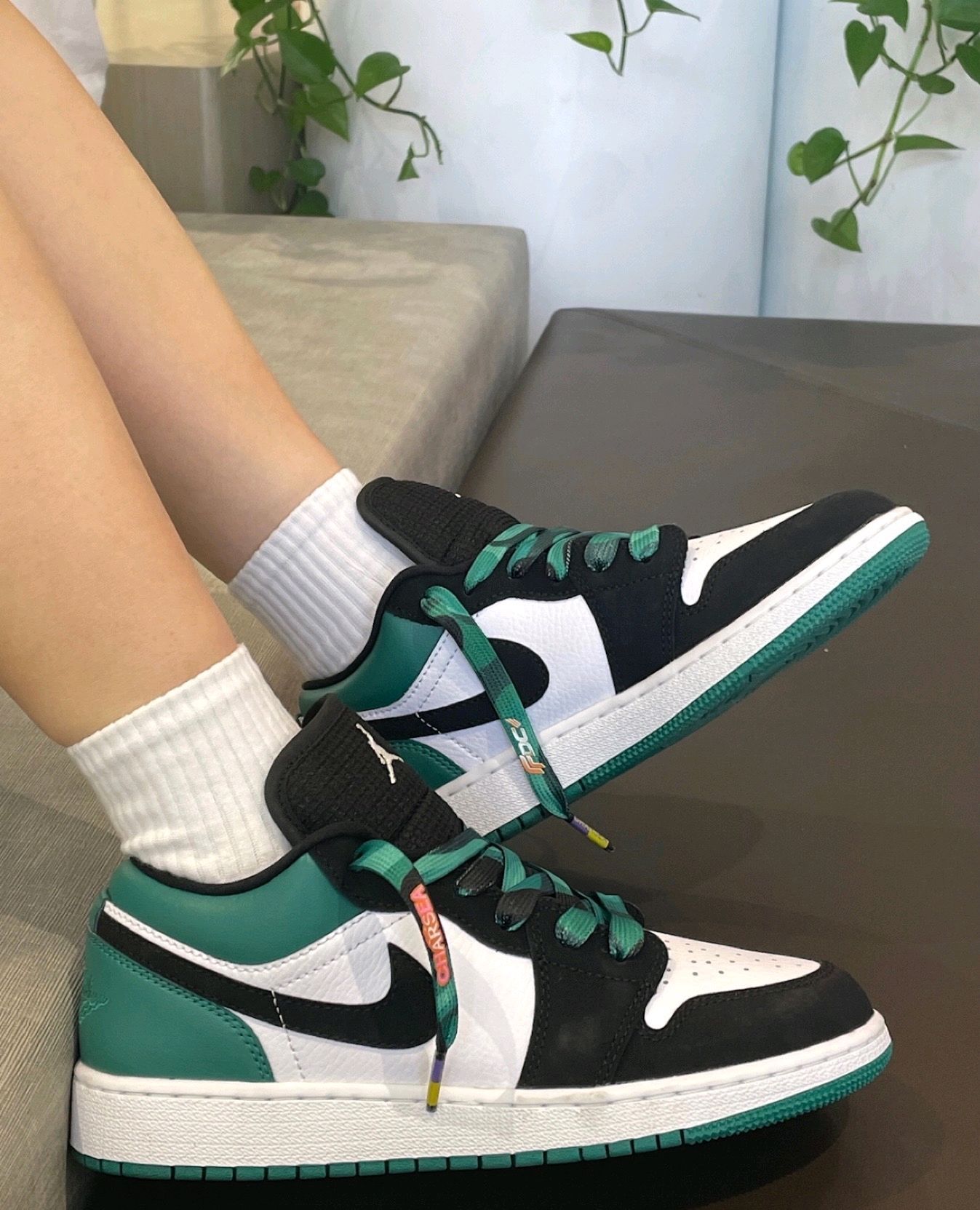 🍏鞋:Jordan Air Jordan 1 潮流复古细节精致复古篮球鞋 GS 黑绿脚趾 🍏:细节呈现鞋面设计黑白搭配绿色鞋面并在饰面上放置通风孔,舒适透气。中底设计中底轻质舒适,兼具缓震反弹性能。鞋底设计橡胶鞋底搭配彗星底纹防滑耐磨,营造经典外观。