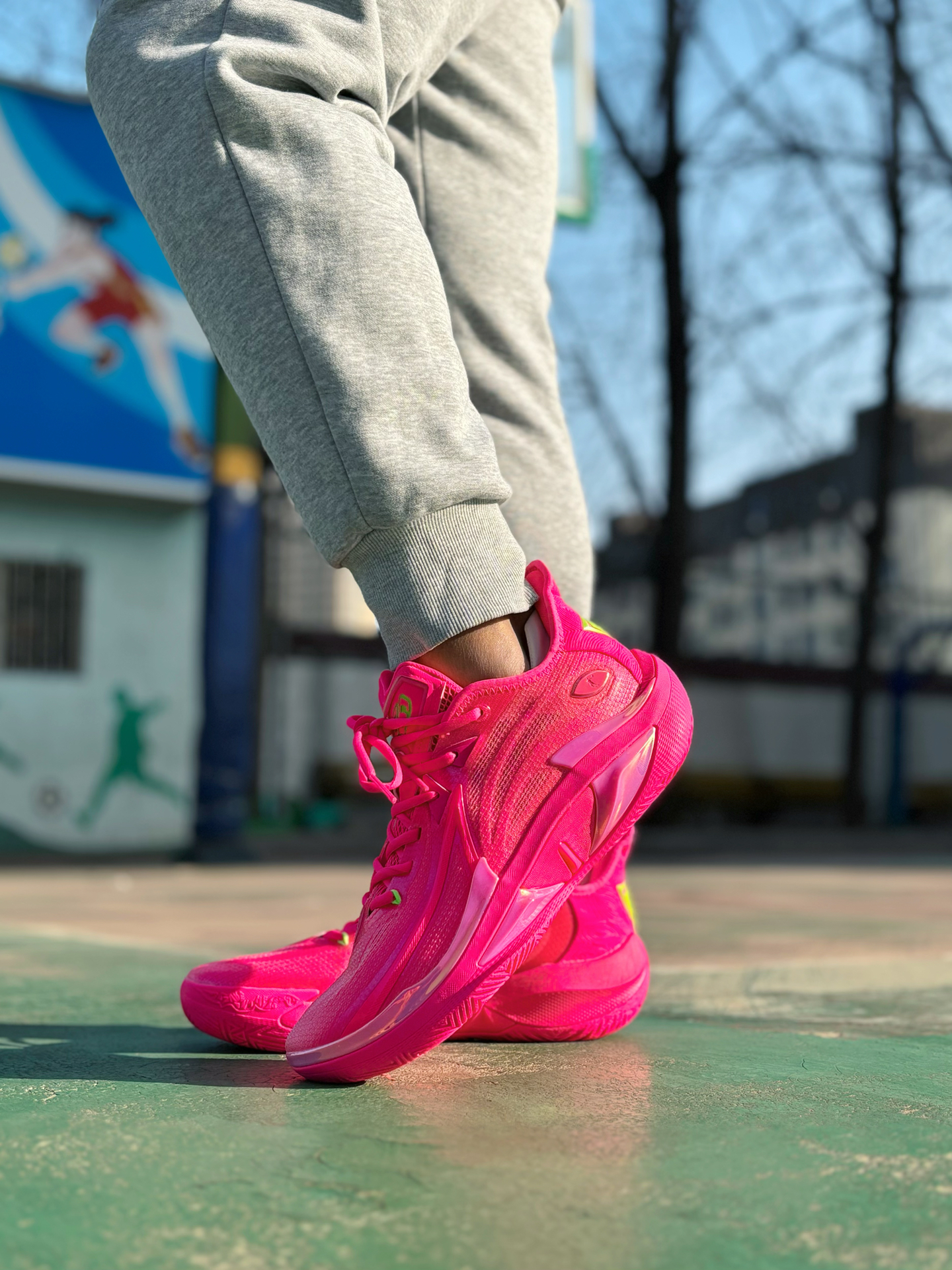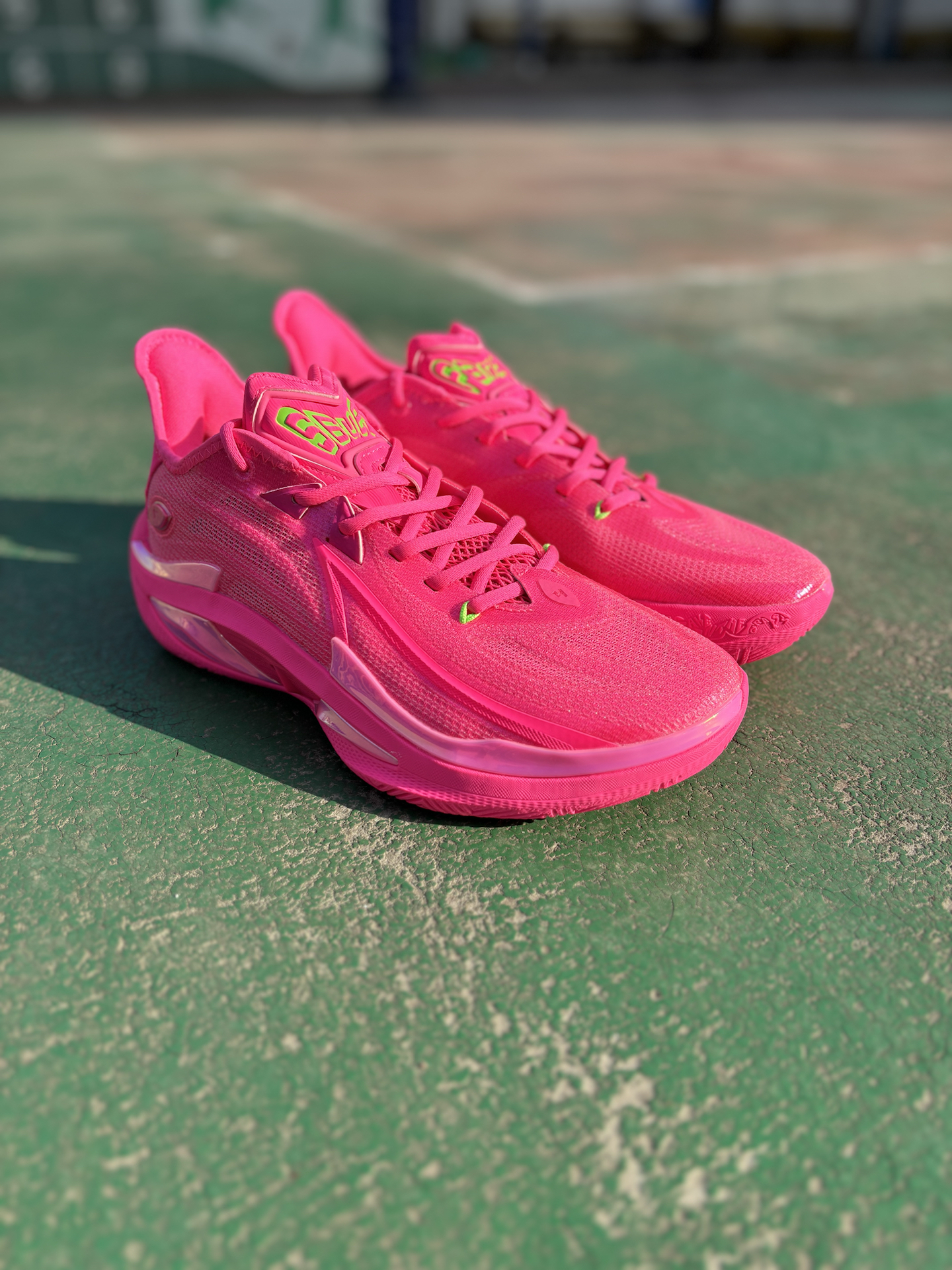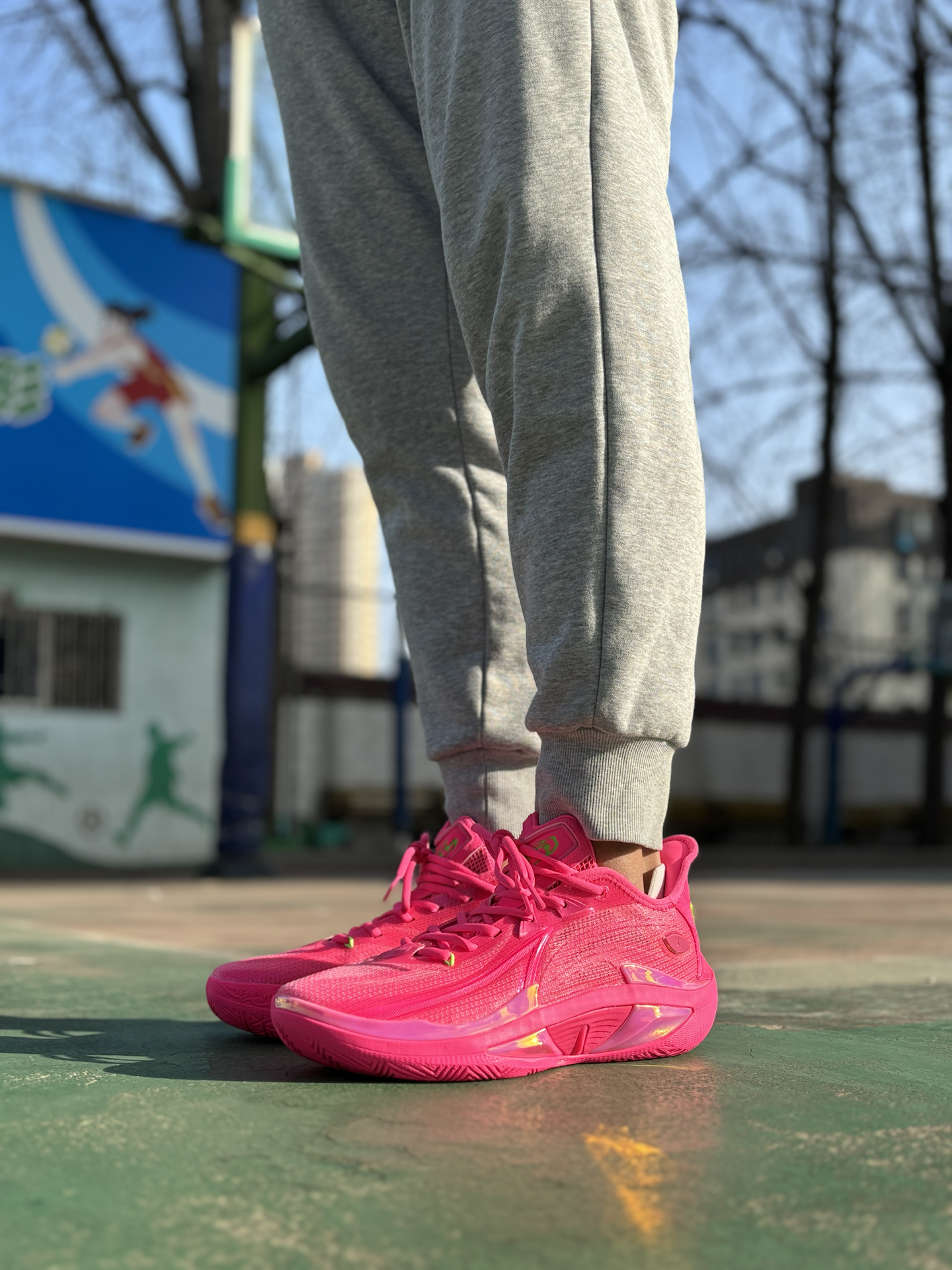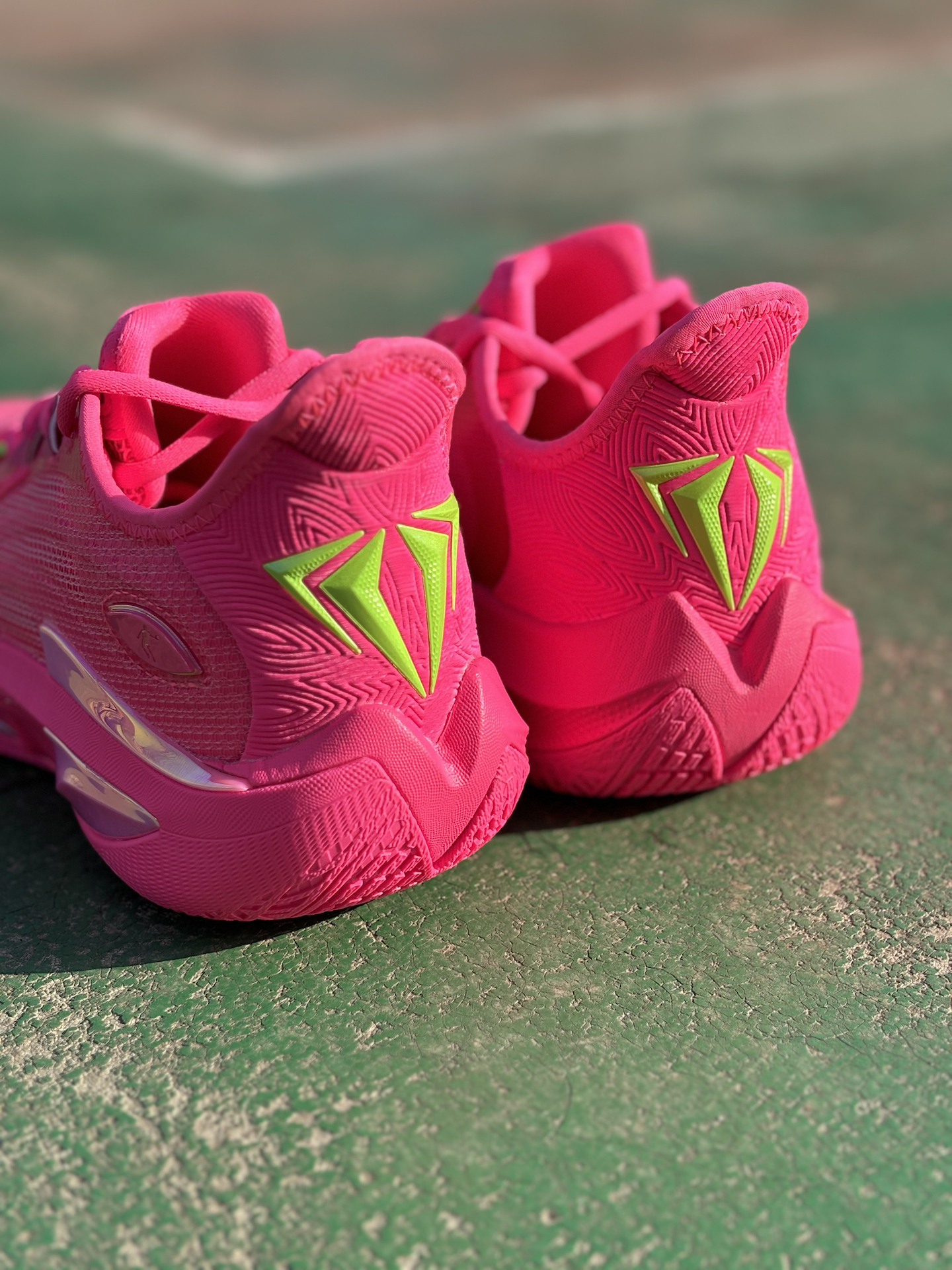 #澎拜脚感选哪双 #预制春节穿搭 #学生党有自己的鞋修 #穿新鞋美美过年 #礼物节 刚入手了 #乔丹 毒牙4.0反向配色🩷 上脚粉色加绿色这配色极具冲击力❗无论是学生党还是实战党作为假期打球的实战利器都是不错的选择💓 像我打室外场,突破时脚感还是比较灵活,轻弹的! 沾点灰的场地防滑性也还不错~ 大家会为这个颜值打多少分呢?!