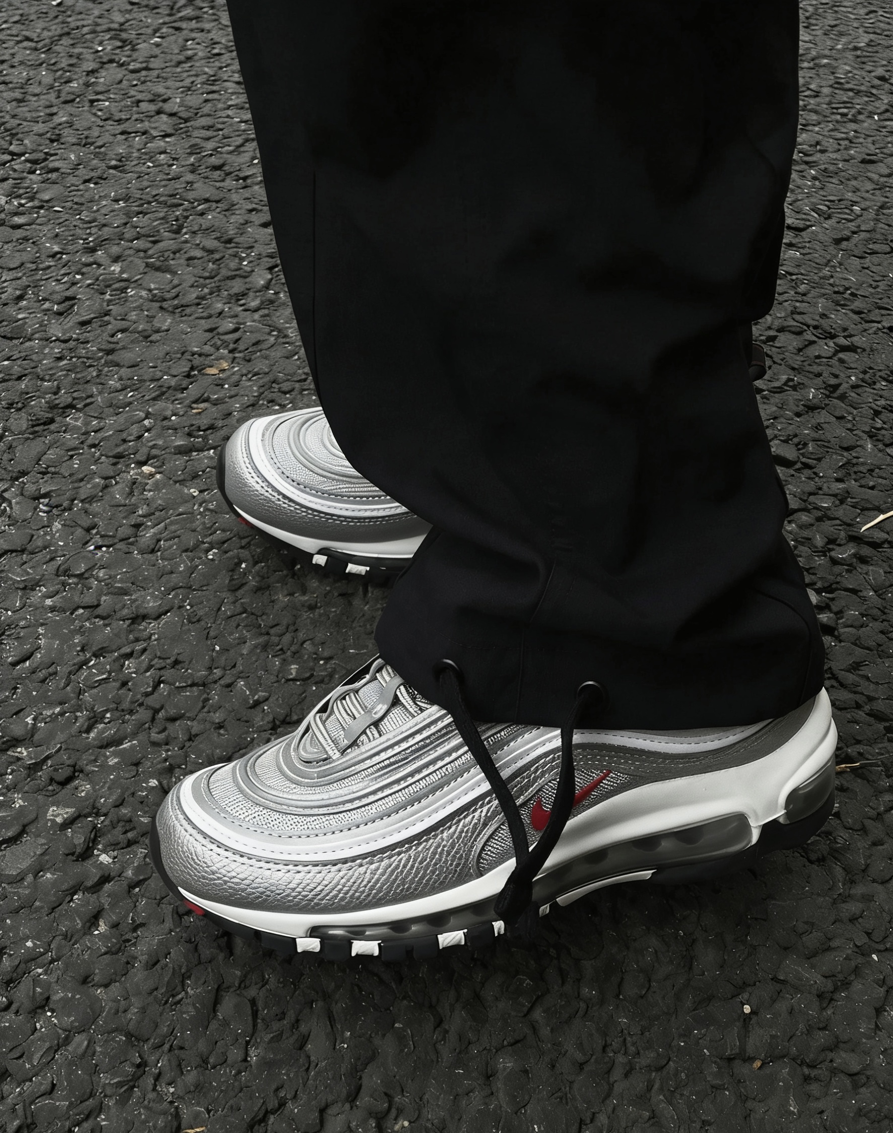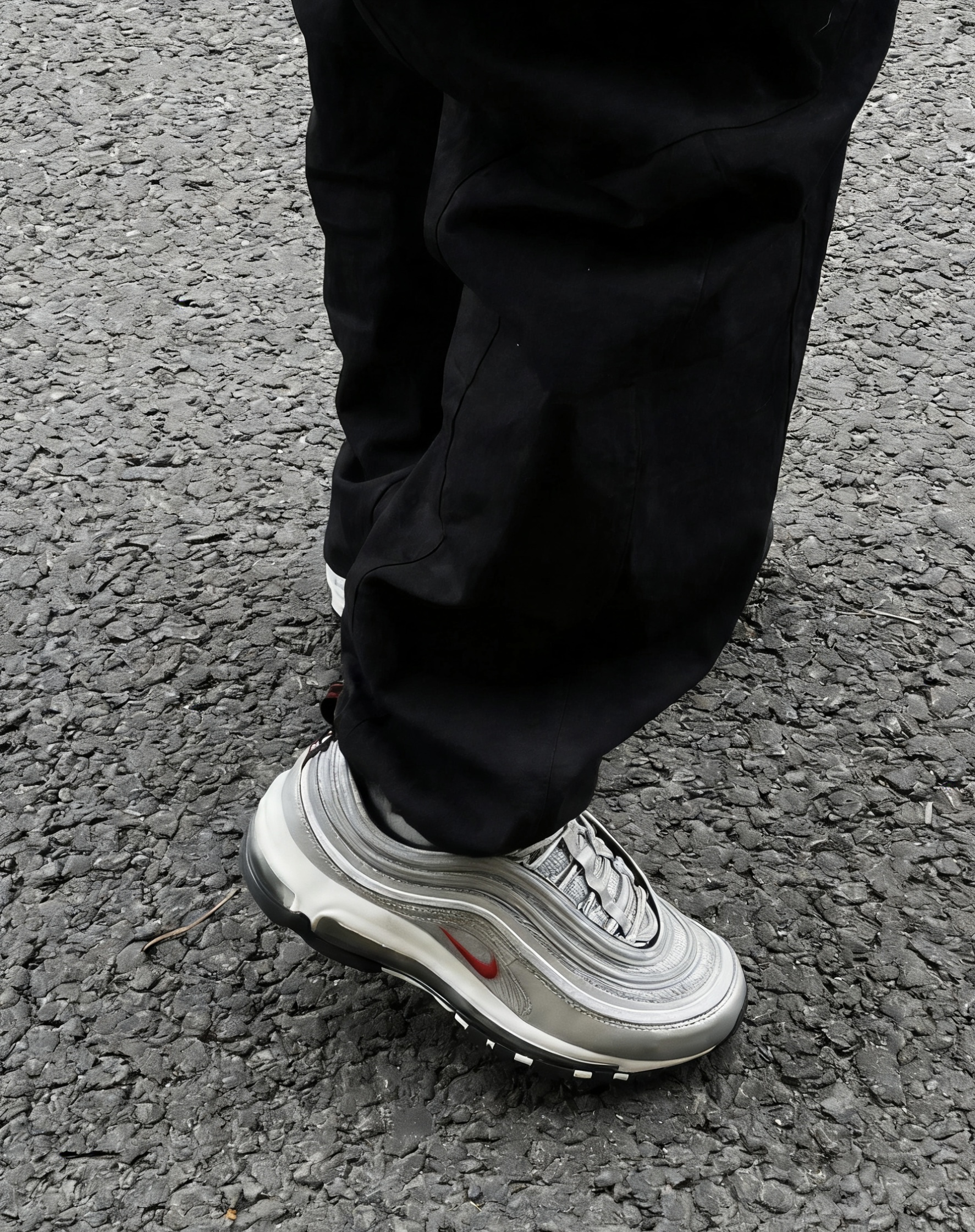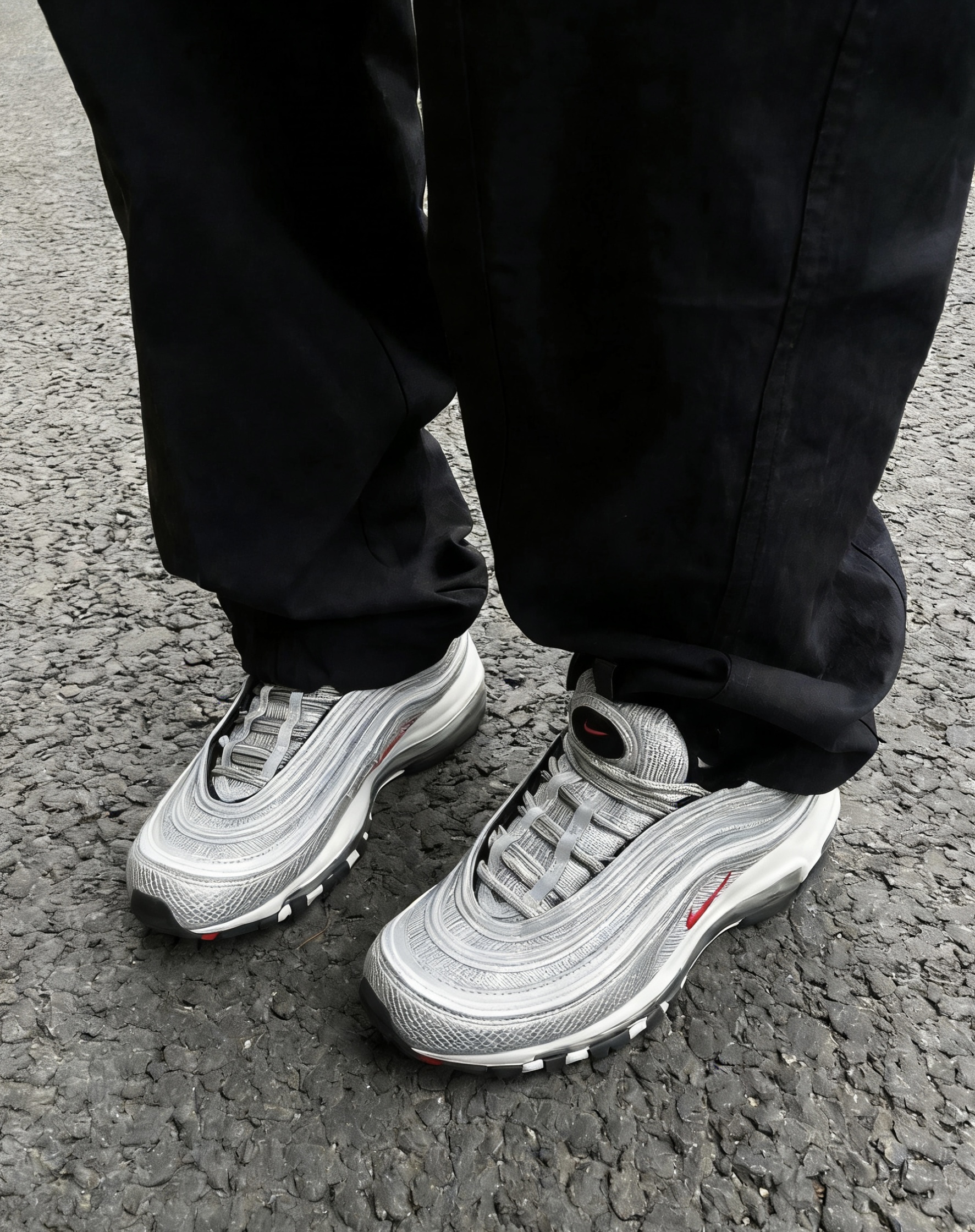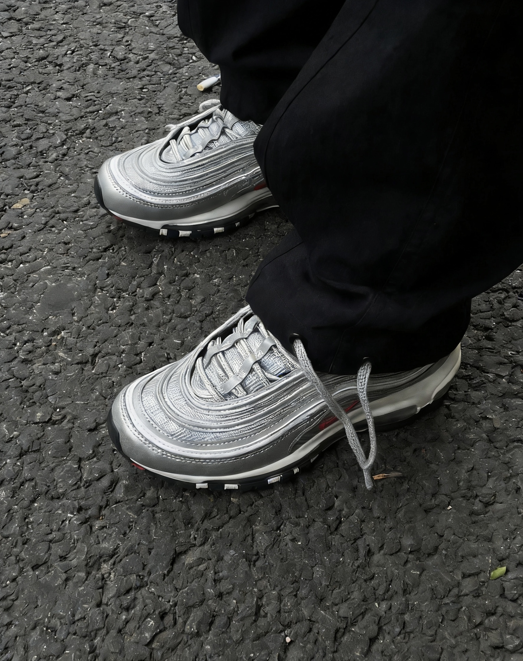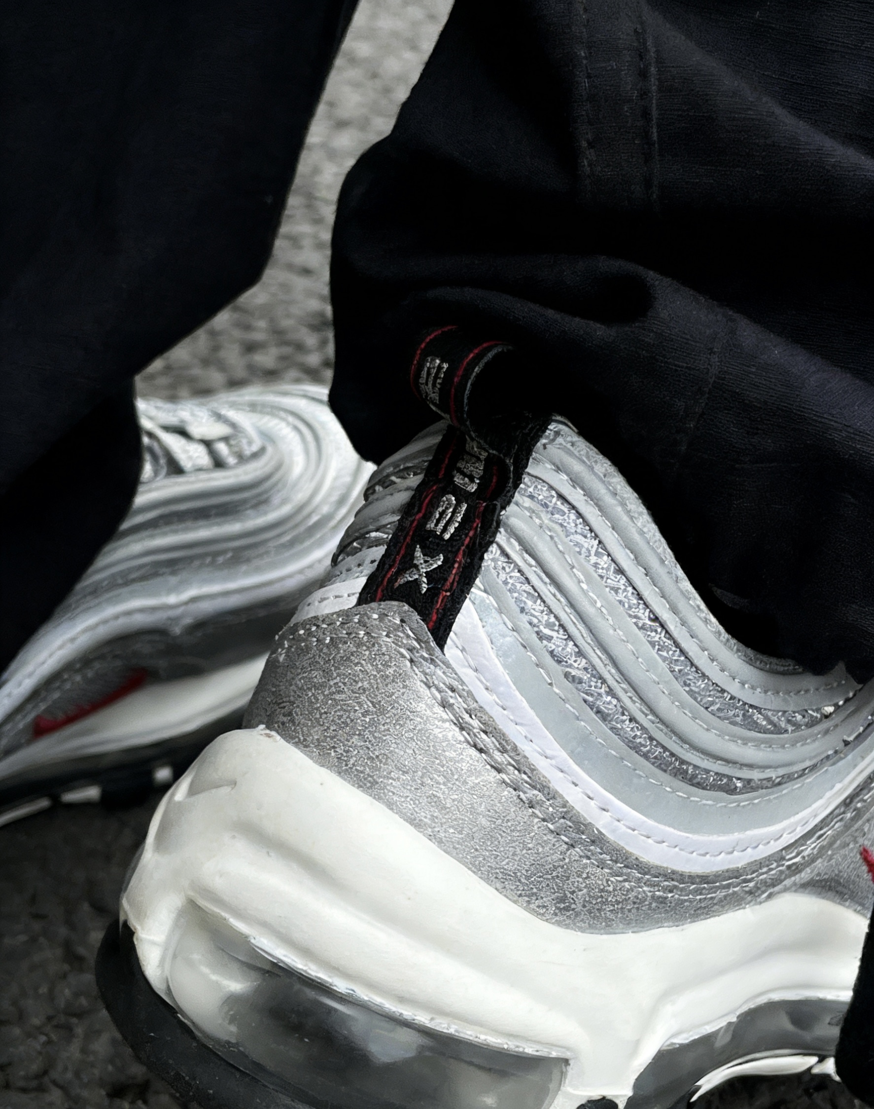 谁懂啊家人们!Nike Air Max 97银子弹真的是跨时代的经典,入手直接封神💥 新干线灵感的流线银面太绝了,3M反光条在阳光下直接拉满氛围感,走在街上回头率百分百,自带高光滤镜的感觉谁穿谁知道! 上脚体验直接拉满,全掌Air Max气垫踩开后软弹到飞起,通勤逛街走一万步都不磨脚,包裹性超棒还不压脚背,尺码正码入完全没毛病~合成革+织物鞋面透气不闷脚,南方冬天单穿也不冷,北方搭个袜子直接过冬...