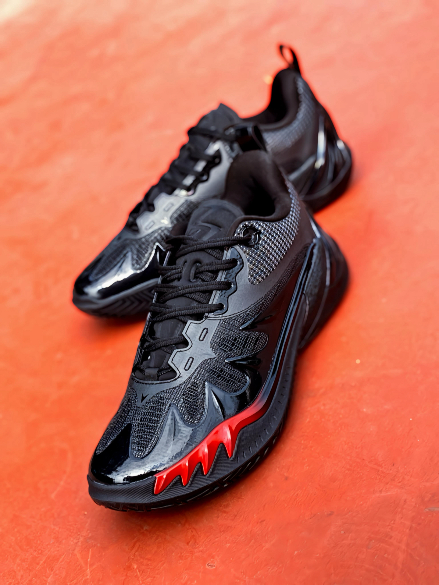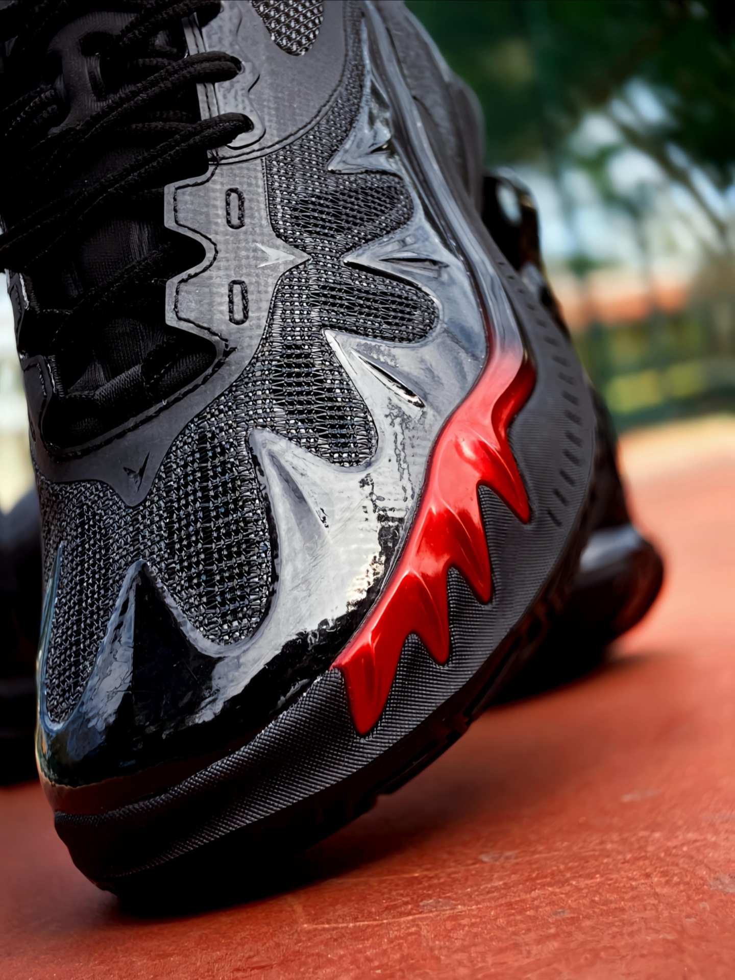 被这双 #准者 RIGORER AR3 VISION 烈火配色 🔥的颜值给拿捏了 !全黑鞋身加一点红色细节点缀,不管是日常还是在球场,穿出去回头率很高 ! 💯 而且运动风、休闲风都是可以驾驭的 ~ 上脚穿着给到的包裹感超惊喜,翼状设计牢牢贴住脚面,鞋面质感很扎实,支撑感很够,但尺码要稍微注意,如果是正常脚型,那就正常选,脚背高的话建议拿大一码会比较舒服。和之前我穿过的 AR3 相比,V...