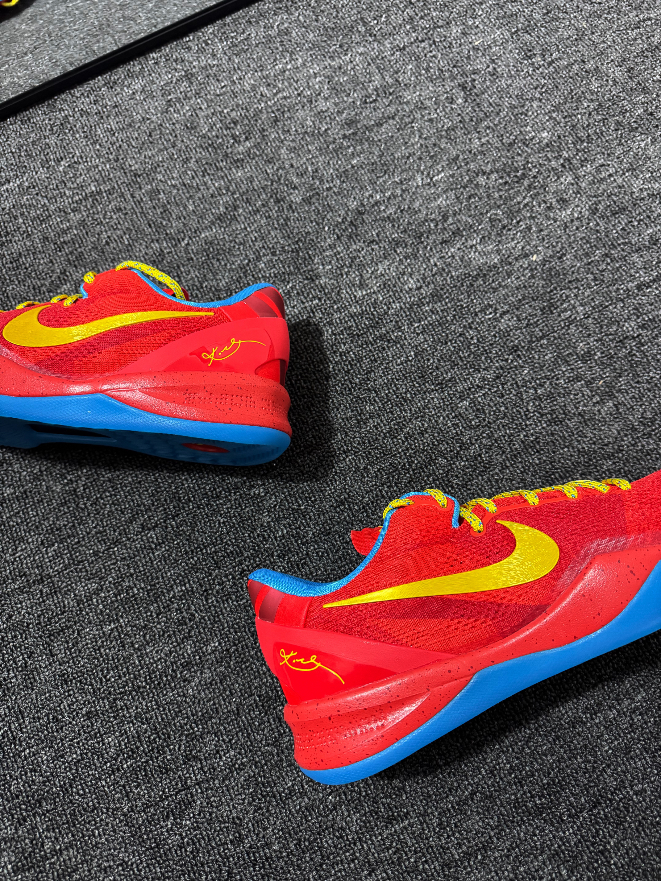 这双科比8马年限定是情怀党必入款。红金蓝配色过年穿超应景。Flyknit鞋面真的轻,启动提速非常跟脚。碳板加持让变相稳得一批,缓震也够用。实战和压马路都能打,过年穿它打球,兄弟都得问链接!