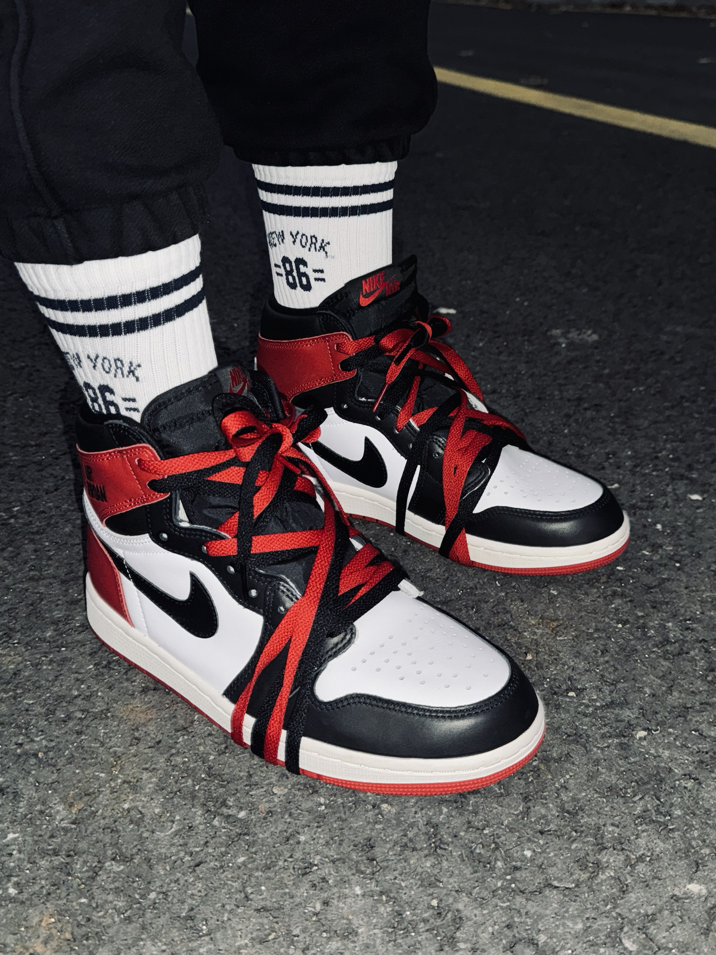本篇笔记关联了Air Jordan 1 板鞋 运动休闲鞋 复古潮流支撑合成革 OG/高帮/男款/黑脚趾/红色、有棵树 26AW简约条纹字母防臭休闲高弹中筒袜 YWQZ1002 蓝白 1双等商品,为用户提供真实的使用体验和购买参考。