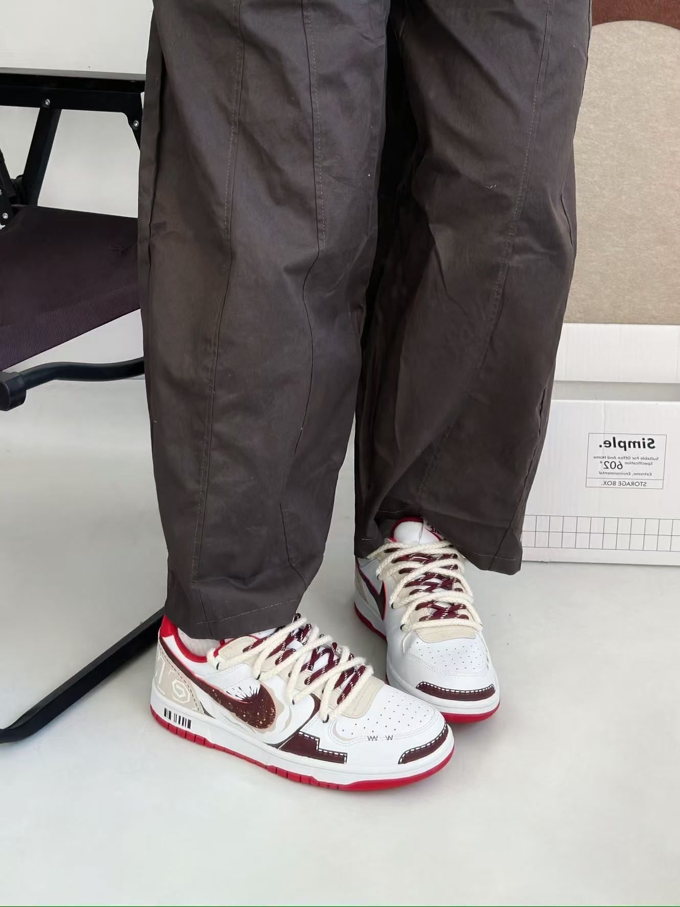 新年入的这双红白棕配色Nike Dunk真的越看越喜欢!米白底色搭酒红勾子,复古又亮眼,配深灰工装裤或牛仔裤都很出彩! 鞋面皮质软韧不磨脚,鞋底厚度刚好,日常通勤、周末约饭穿都舒服。 #马年限定穿这双 #26年马年本命年穿什么 #分享好物复古耐克板鞋 #好物分享dunk酒红色