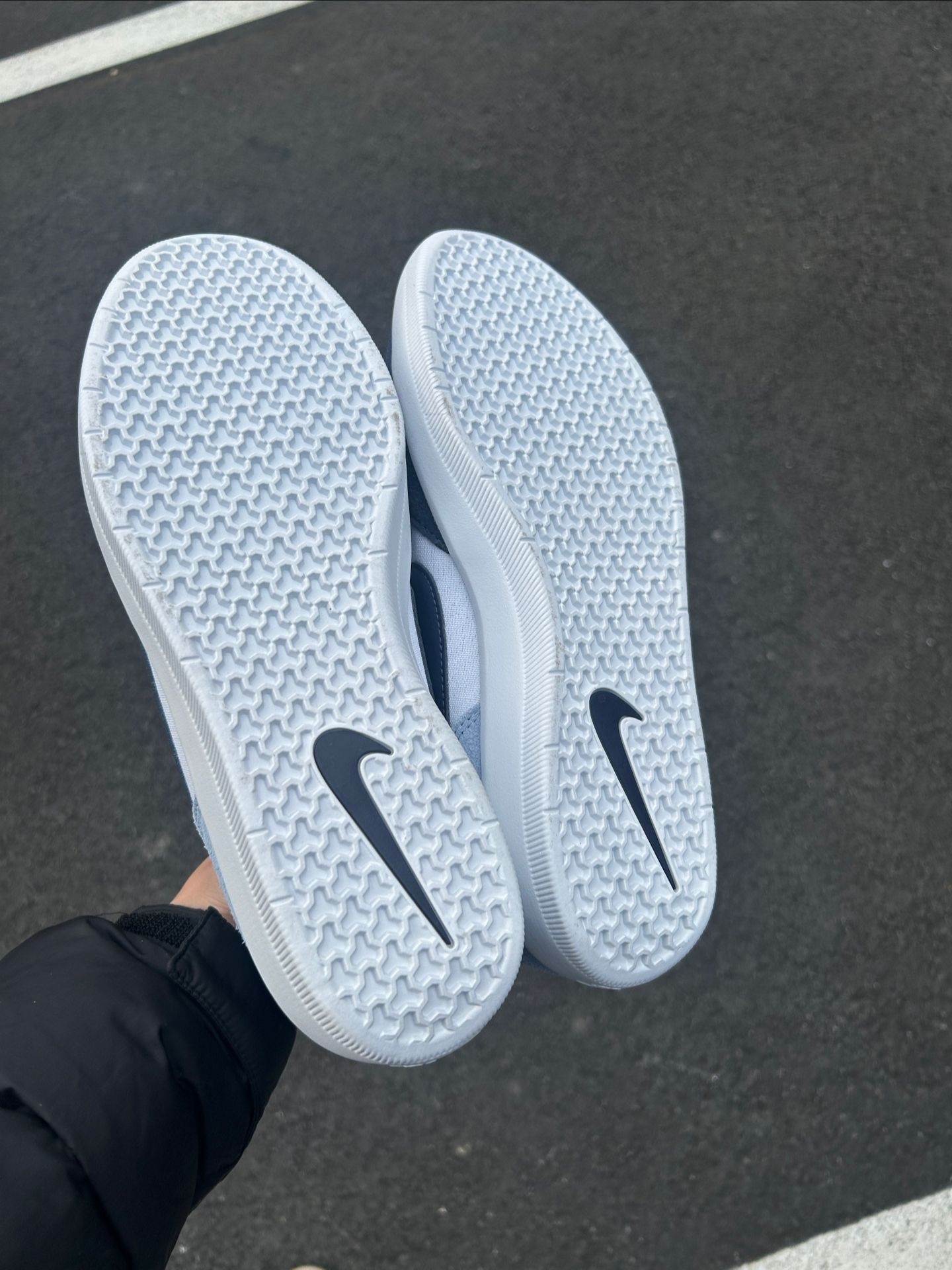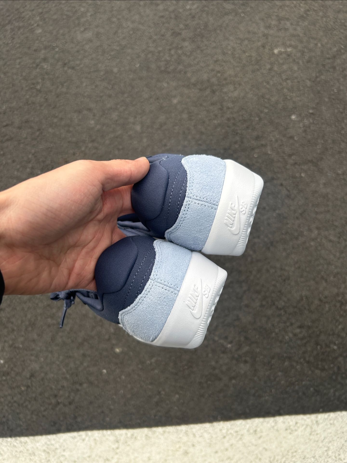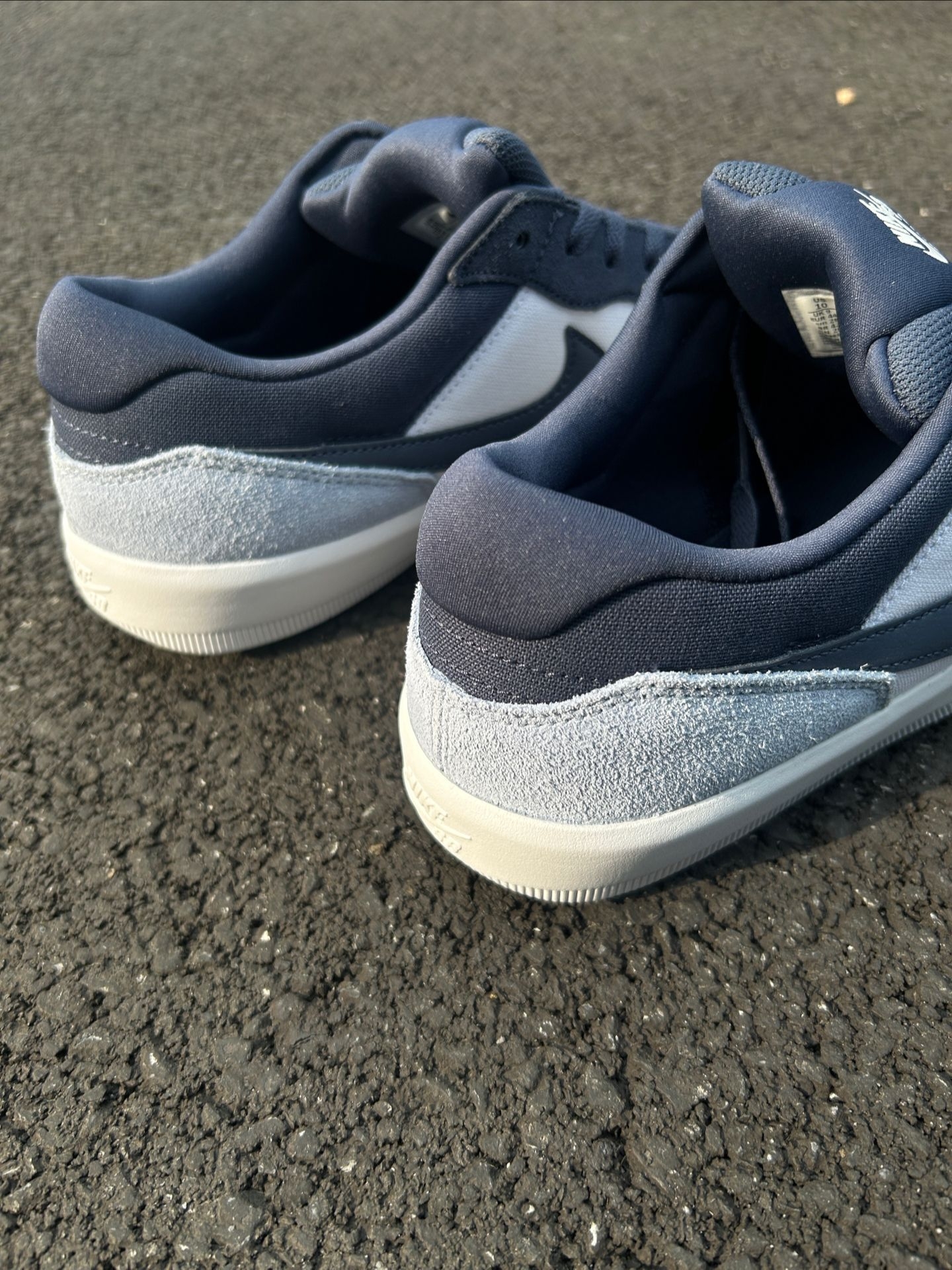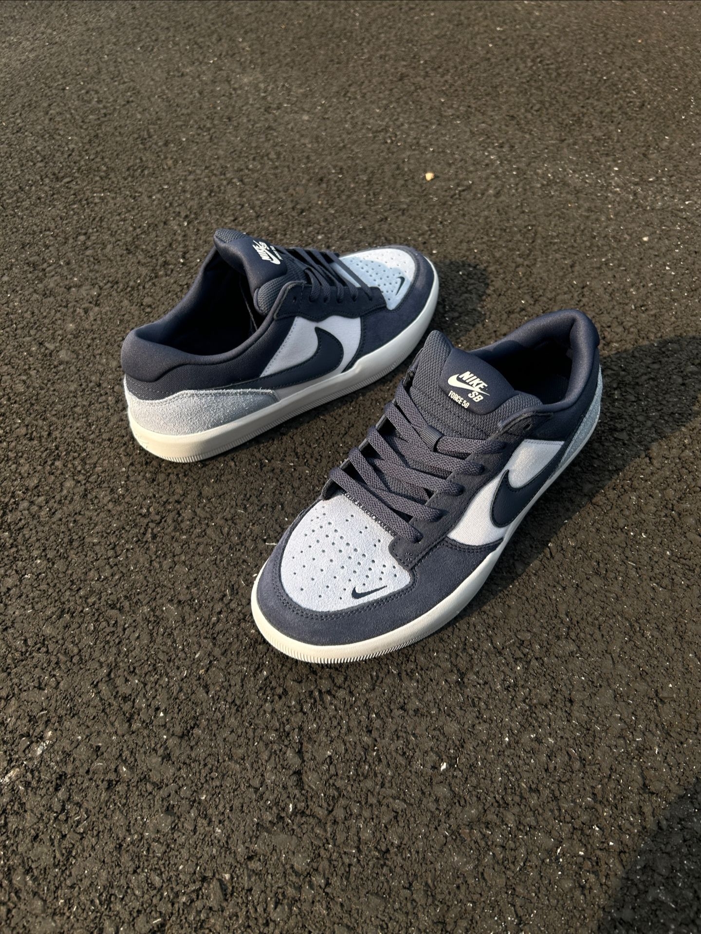 开春想换双舒服又百搭的鞋?我最近上脚这双Nike SB Force 58蓝白配色好帅啊~ 这双鞋用了海军蓝+浅灰的拼接设计,大面积麂皮质感拉满, 日常配卫衣、牛仔裤或者运动裤都不违和~ 鞋子尺码也正~ 说一下缺点:麂皮容易吸灰沾污渍,需要定期打理;浅色鞋底容易变黄,雨天穿要小心~ 兄弟们你们穿这双鞋会这么搭配能评论区唠一唠吧~