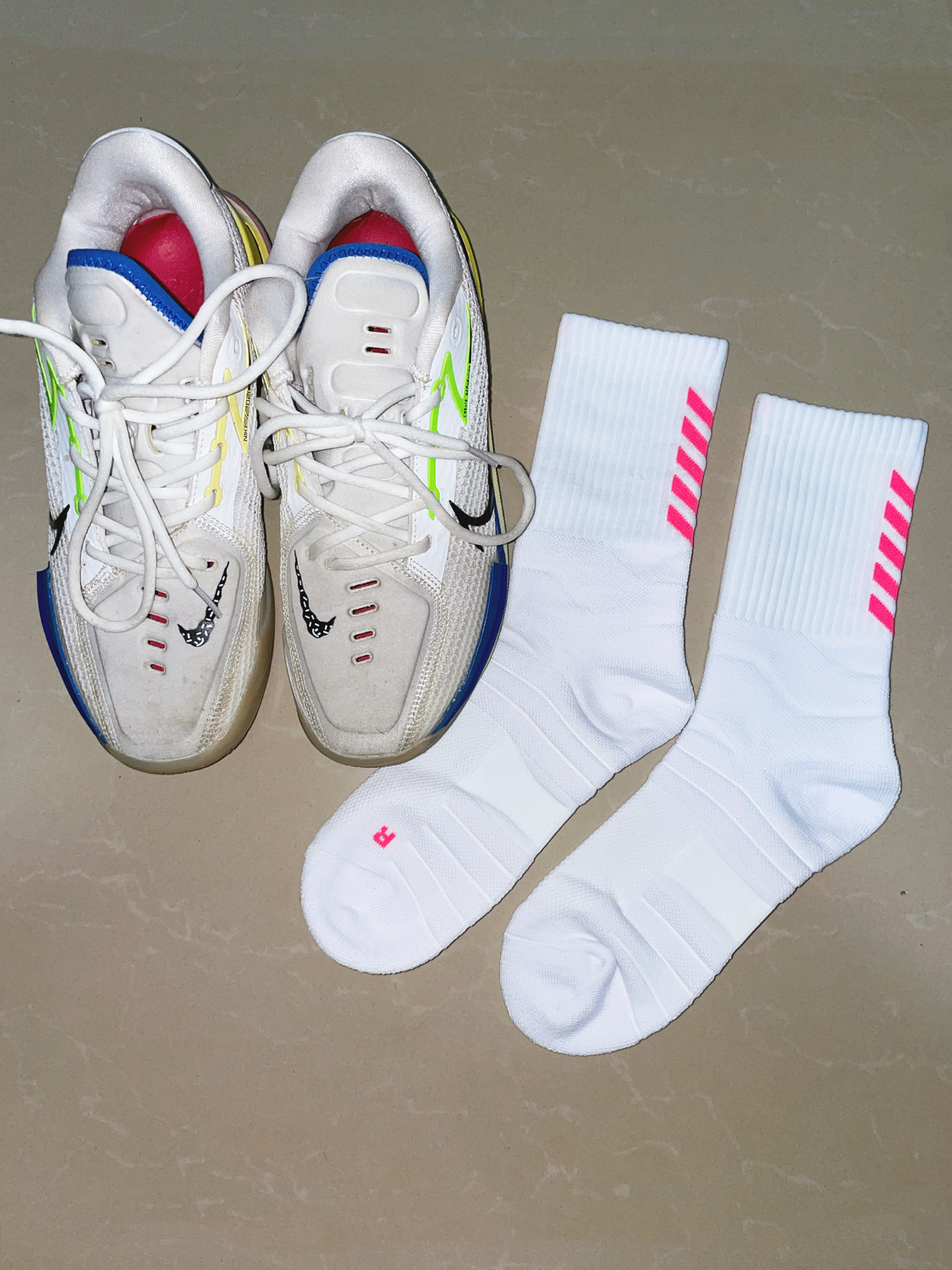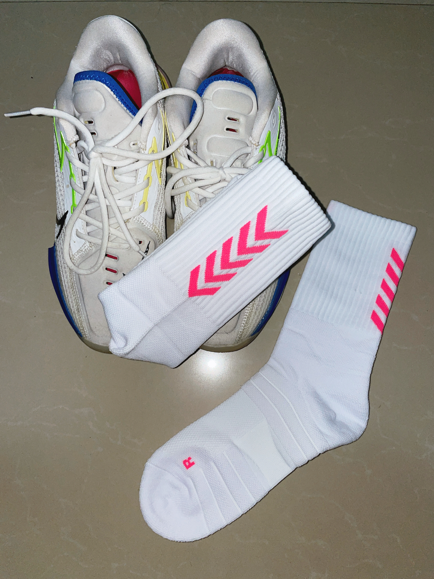 袜子带点粉,年轻又好看[狗头_blue] #itb氢蓝 这双球袜,在白色的基础上加入了粉色元素,袜子后面是粉色箭头的图案,非常的不错!!!搭配球裤和球鞋都很好看[机智_blue] 袜子的上脚感也是嘎嘎好,包裹性很好,能提供很好的支撑,而且透气效果也好!!!总得来说很舒服![耍帅_blue] #分享超好穿的篮球袜 #实战袜子推荐 #特别强推的一款袜子 #夏天宝藏运动感鞋子分享 #体育生白袜