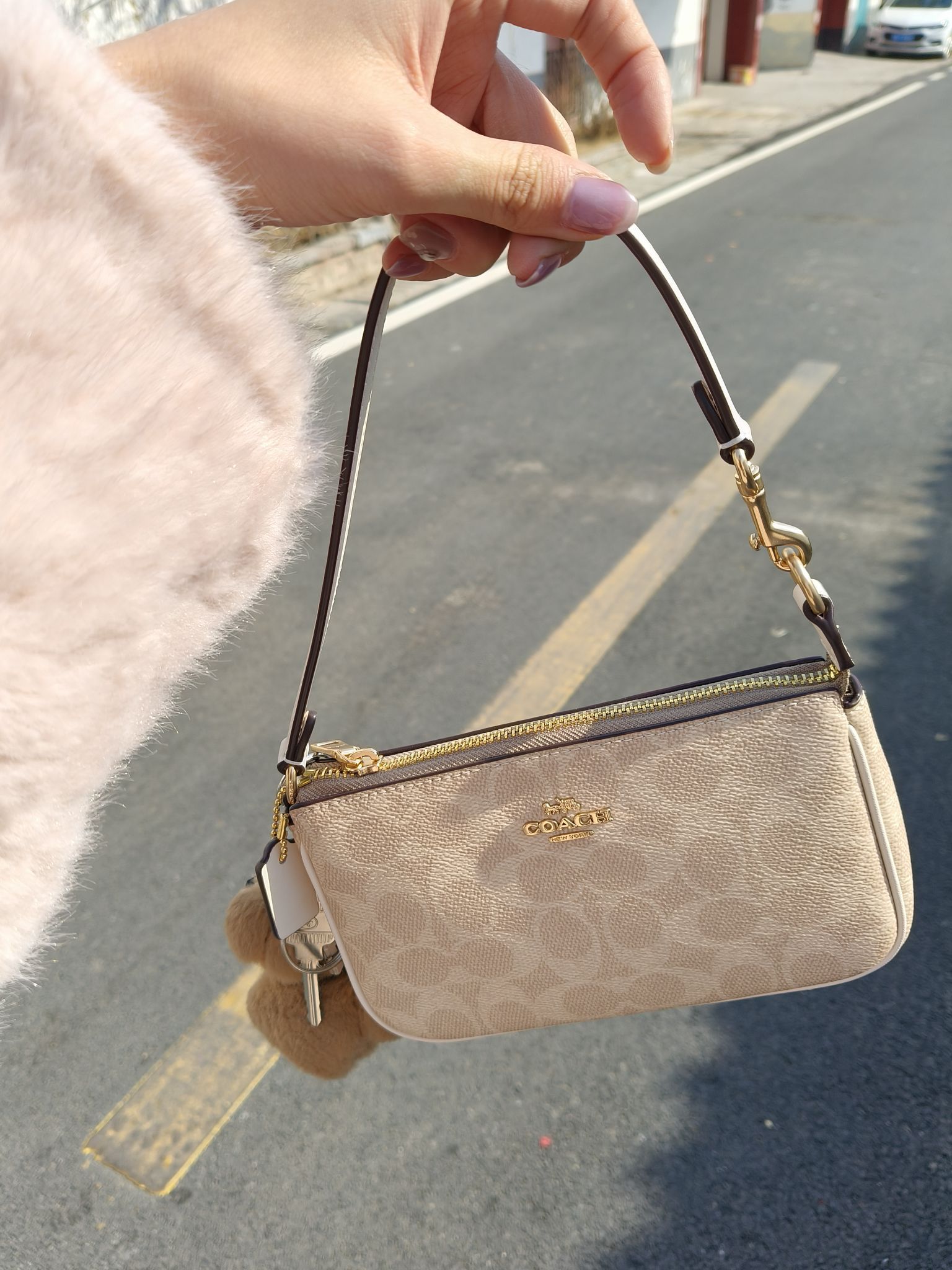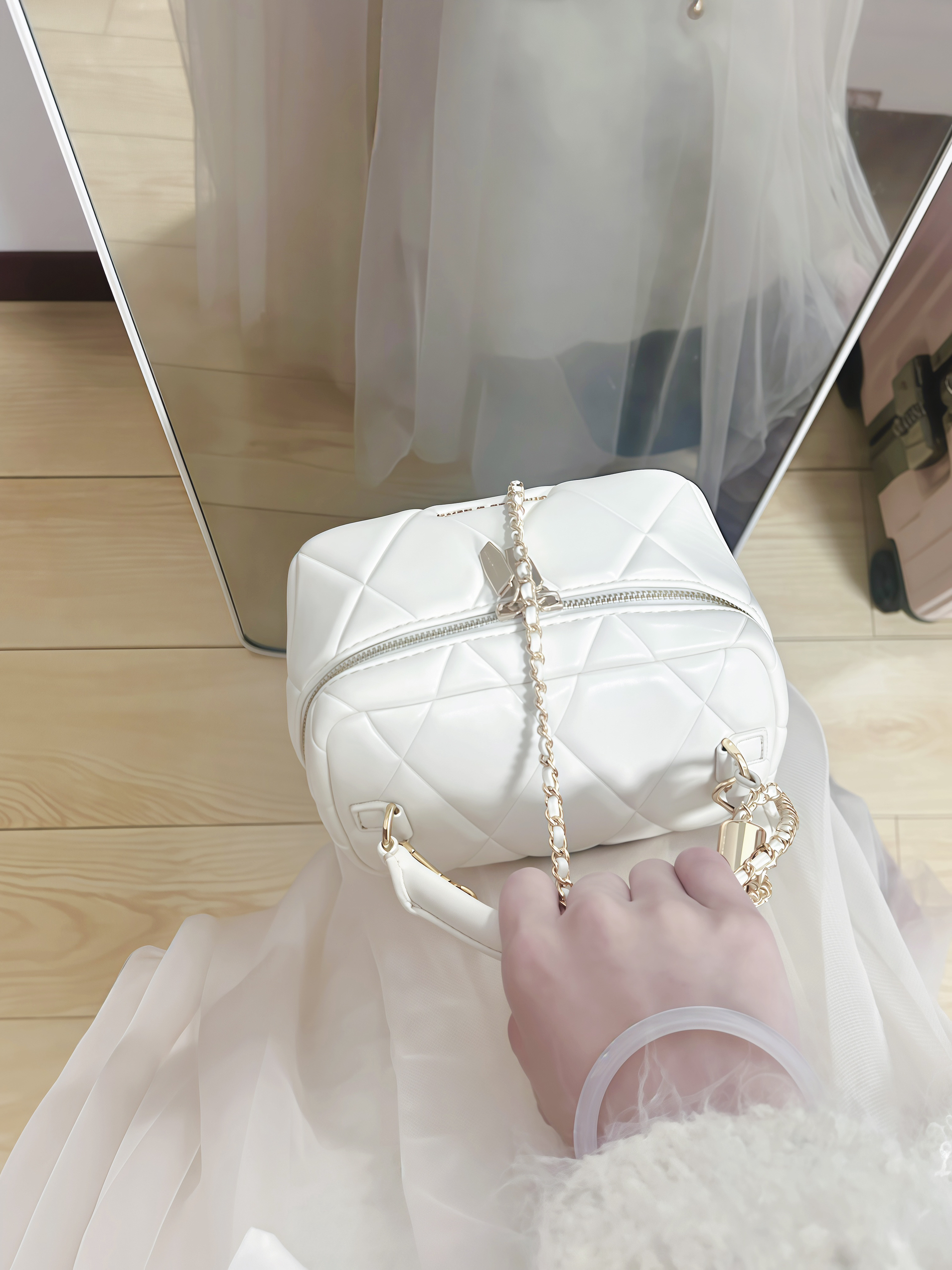 这只奶白色菱格手提包,就是我今年找到的松弛感密码。它没有过度的装饰,只是用细腻的菱格纹压出柔和的肌理,像把春日的云朵揉进了皮革里。奶白色的包身自带柔光滤镜,不扎眼,却在任何穿搭里都能成为点睛之笔。 尺寸刚好能装下手机、口红和粉饼,日常出门完全够用。手提时是温柔的大小姐,换上链条斜挎又秒变随性的氛围感美女。金属链的光泽和拉链的细节都处理得恰到好处,不张扬却足够精致,让它既有百元价位的亲民感,又有不输...