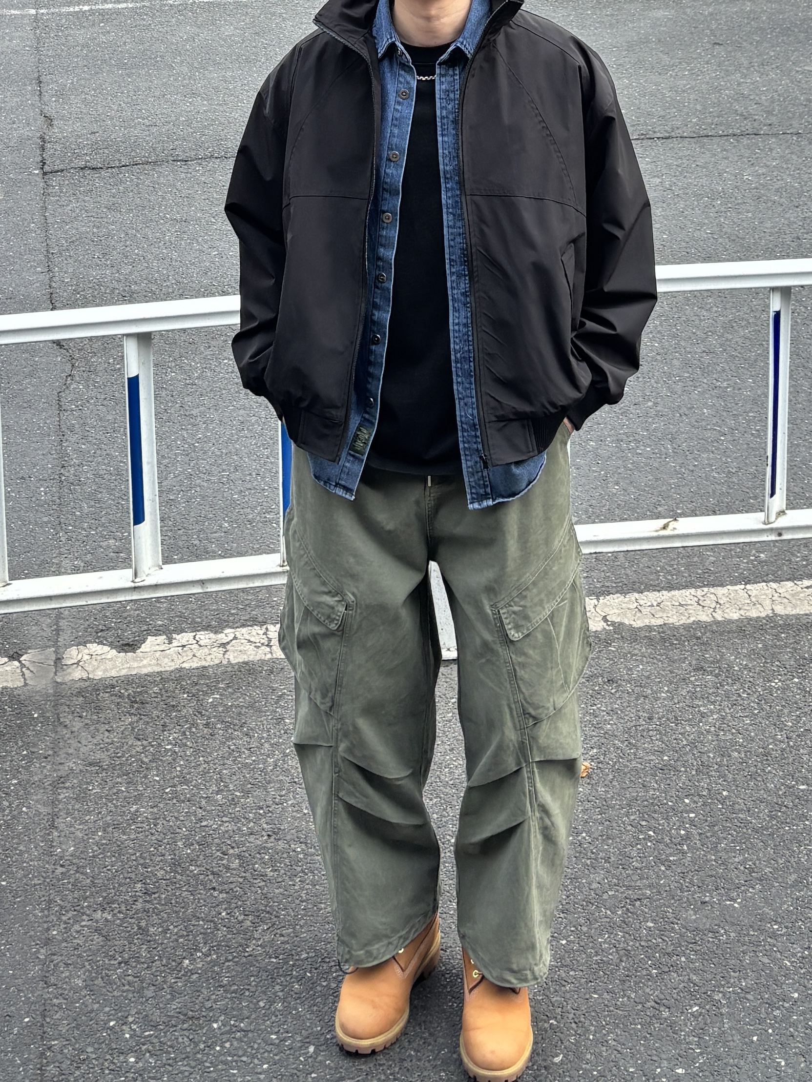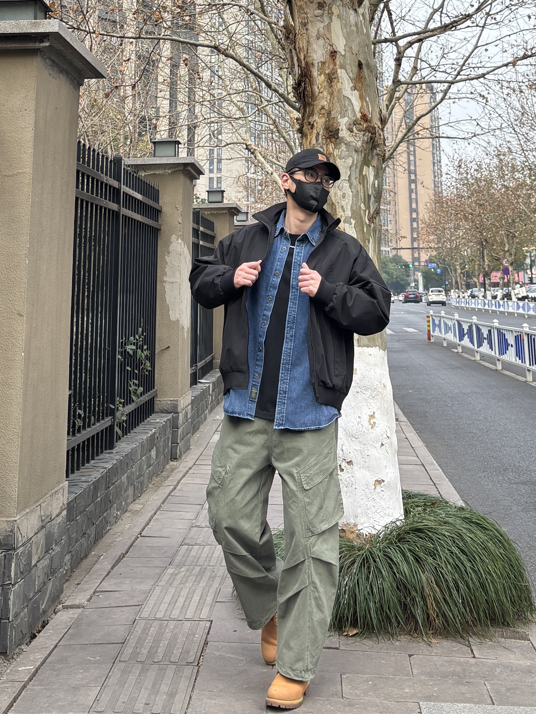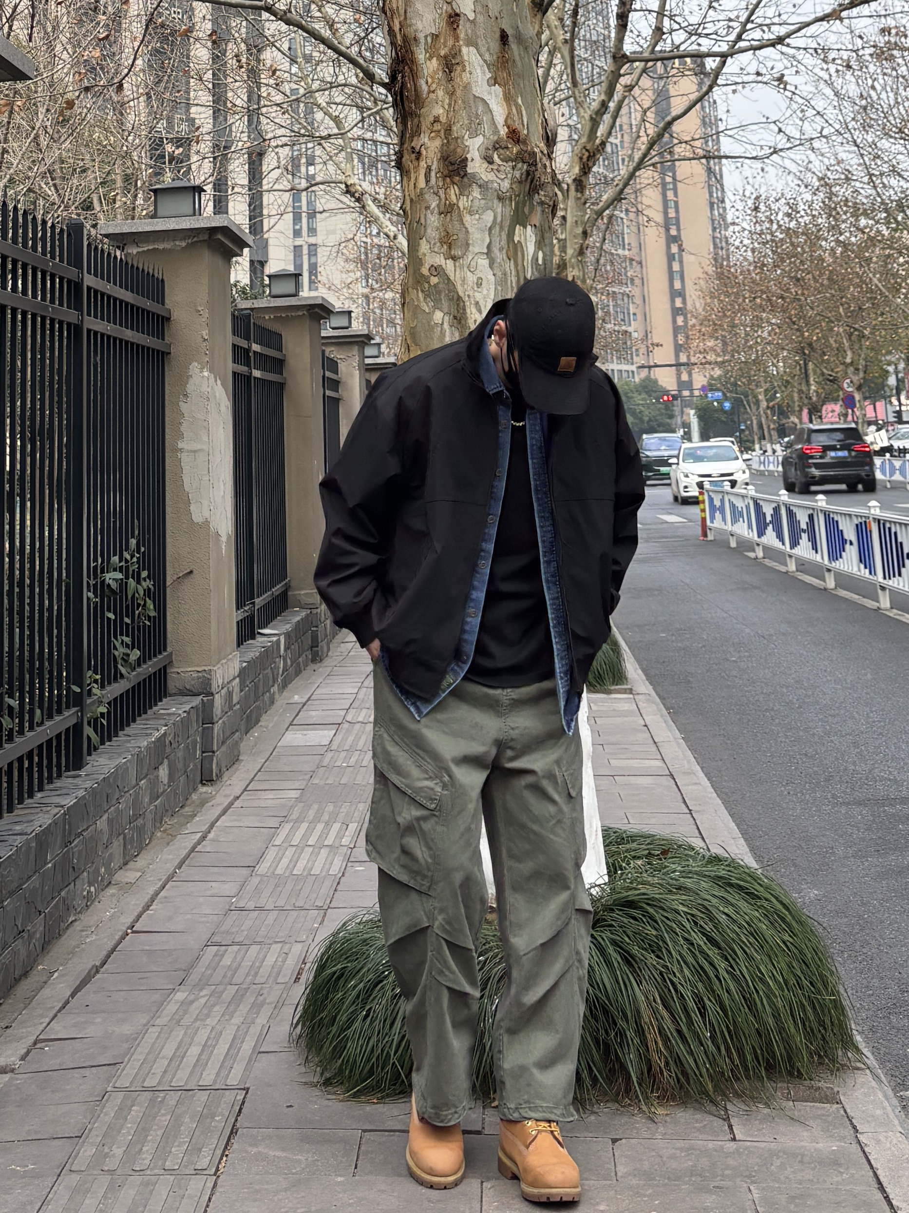早春就适合玩叠穿,这套工装风我直接焊在身上😎 上衣选择蓝色牛仔裤衬衫+黑色立领宽松廓形夹克,内搭黑色T恤,三明治叠穿,层次感拉满。军绿色多口袋工装裤搭配大黄靴,修饰腿型还显高。 春天这样穿,早晚温差大也不怕,保暖又帅气。 - 今日搭配 衣服裤子:NICE LILI 鞋子:timberland