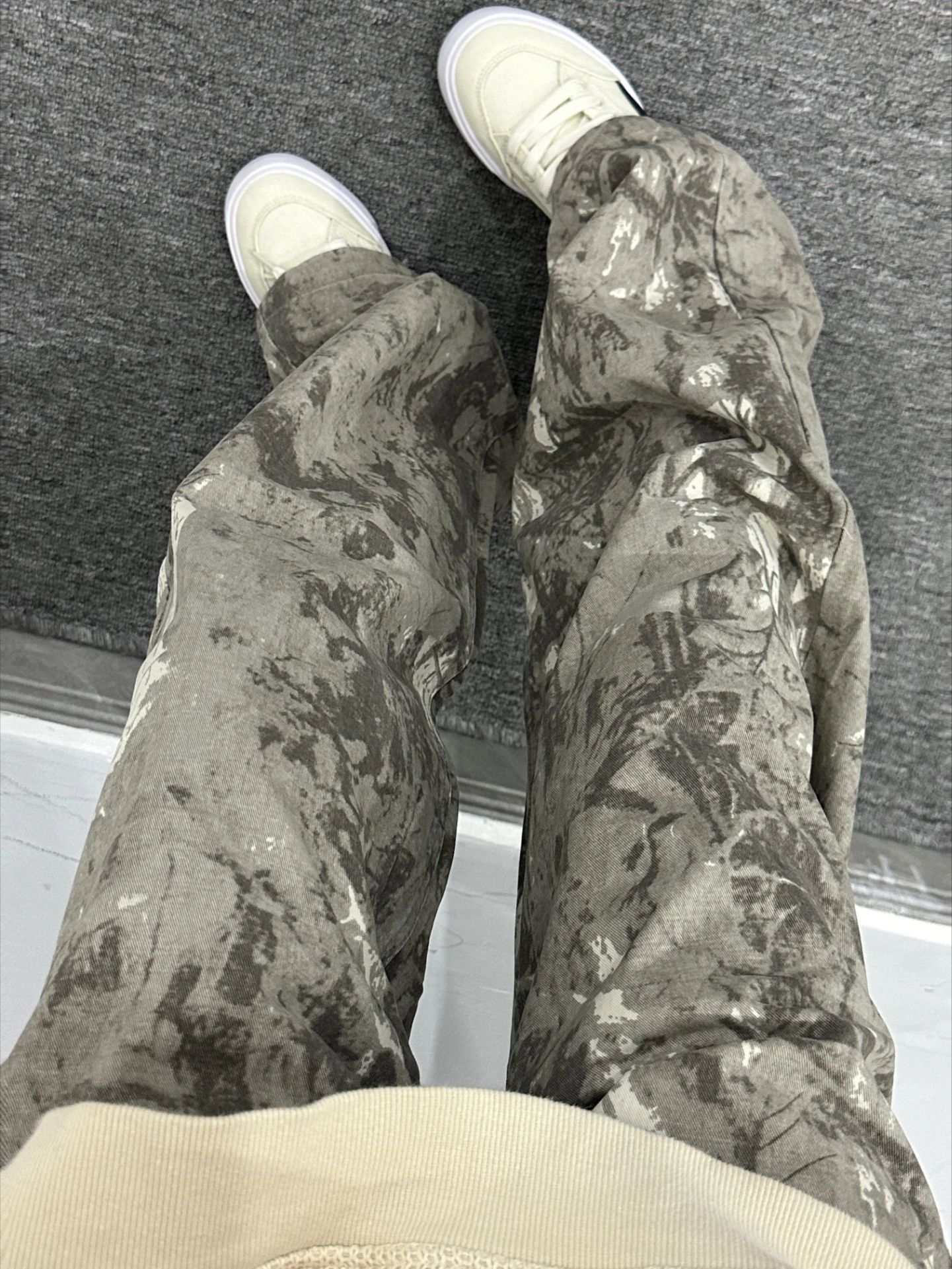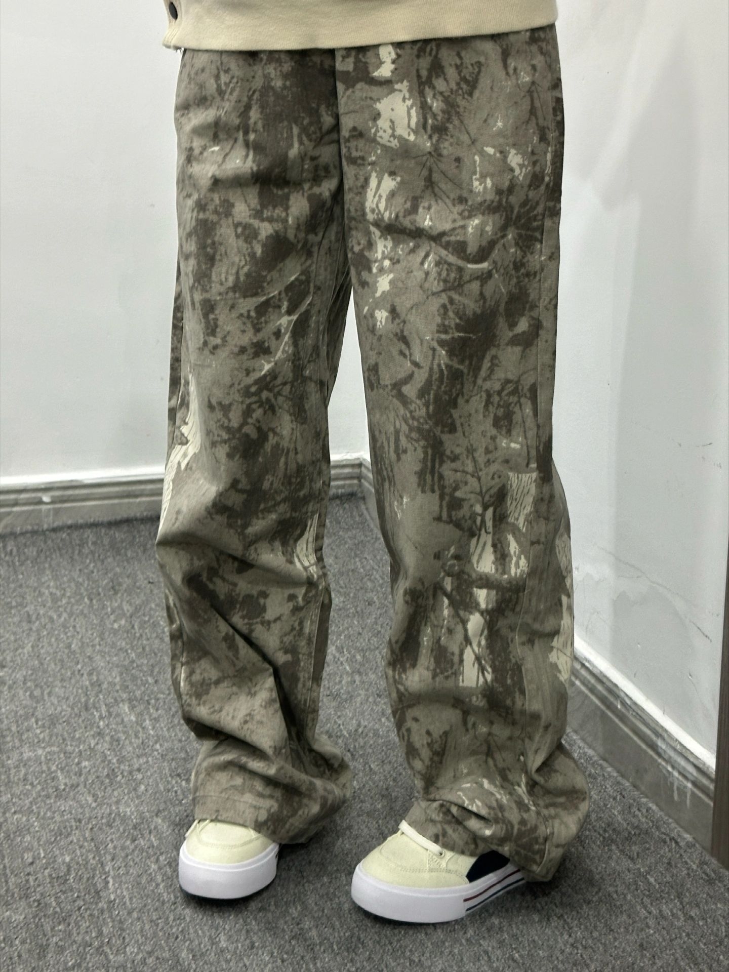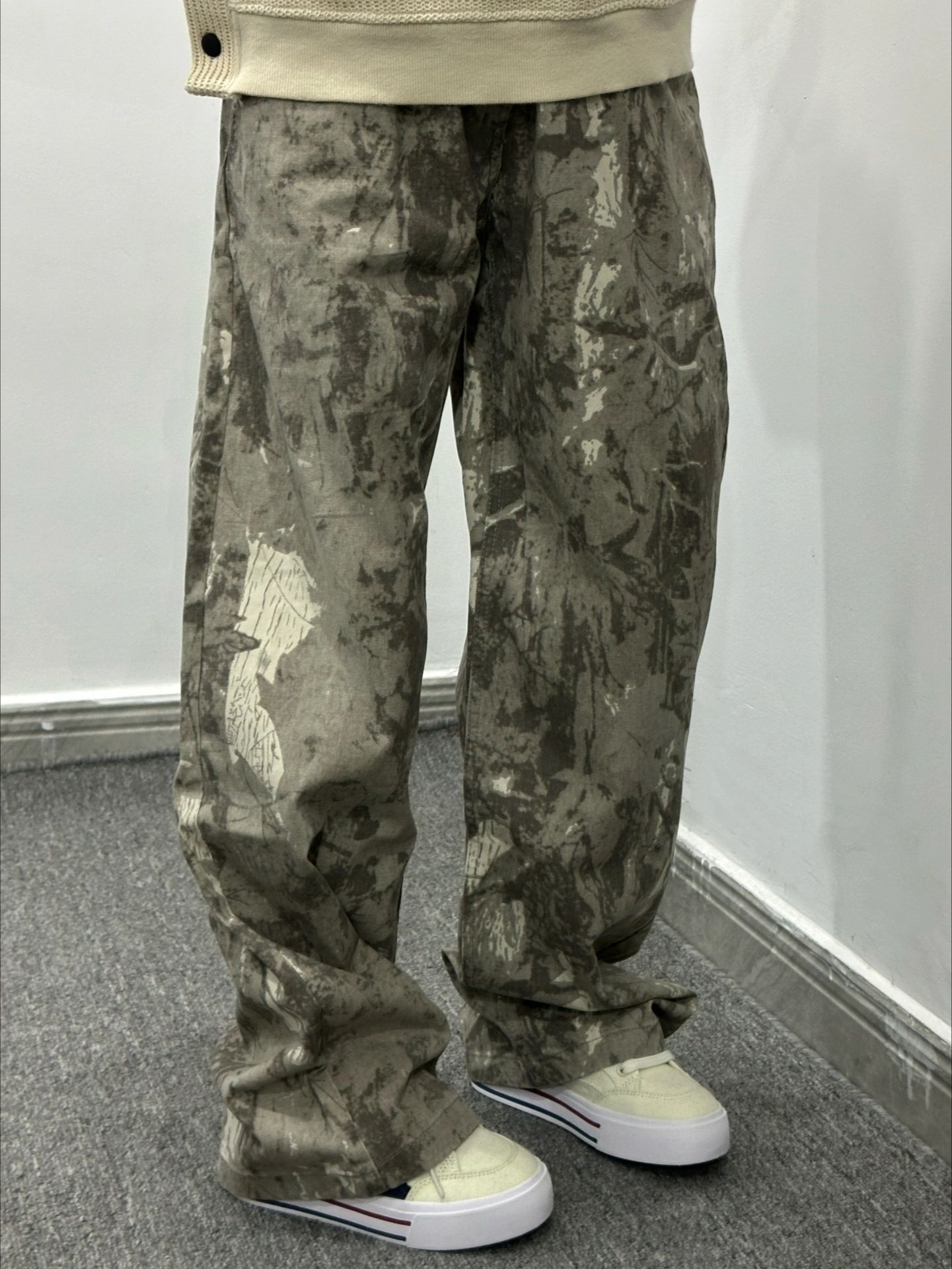 这款枯叶迷彩裤真的太顶了! 满印迷彩自带做旧质感 好帅 宽松版型藏肉又随性 配板鞋就很有街头那味儿了 潮人出街就这么搭!