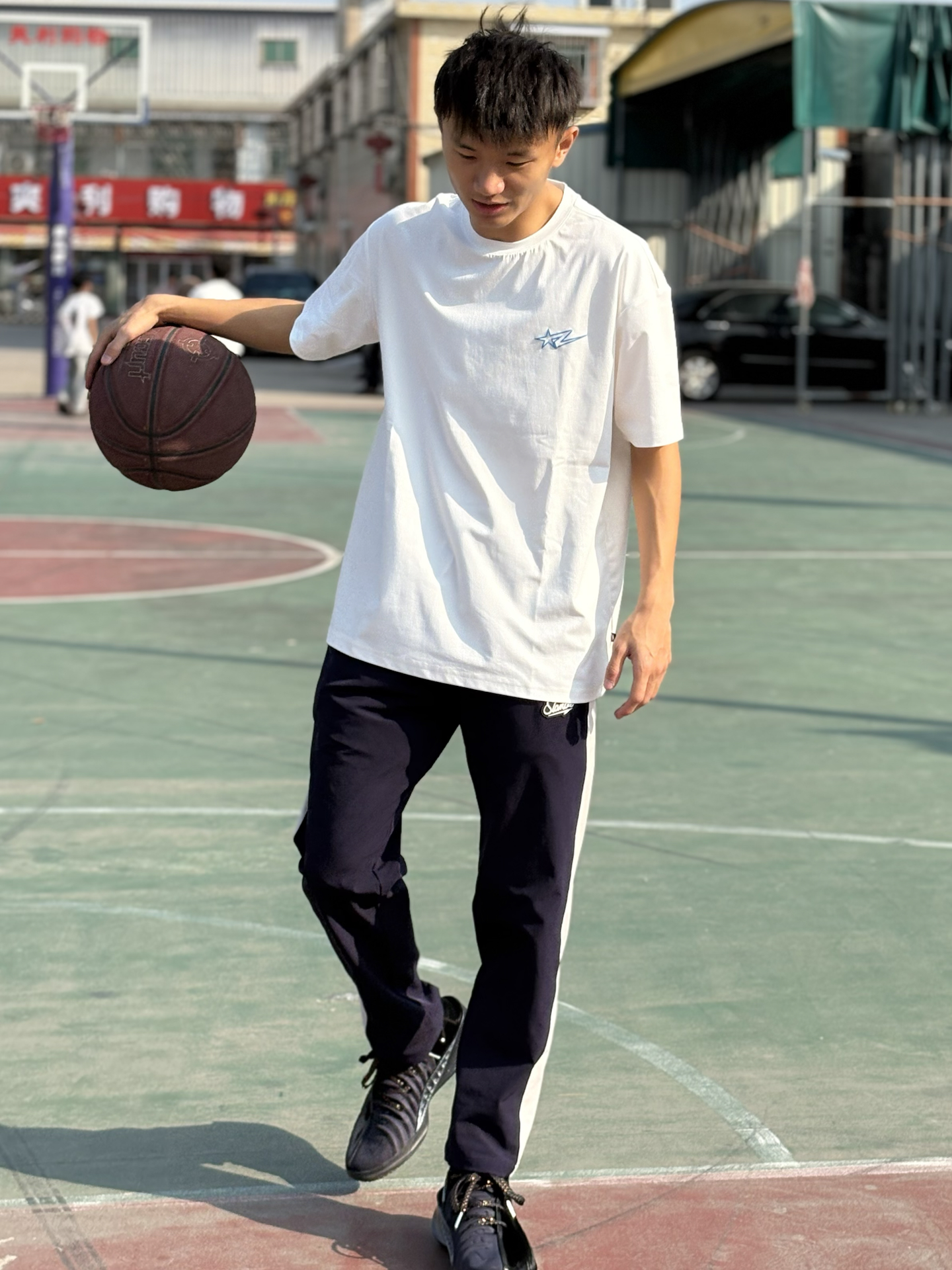 今天给大家上身这款 #有志者UZIS 星闪短袖,撞色流星⭐的设计,非常炸街吸睛! 美式宽松版型穿上身非常的好看,而且打篮球做动作也不会受到束缚,直角肩视觉直接拉满。凉感速干面料透气不粘身,日常出街也超好看! 170体重55kg推荐m码 #宝藏运动短袖分享 #有志者UZIS星闪短袖 #给大家推荐百搭篮球短袖 #晒晒你的宝藏篮球短袖 #上值得入手的短袖