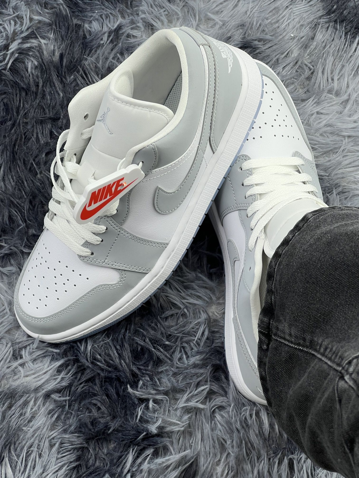 这双白灰配色的AJ1 Low,拿到手我的第一感觉就是质感比我想象的要扎实。白灰拼色真的很干净清爽,配牛仔裤、卫裤、运动裤都不挑,日常出门不用想搭配,这点我真的觉得很好💯。 在脚感方面,我感觉前掌有一点点气垫反馈,但后掌偏硬,长时间逛街还是有点累,毕竟是板鞋的定位。鞋舌的填充很厚实,包裹感不错,但也让穿脱的时候稍微有点费劲。 然后我上脚感觉鞋头偏窄,如果宽脚的朋友得买大半码;在夏天穿的话有点闷,...