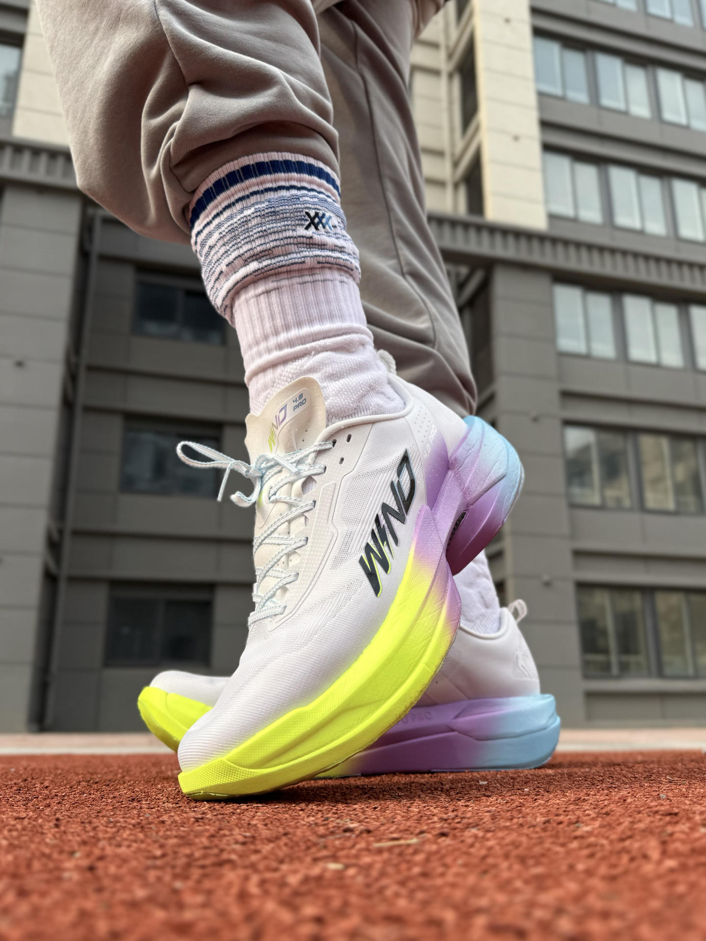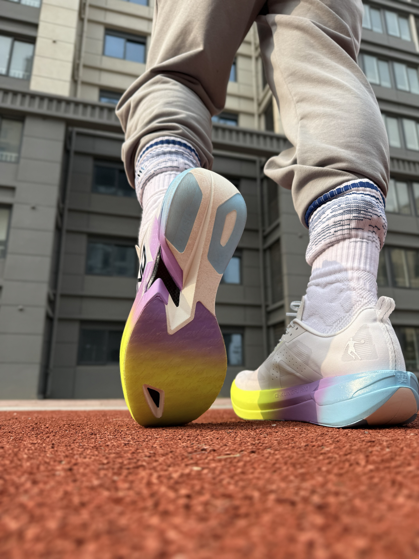 hi-兄弟们 今天上脚了 #乔丹 家的强风4pro 幻彩配色的碳板跑鞋 跑了10公里的6分配速,还是挺不舒服的 碳板的硬度比较高,我觉得得3/4分配速驾驭起来好发挥作用 中底巭pro科技回弹+超轻咻双科技还是比较缓震回弹的 此外,这次的升级外侧这里凹陷,很有plaid的影子hhhh #马年限定穿这双 #马上开运