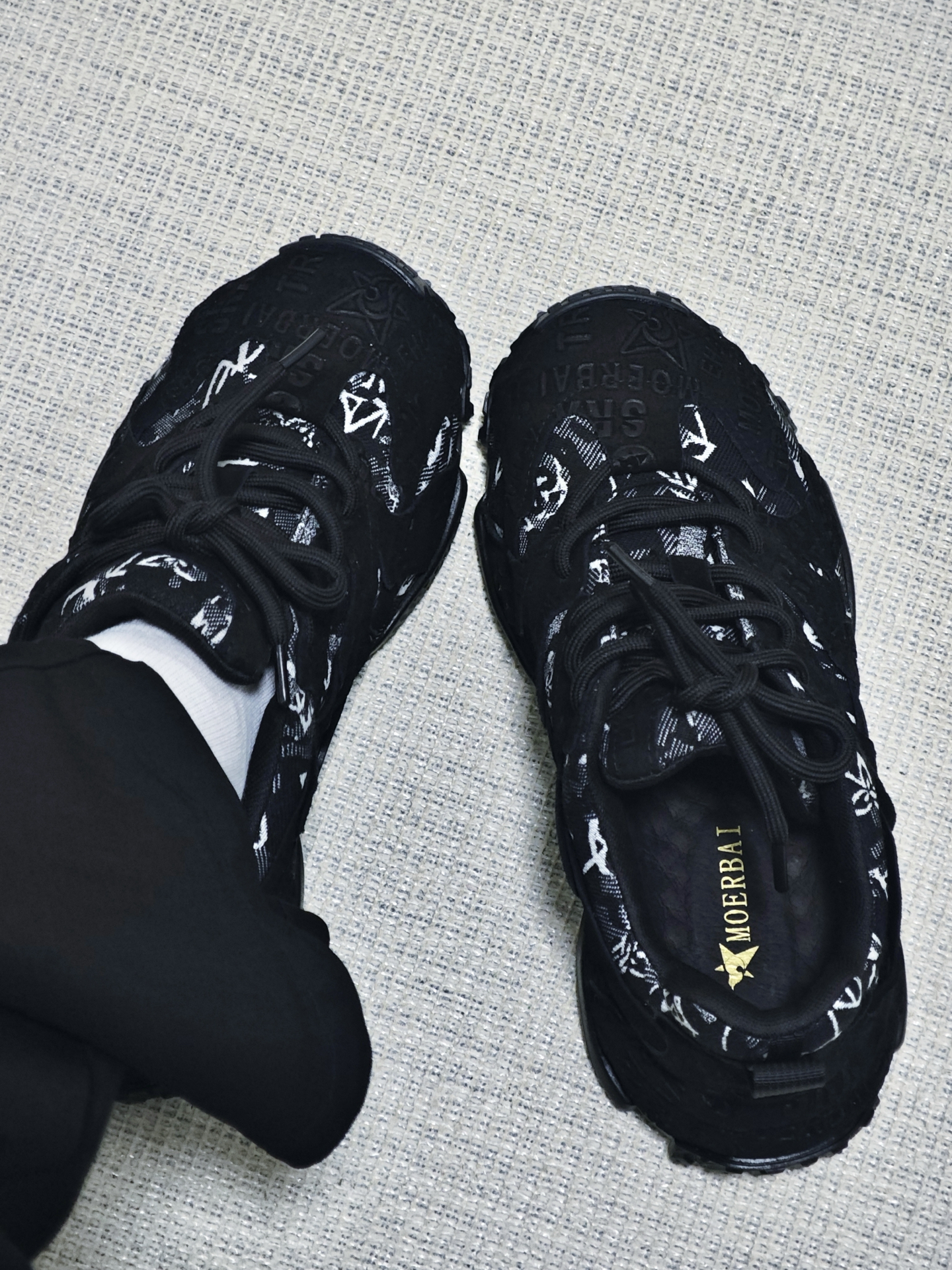 没想到这双来自 #摩蓓 MOERBAI 的老爹鞋增高效果这么明显! 全黑的配色加上了一些涂鸦设计 属实有点独特了 鞋楦对我这种宽脚的人属实有点友好 上脚舒适不闷脚 无论是出门逛街还是通勤久走都不会累脚 搭配阔脚裤牛仔裤都是可以的 追求舒适的同时又喜欢时尚 那么这双老爹鞋刚刚好符合! 建议偏小一码 #澎湃脚感选哪双 #新年新鞋新鲜感 #新年买新鞋 #礼物节 #新年就要宠自己