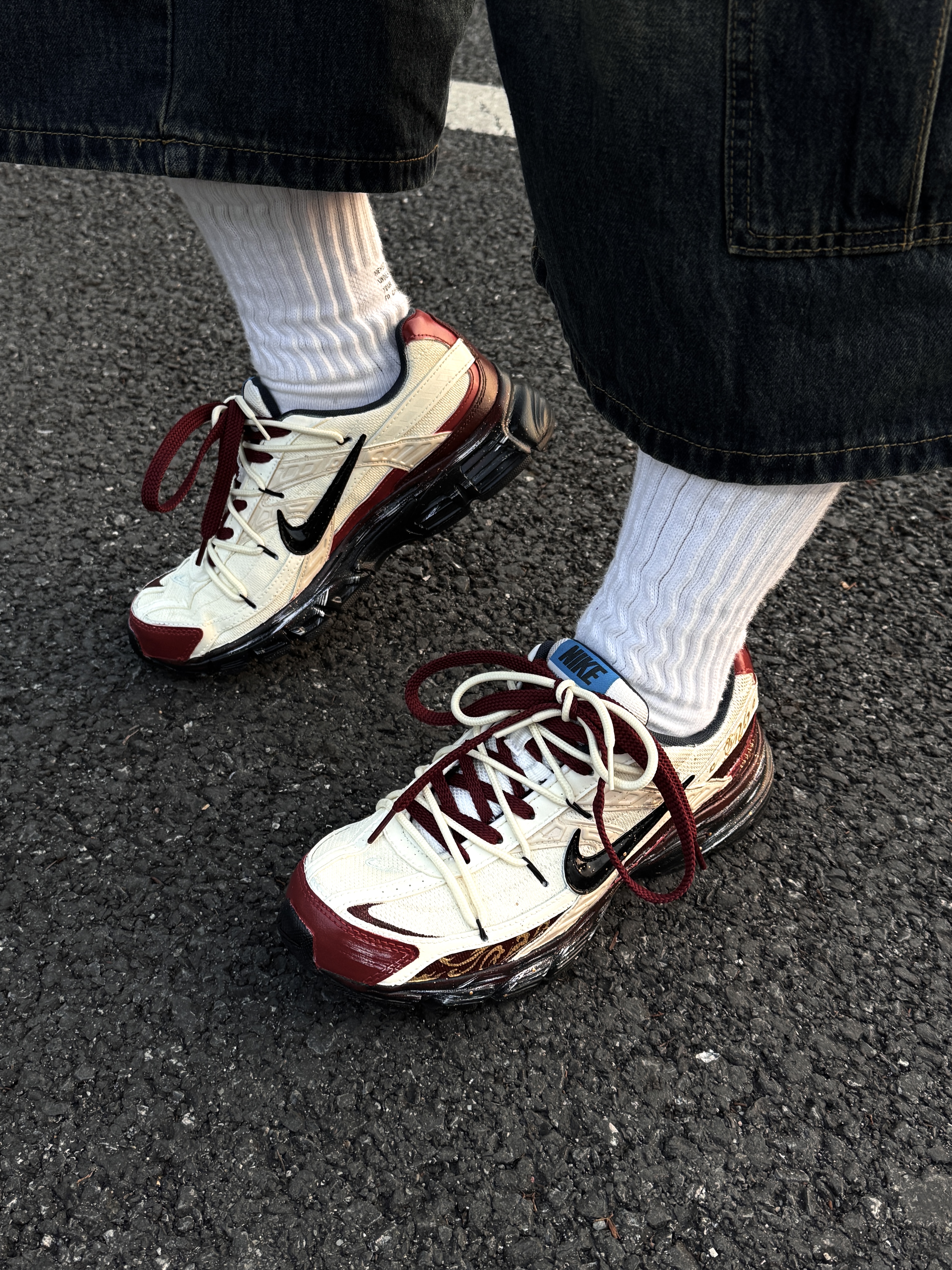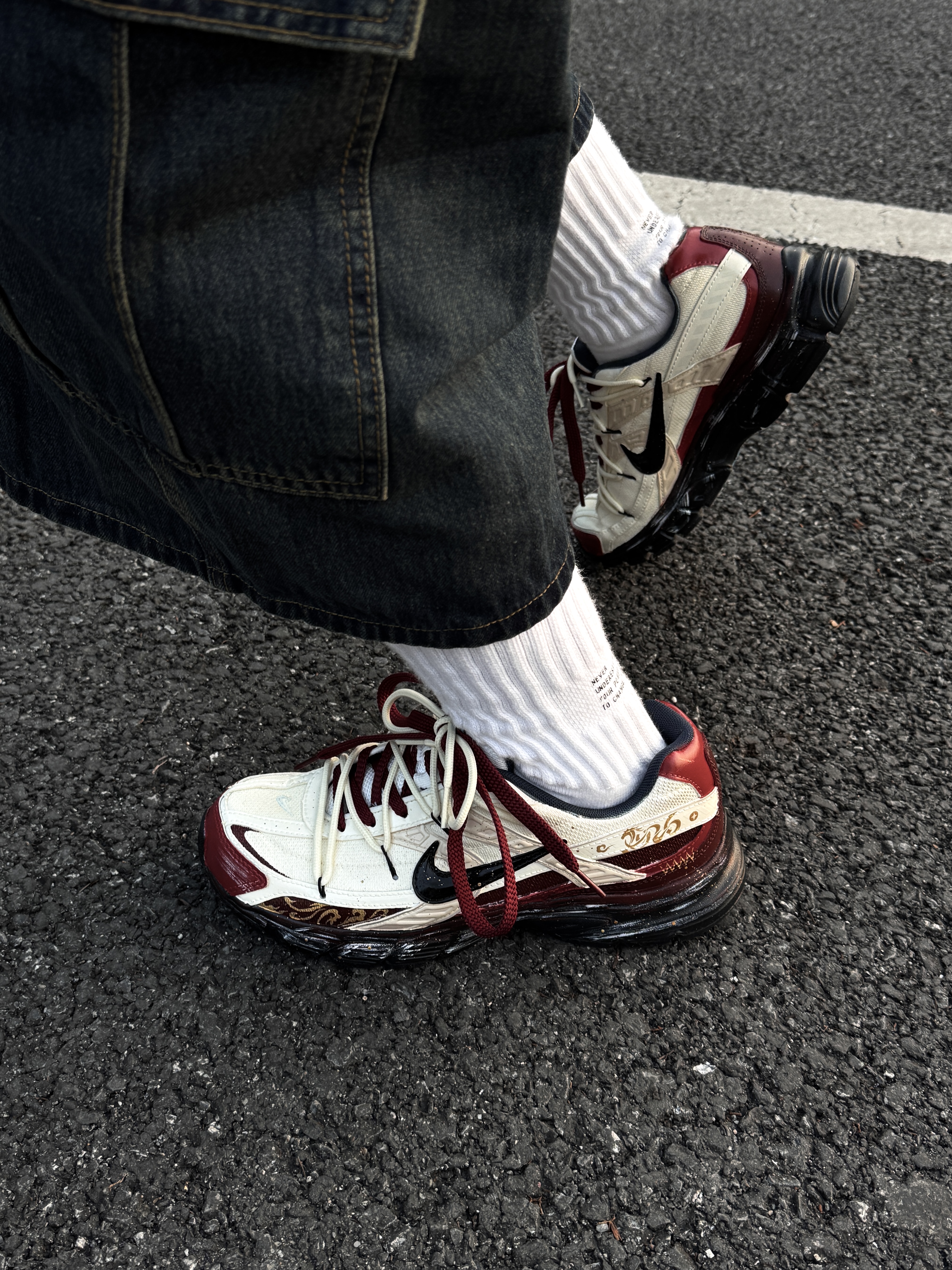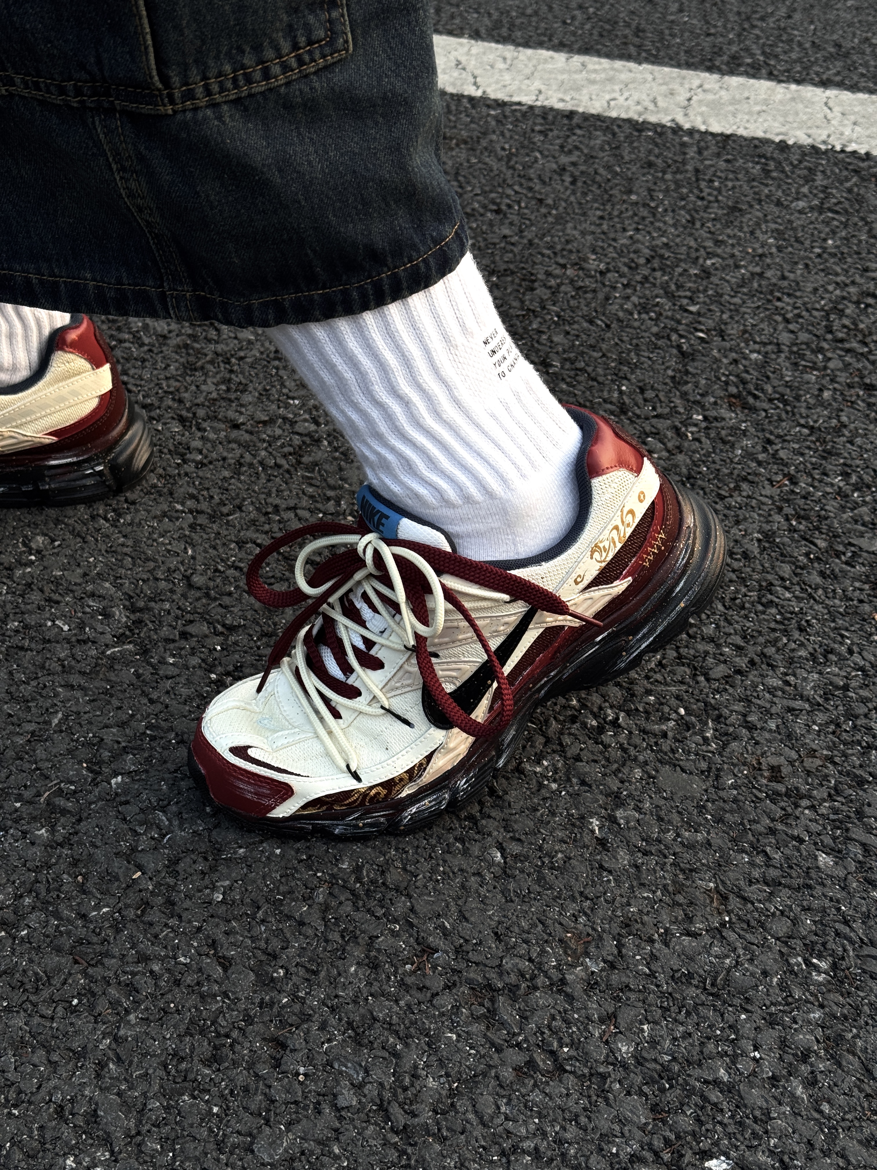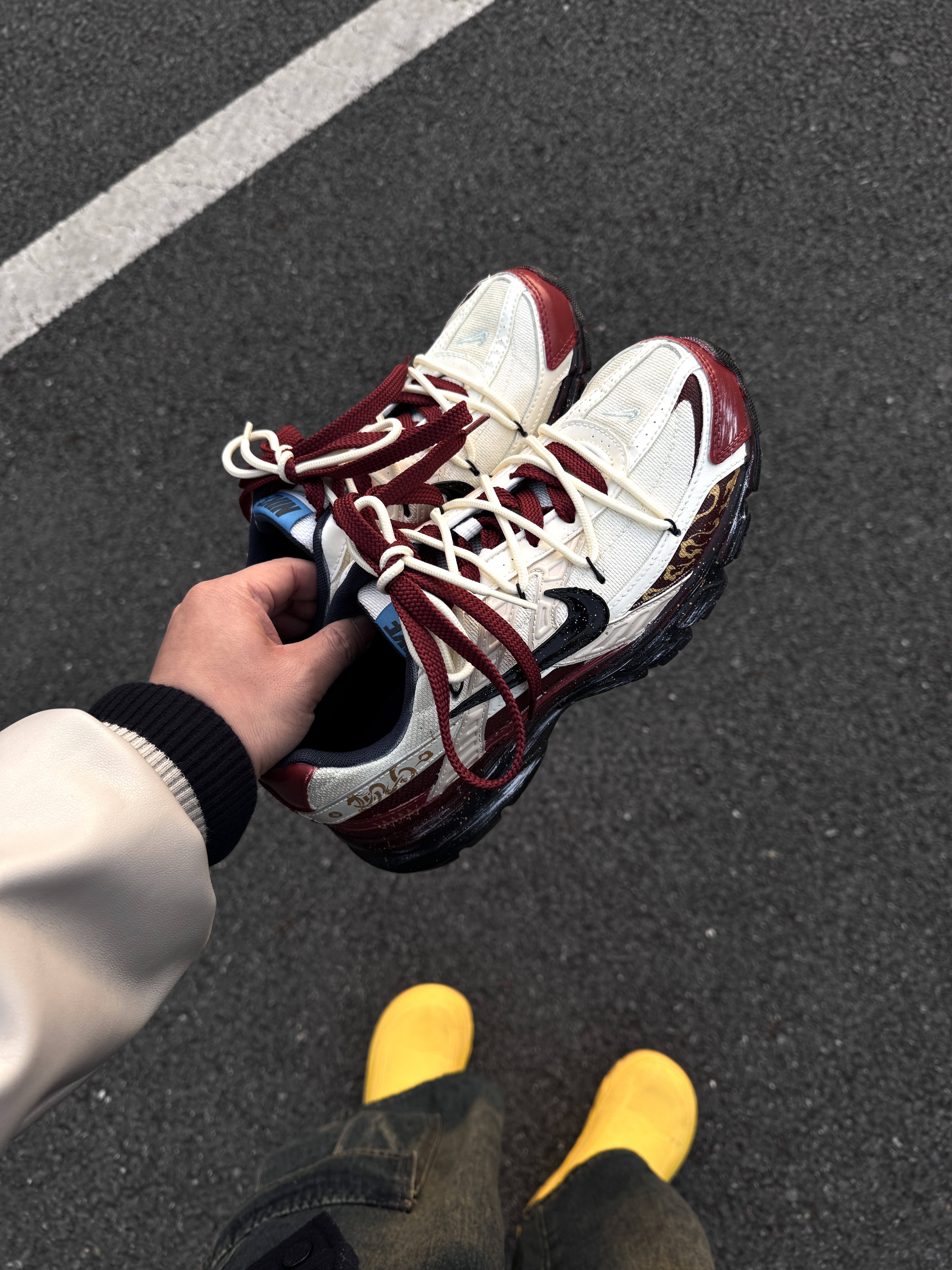 ~ 给大家分享一双 #Nike 的🐴年限定跑步鞋👟 这双红色➕白色的定制配色 白色是比较暖白可能有点点黄的 鞋带同样也是做了红白交织的双绑带的设计 整双鞋上脚就是比较显脚瘦的鞋型 穿上就比较显干练的感觉 我个人觉得脚感穿上去还蛮轻便的 软弹适中 像我日常常穿的牛仔裤和休闲卫裤都挺合适的 尺码小建议: 徐哥平常穿的40这双40的是刚好合适的‼️ #马年限定穿这双 #新年穿新鞋 #新年战靴已更新...