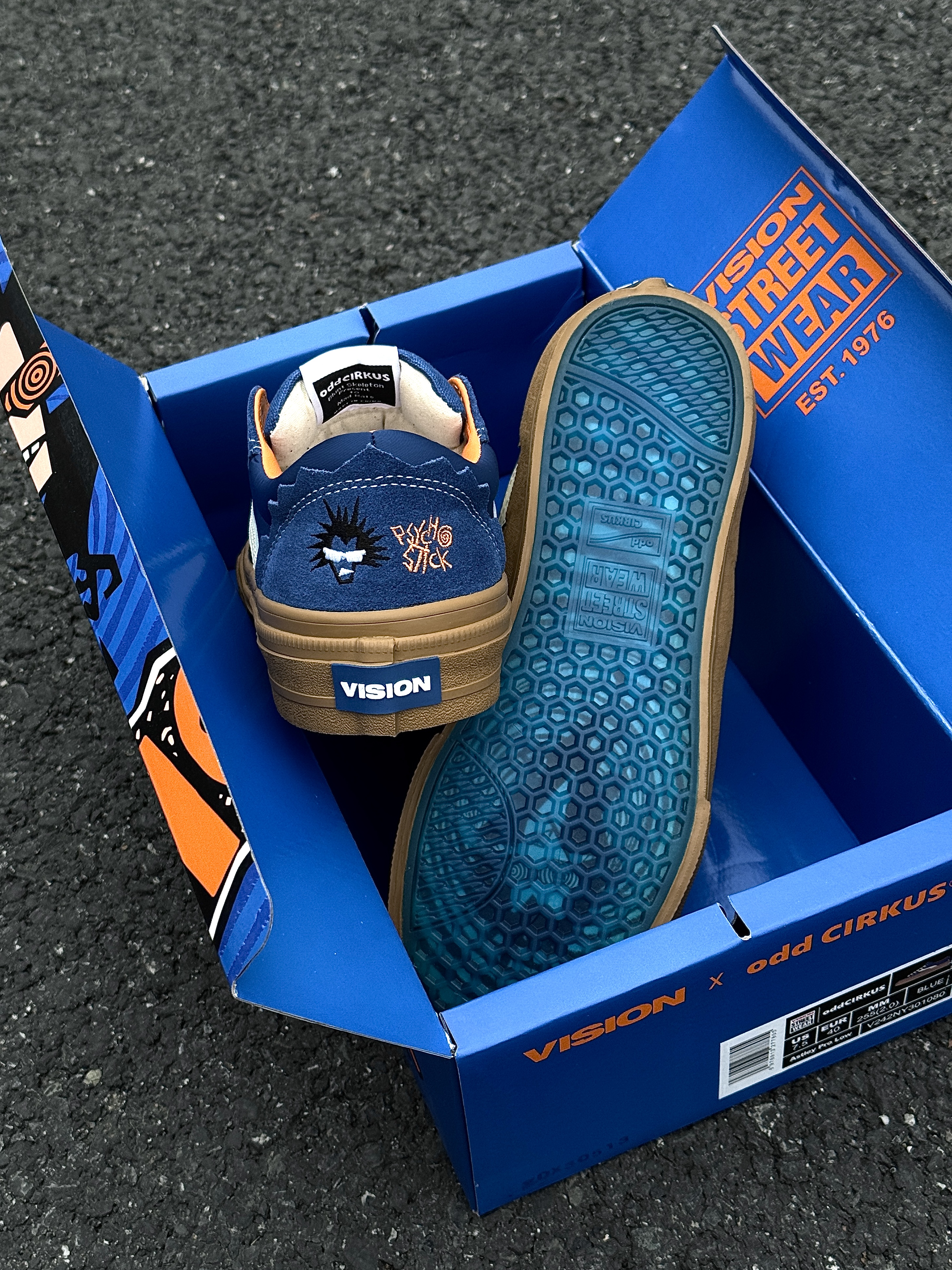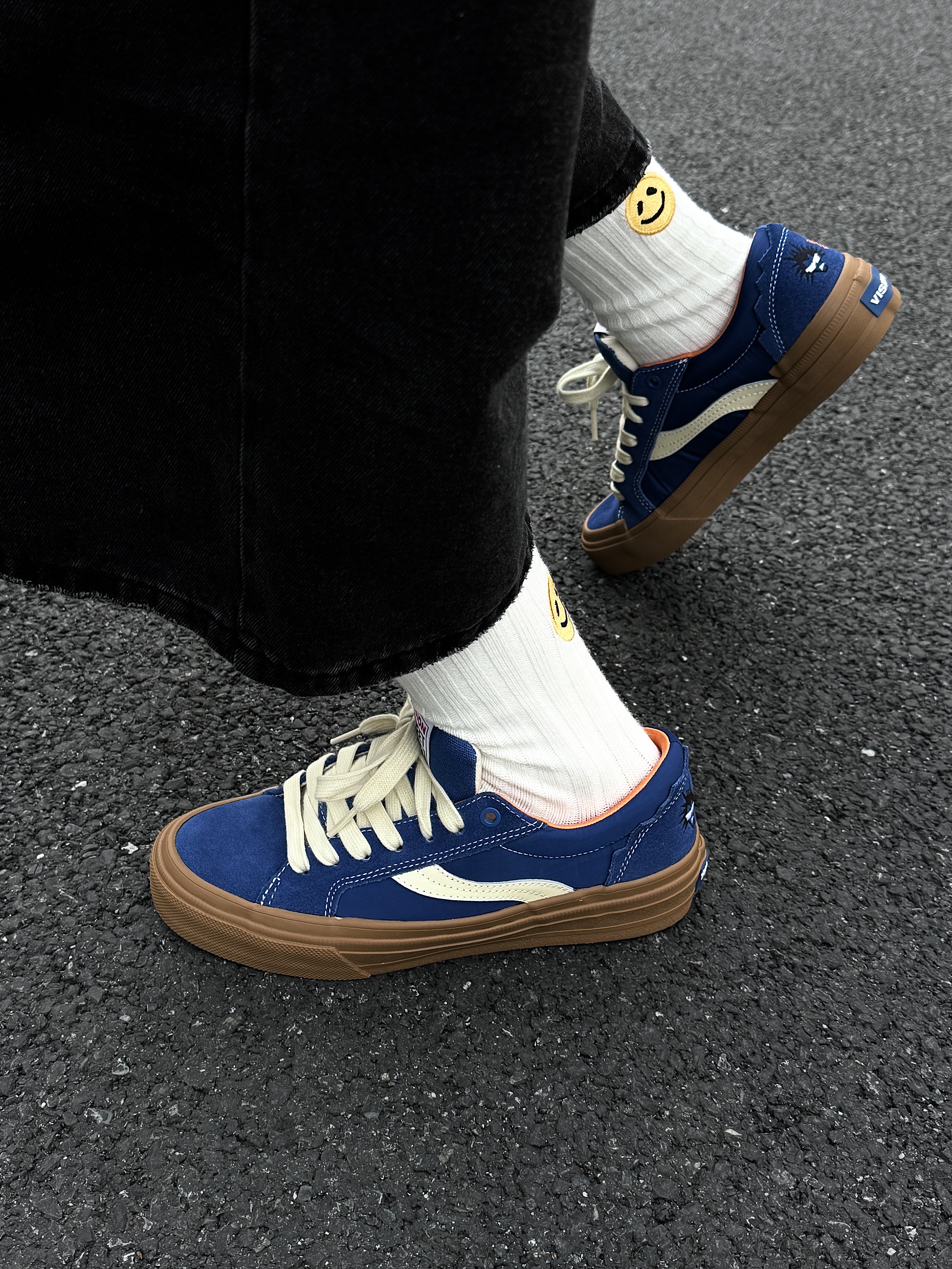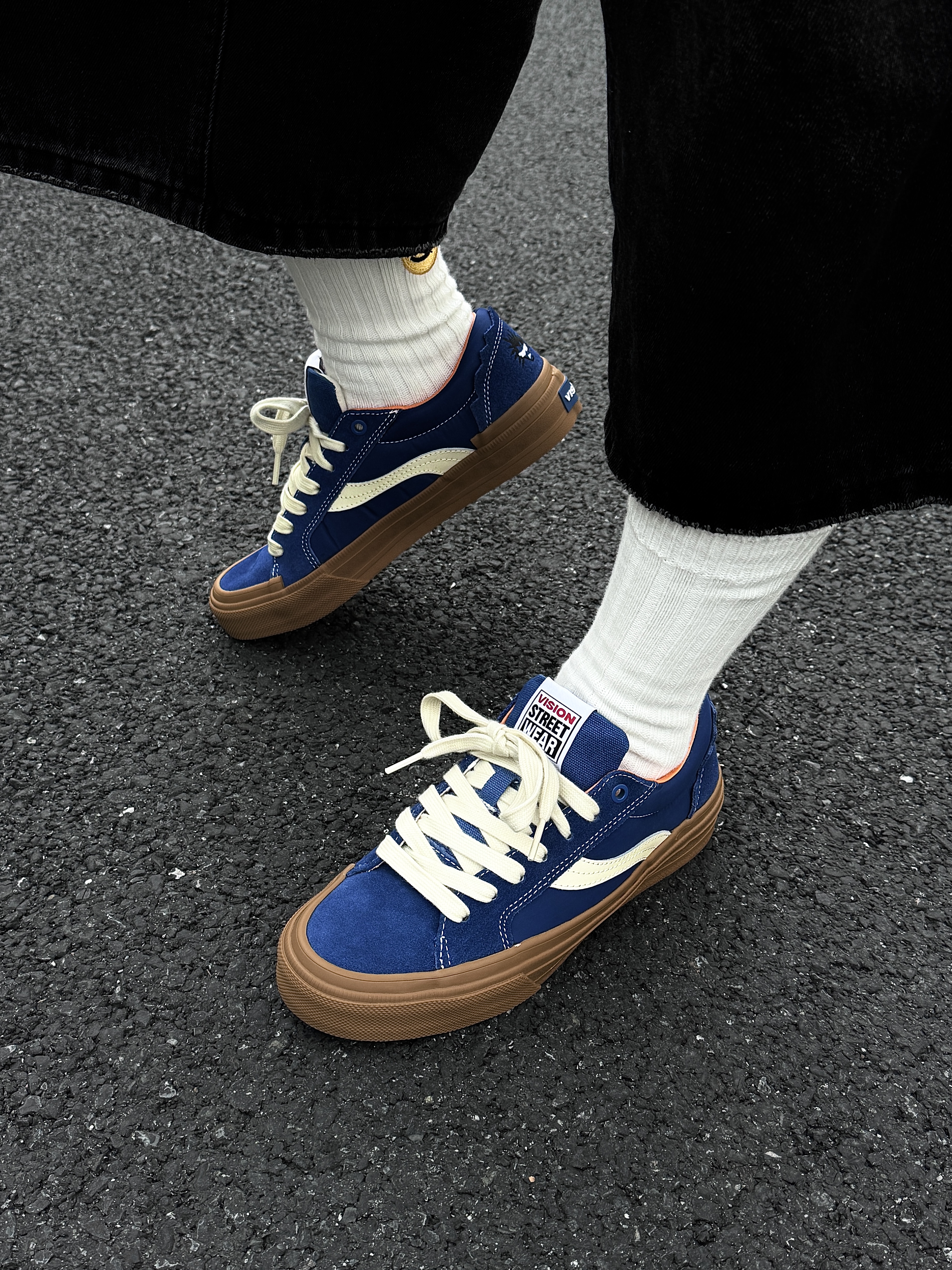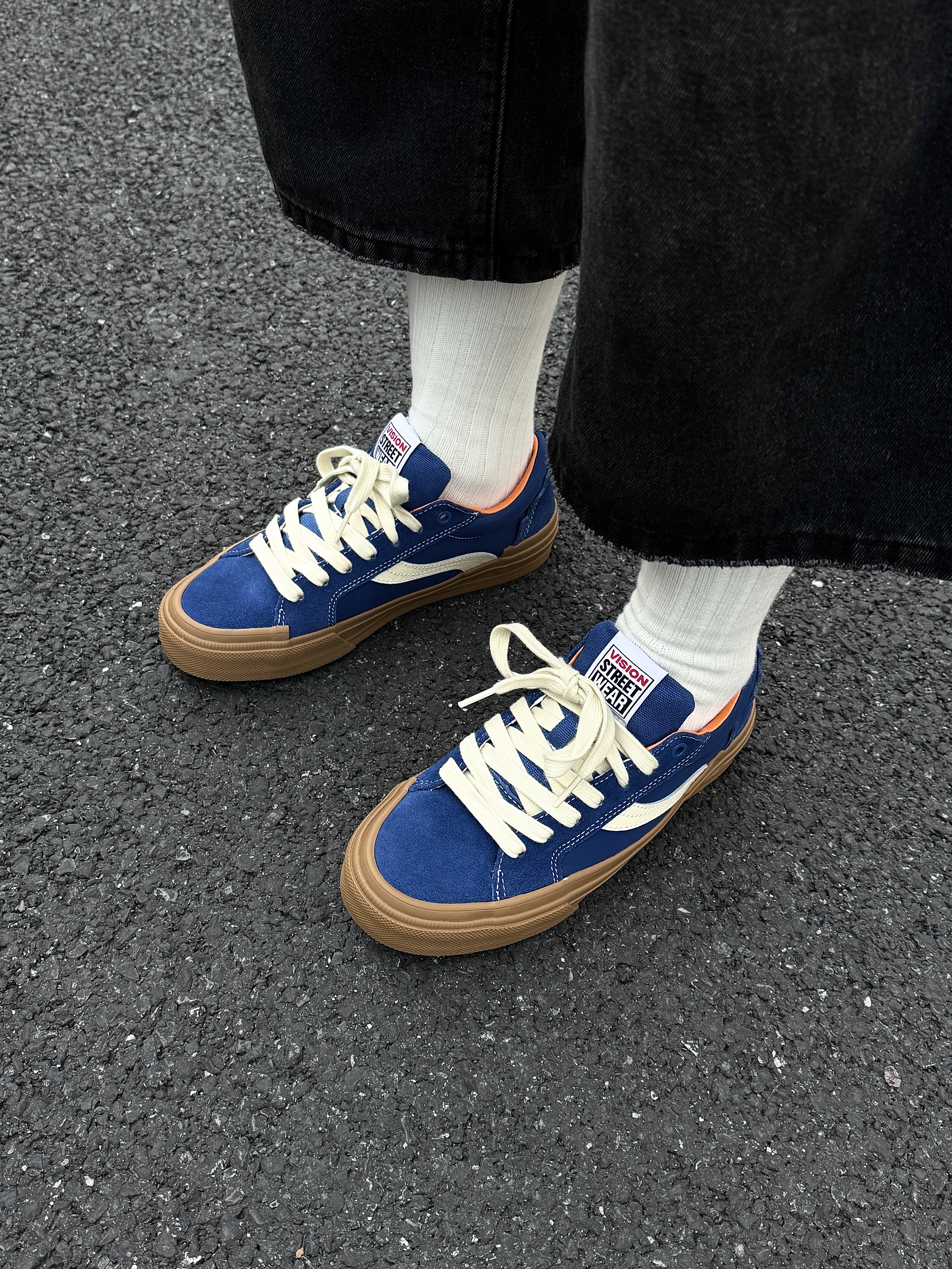 ~ 给大家分享一双 #vision street wear 的宝石蓝板鞋👟 这双偏多巴胺的板鞋上脚是真滴帅👏🏻 宝石蓝💙➕黑生胶鞋底撞色拼接 上脚耐看又吸睛 多巴胺控真的爱了 虽然是比较偏基础款的鞋型 但是脚感确实是有些说法的 对比我之前入手的会软弹很多 一些街头感的穿搭可以随意拿捏🤏🏻 整双鞋上脚就是比较显脚瘦的鞋型 上🦶🏻增高有个2公分左右差不多 像我日常常穿的牛仔裤和休闲卫裤都挺合适的 尺...