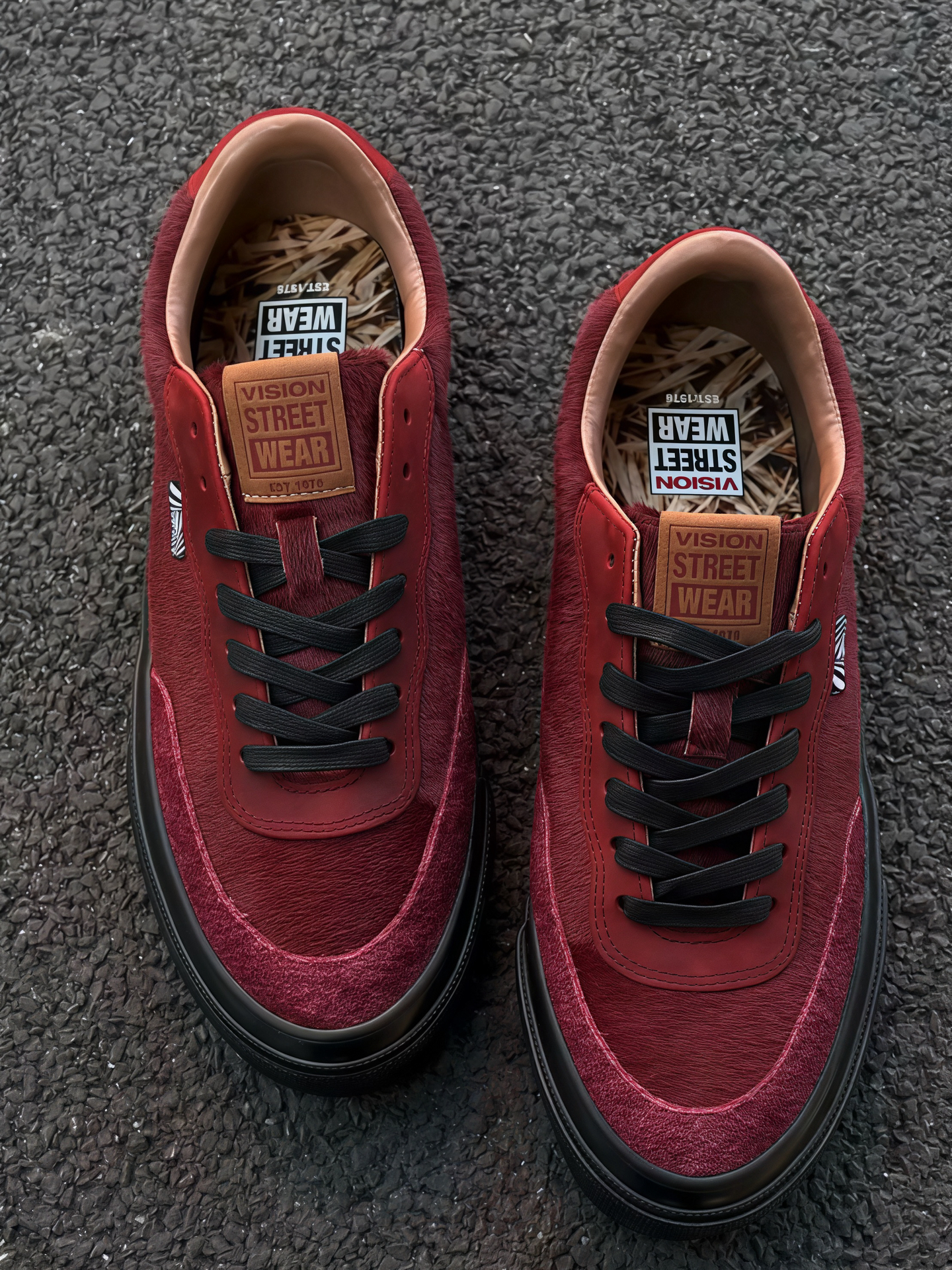 又一双马年限定 来自vision street wear的酒红色滑板鞋 鞋面的麂皮与马毛的拼接,鞋后跟的铆钉设计,以及鞋垫的草料图案都跟马元素相关联,真的是细节满满[赞_blue] 大底的皮革设计显得质感拉满 上脚感觉很舒服脚后跟不会疼 不管是搭配图中的蓝色原牛或者白色裤子都将新年氛围感烘托出来了 目前价格来到了四位数,等后期会降,可以先想要降价再买也不迟[机智_blue] #马年限定穿这双 #复...