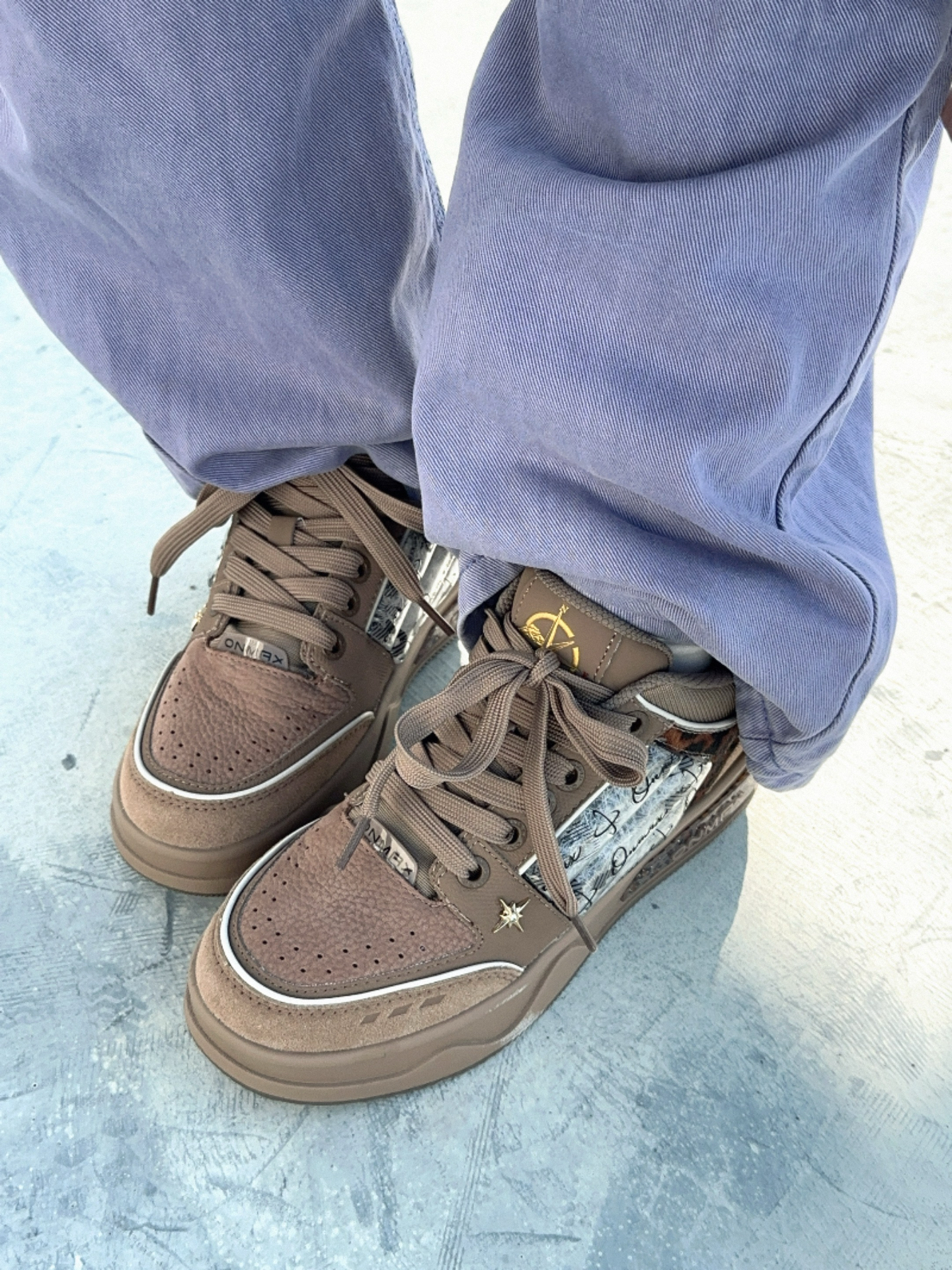 上身近几年很流行的座山雕外套🧥 不得不说真的很出片 裤子搭配紫色水洗牛仔裤 今天的鞋子👟是 #ON MAX 豹纹板鞋 后面豹纹有点小复古的感觉 侧面还是熟悉的羽绒填充小设计! 整体也是有很多小亮点 脚感也很错哈哈! #基础款拿捏冬季穿搭 #ONMAX #冬日男生板鞋穿搭氛围感 #冬日男生羽绒穿搭氛围感 #新年买新鞋