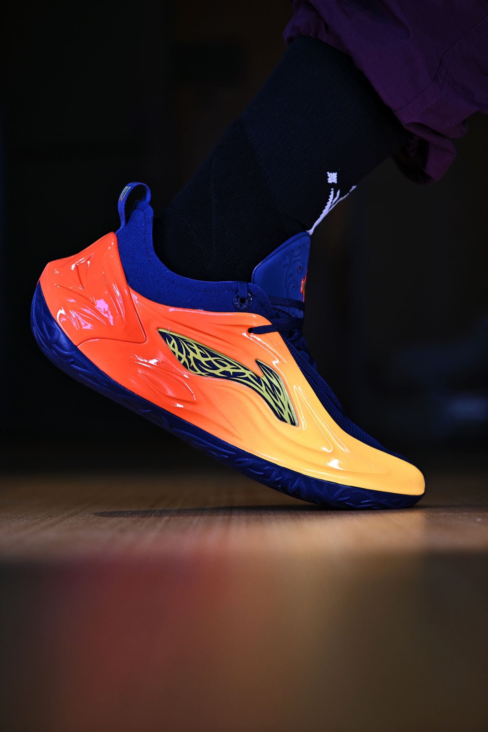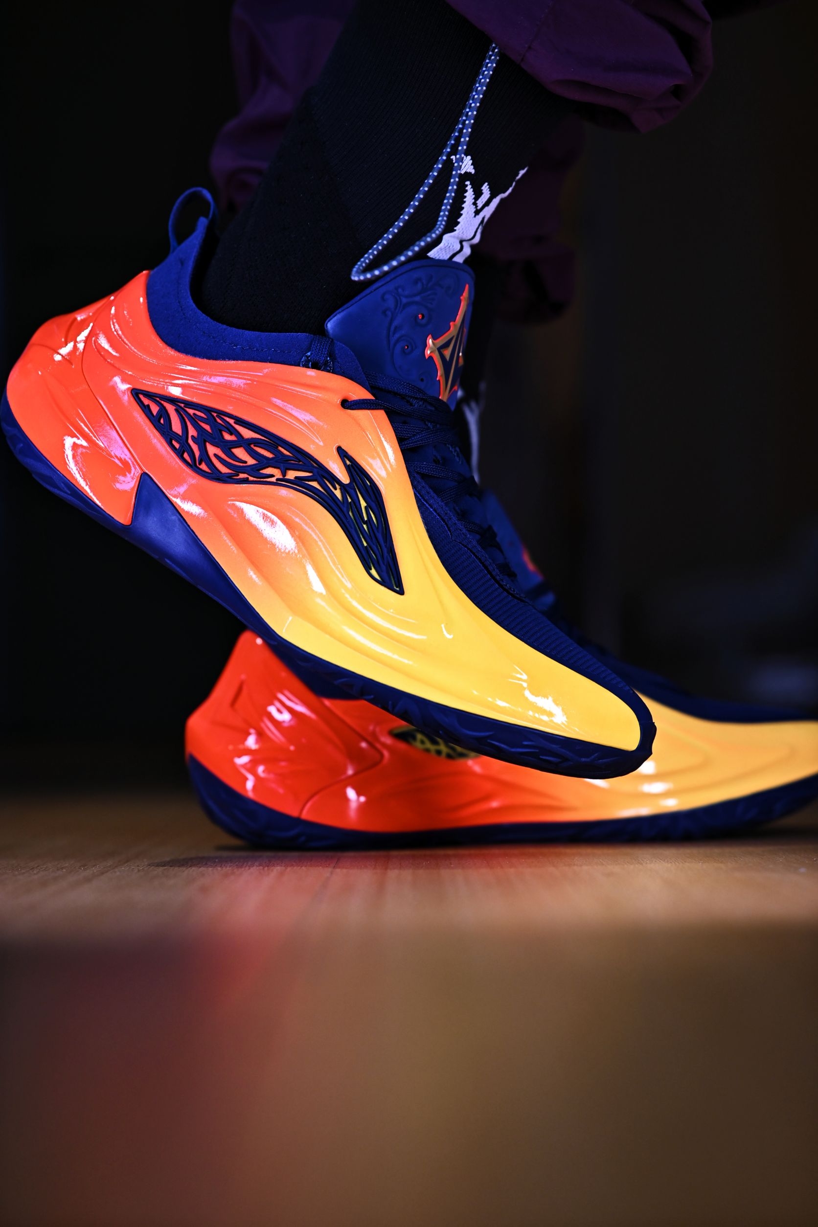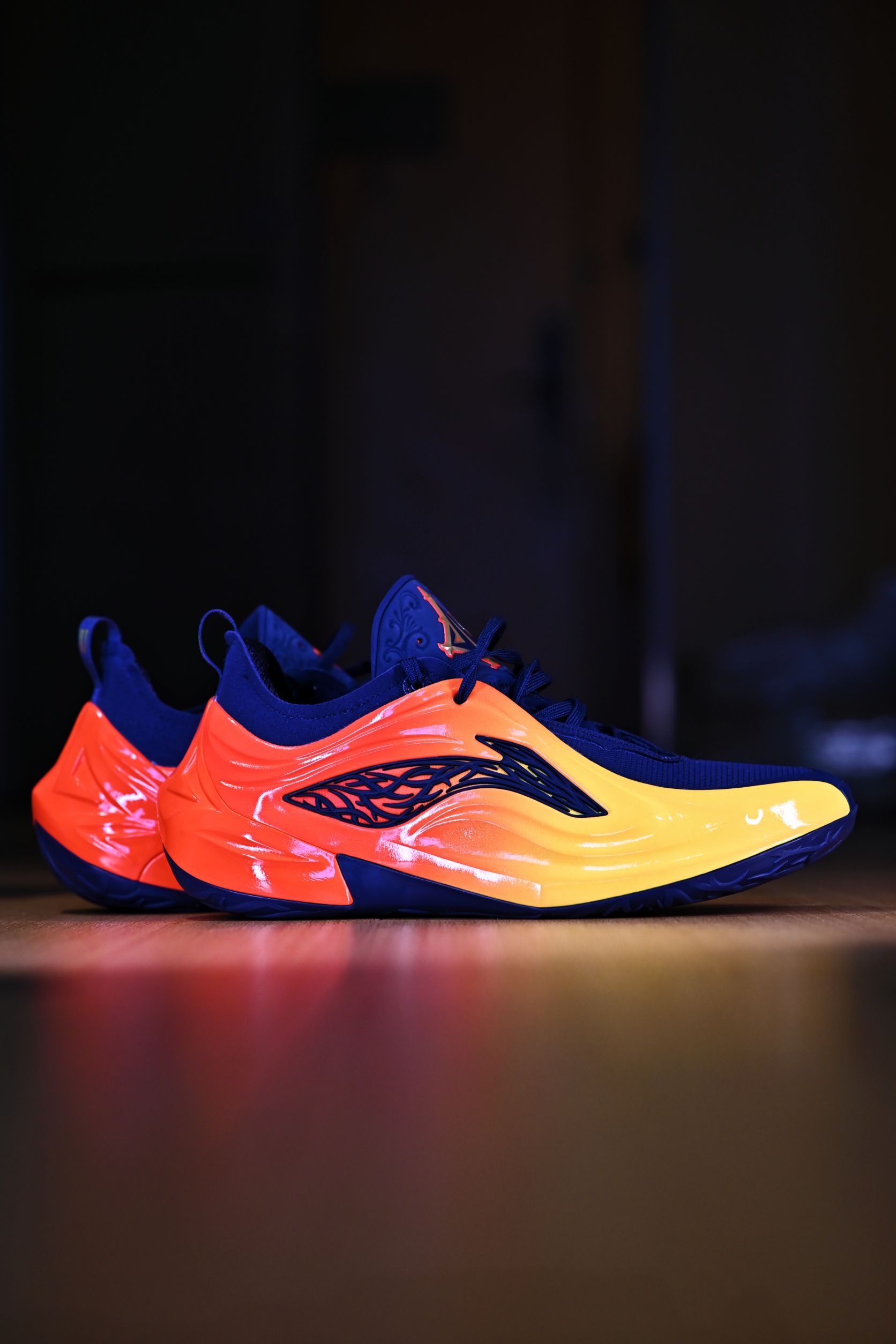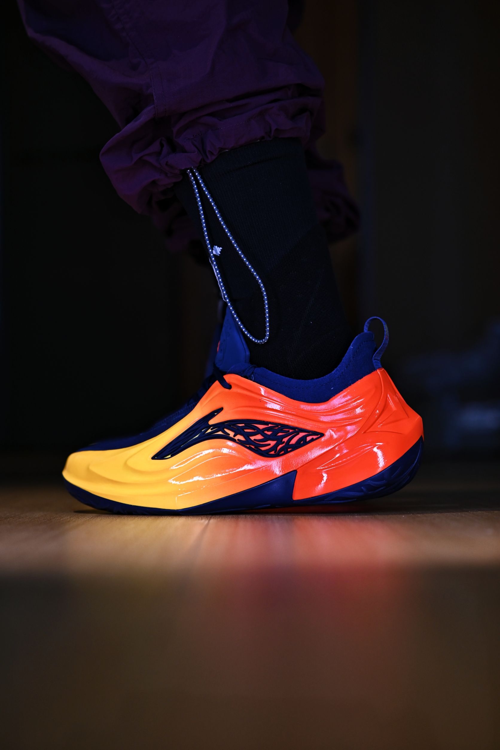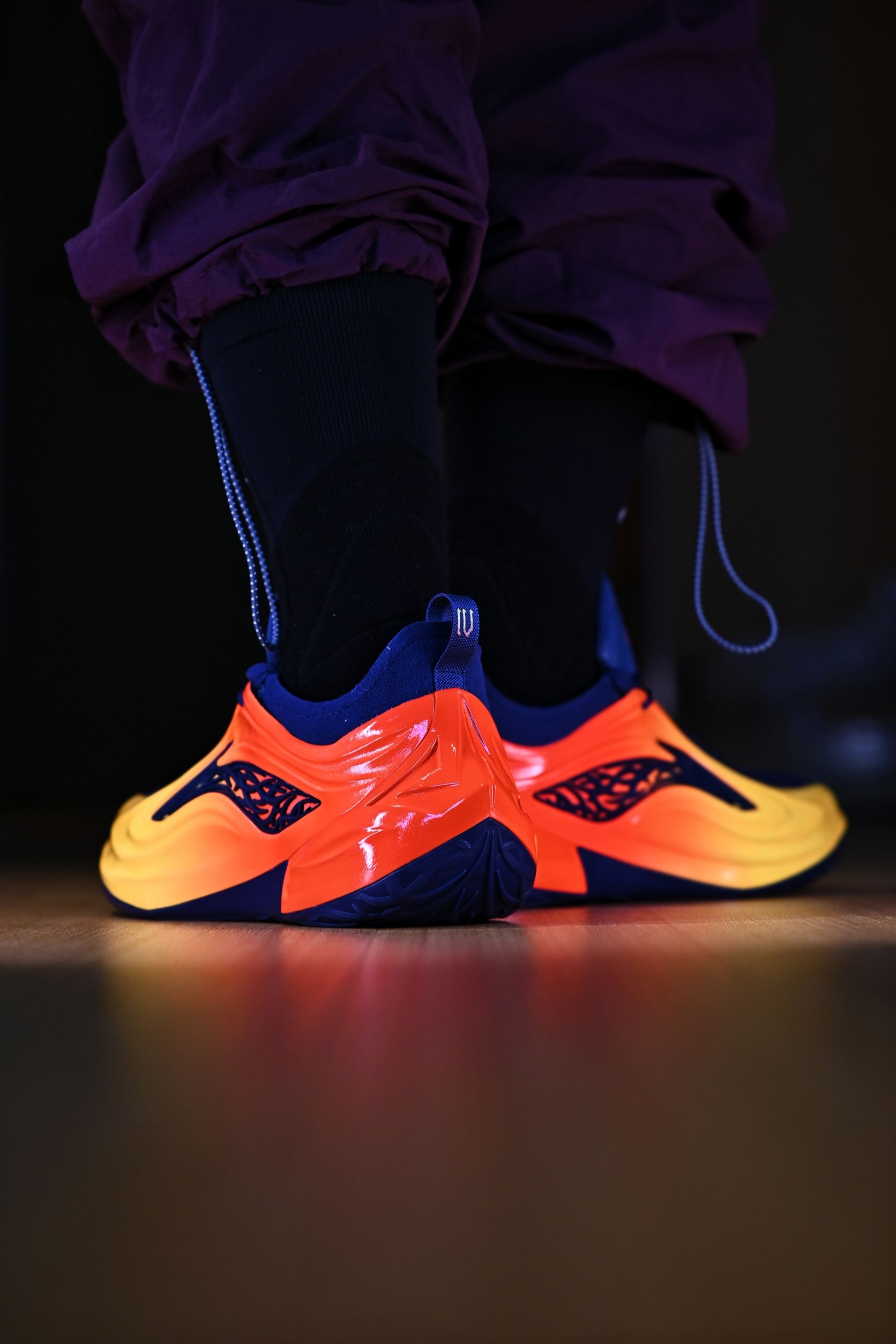 JB4的这个设计,真的可以说是艺术品了 特别是这双橙红渐变的"湾区之刃",加上外侧的荆棘logo,这谁能忍住 取自勇士复古球衣上的配色 并且作为宁子的旗舰系列,什么狠活、科技、碳核芯都给你安排的满满当当 上脚那脚感可谓是非常澎湃了 这么一双颜值实力都在线的球鞋还是推荐喜欢的兄弟们入手的