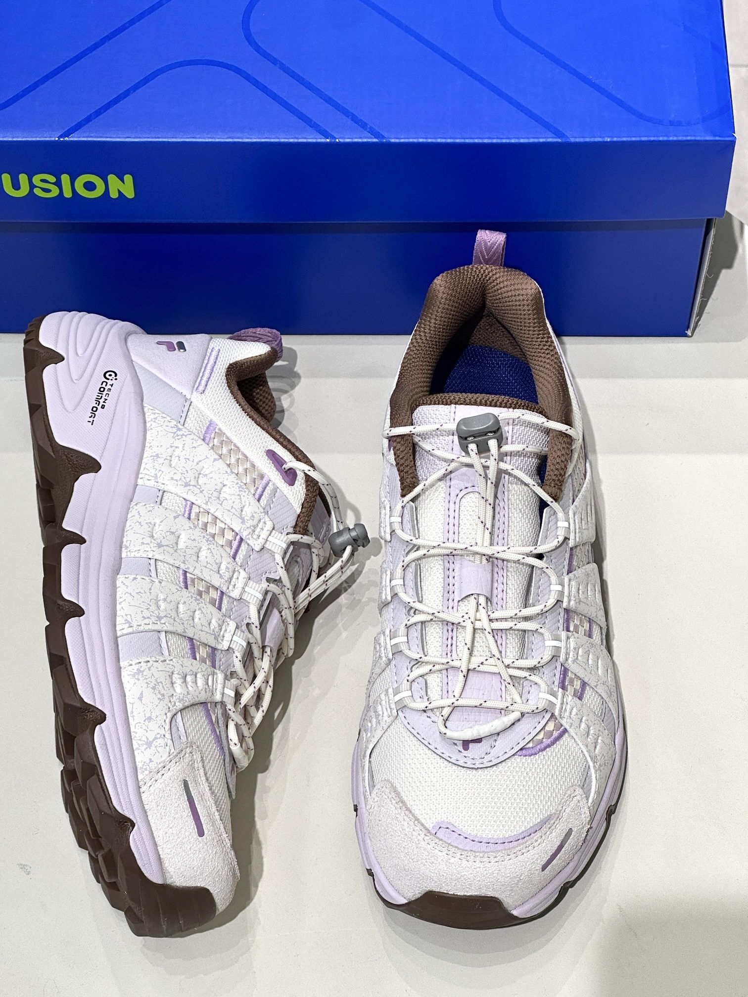 谁能拒绝这双香芋紫调的斐乐登山鞋啊👟 米白基底搭配淡紫线条,再撞一点咖色细节,甜妹氛围感直接拉满!!!