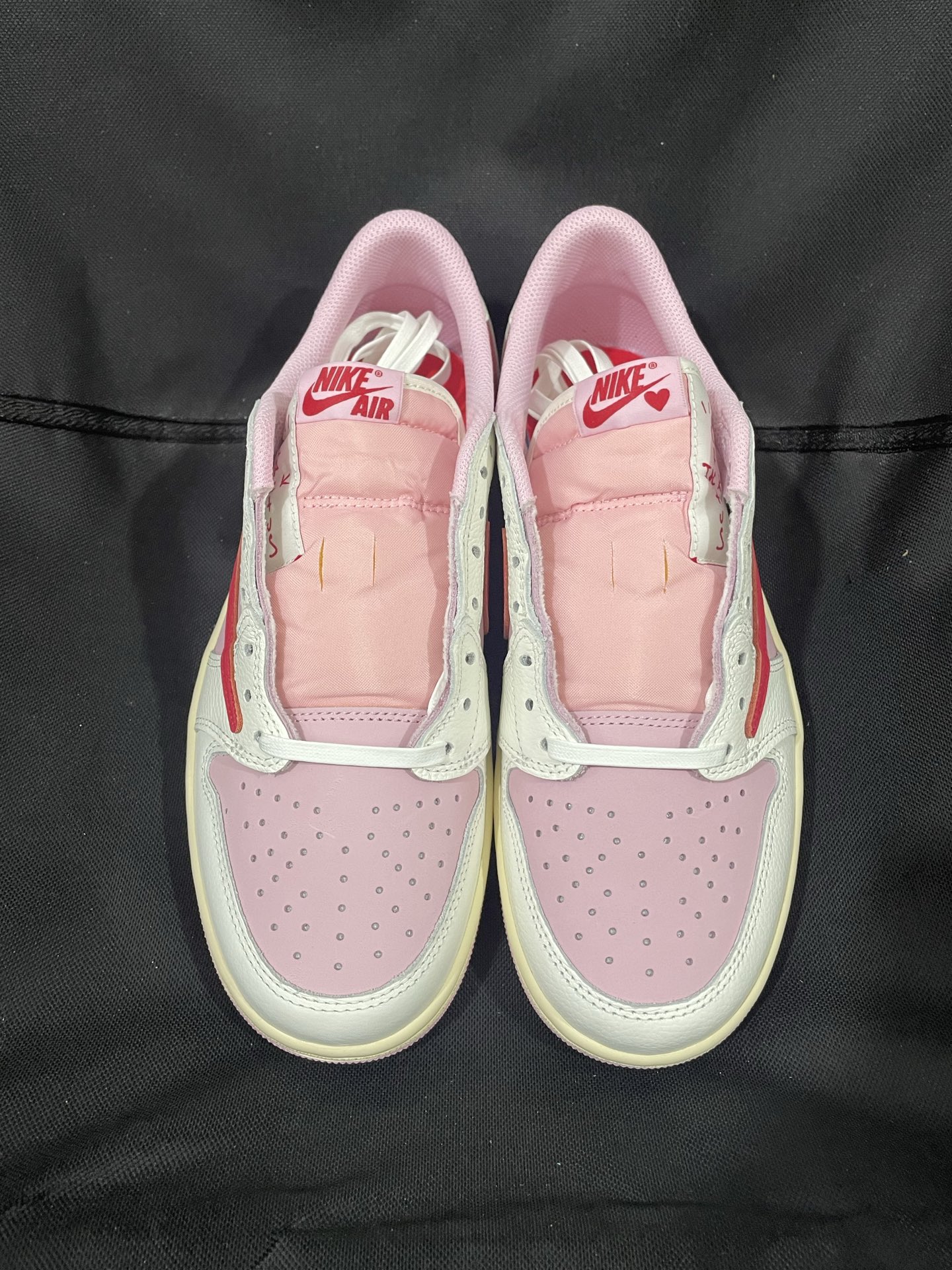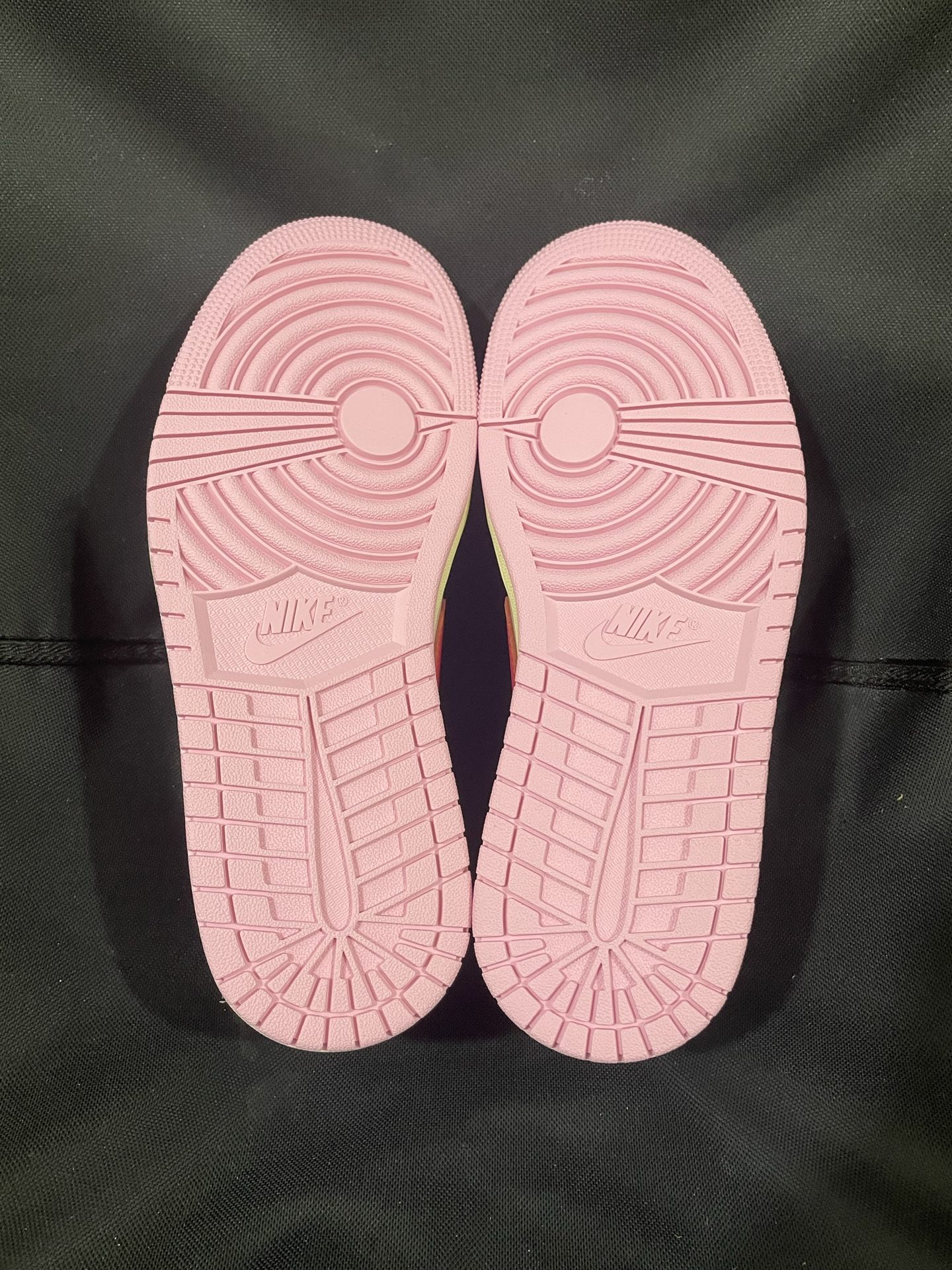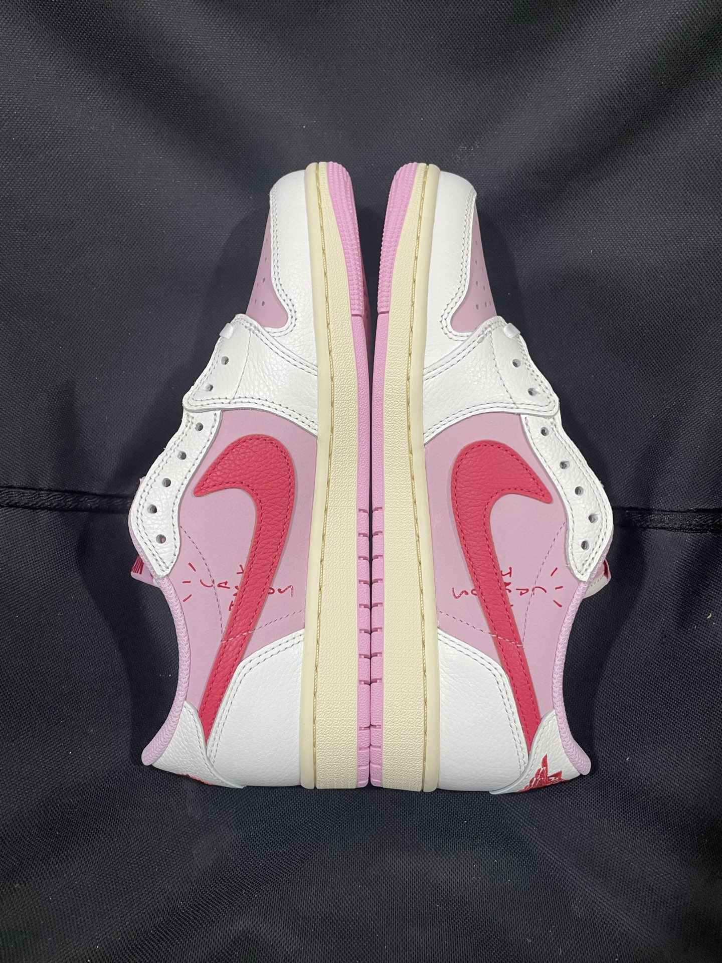 谁懂啊!这双粉白红撞色的AJ1真的把甜酷风焊在脚上了🎀 奶白荔枝纹皮革+低饱和樱花粉,温柔又显嫩; 正红色Swoosh和做旧米黄中底,瞬间拉满复古甜妹感。 上脚不仅显腿细,配牛仔裤、百褶裙都超适配, 日常出街回头率直接拉满✨ 情人节、春天约会穿它,男朋友看了都夸会买! 甜妹辣妹都能冲的一双,闭眼入不踩雷💖