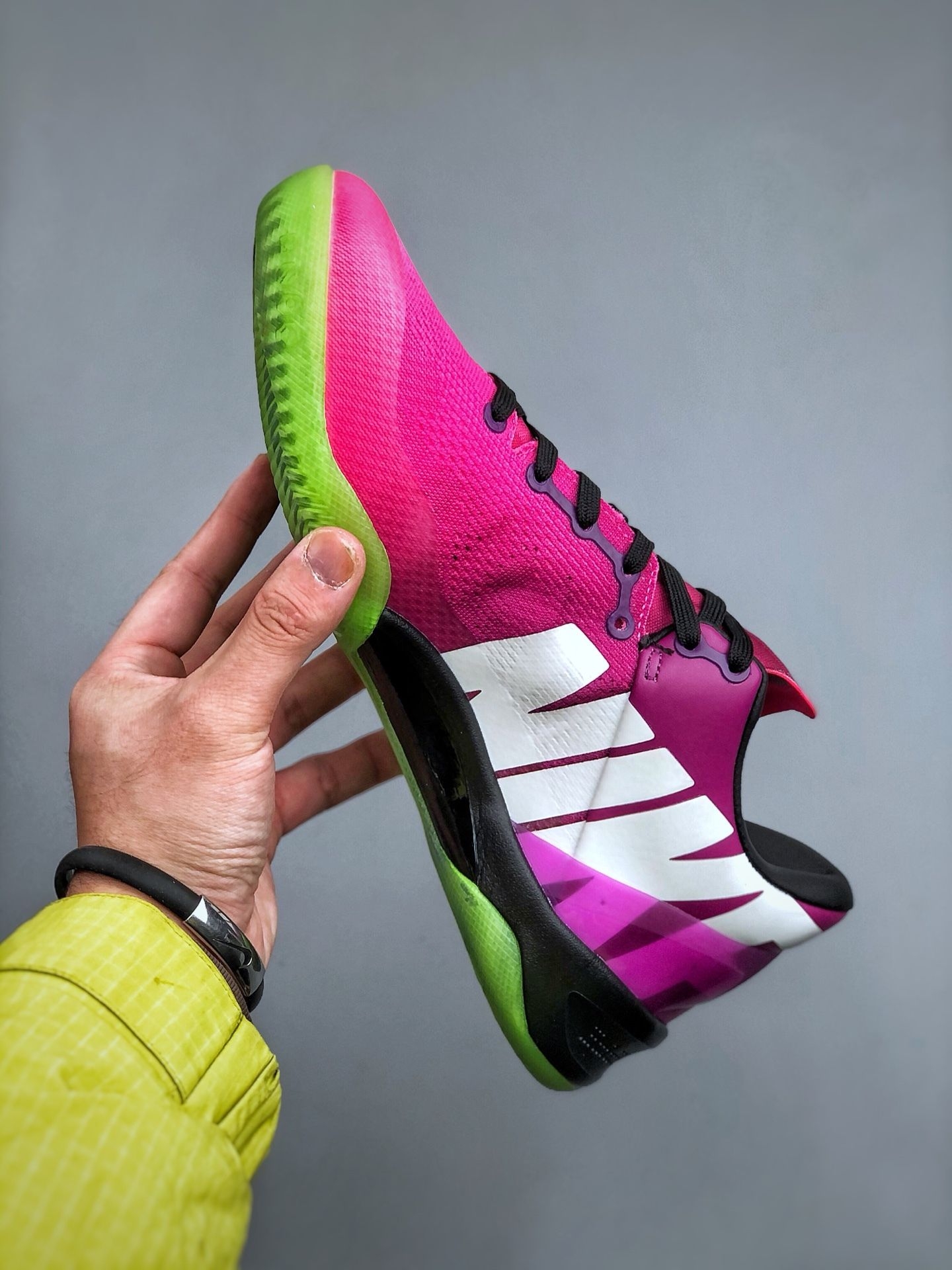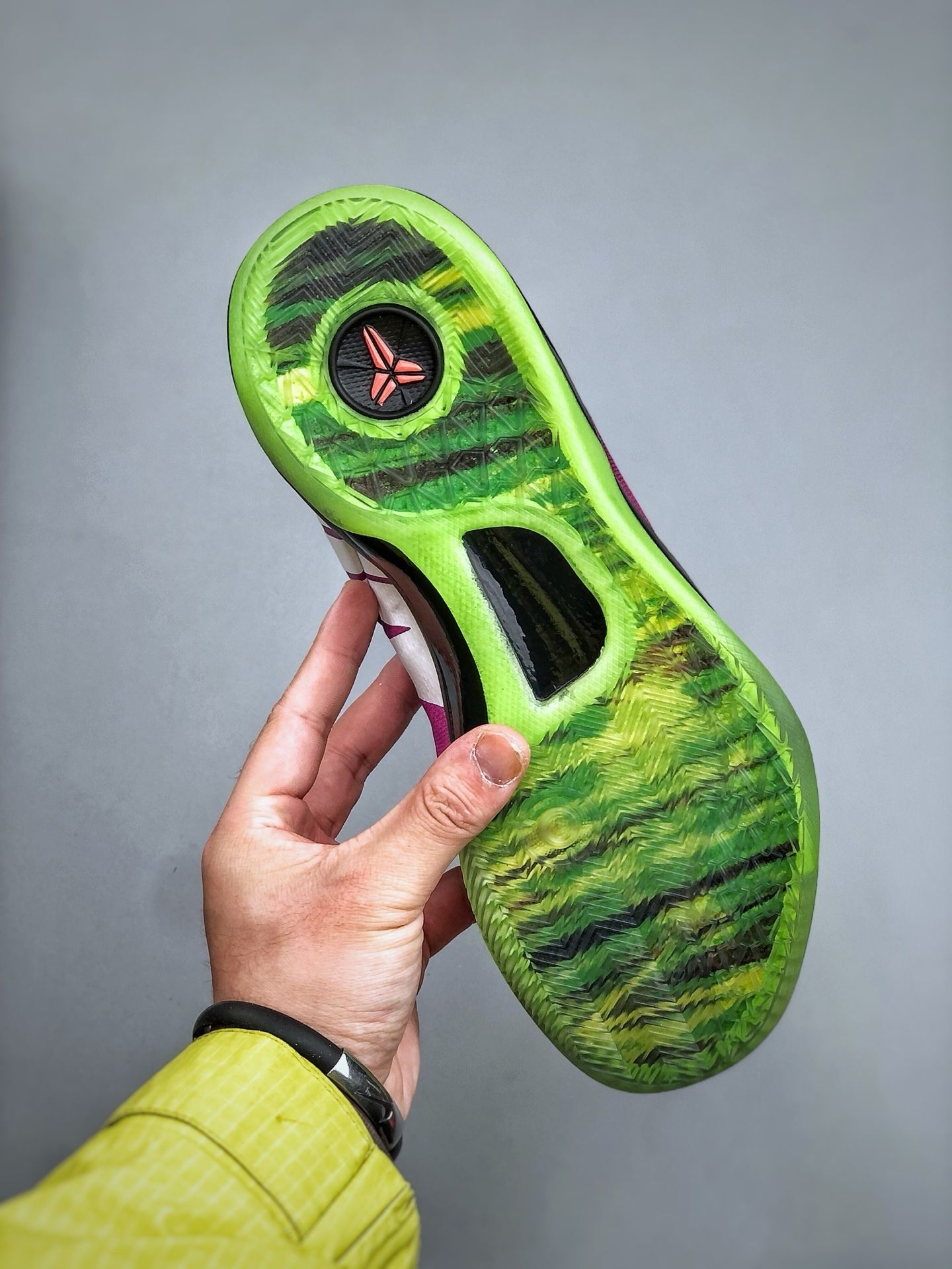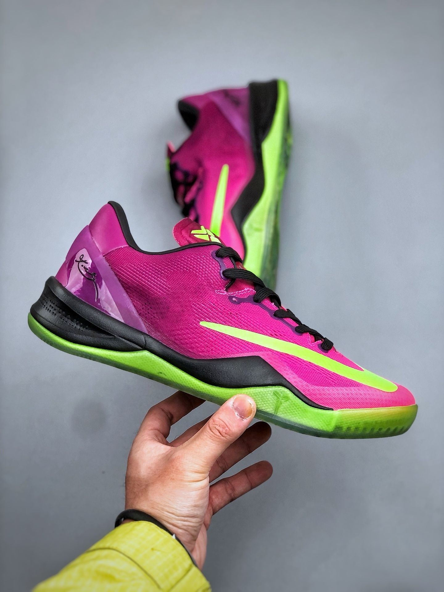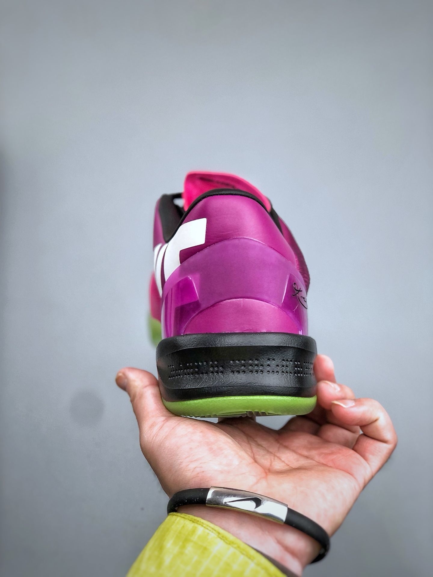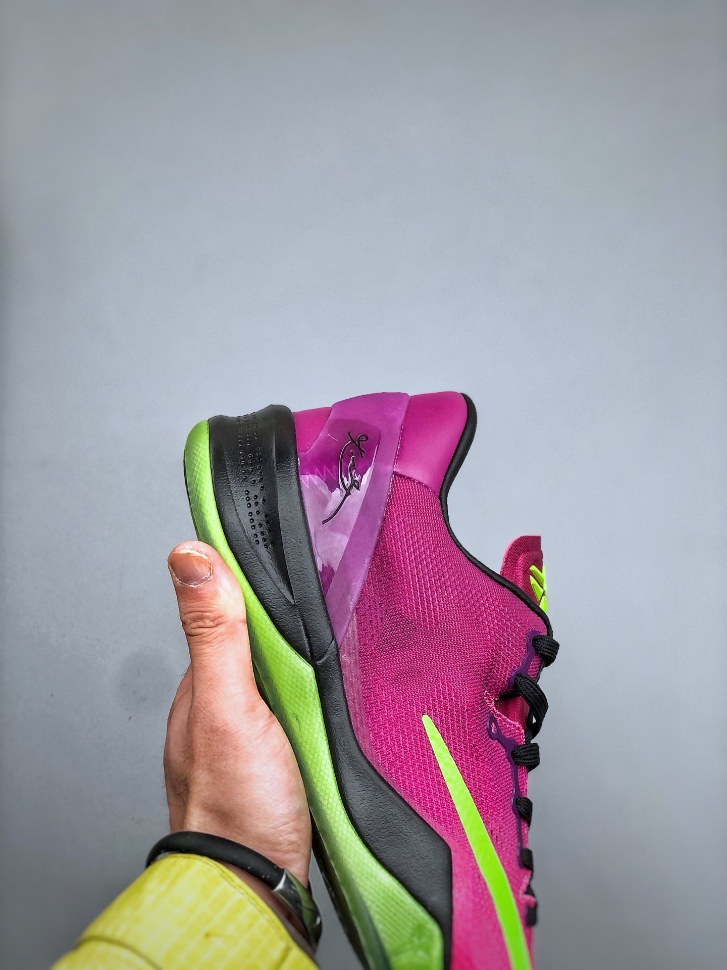 我书房的角落,有一个专门放科比鞋的架子。它们按年份排着,大部分时间很安静。直到我拿出这双KOBE 8 SYSTEM YOTH,放在午后的光线下,那种属于科比的、充满矛盾美感的气质,好像又活了过来。 拿起它的第一感觉,是“轻”。比我想象中轻很多。我把它托在手里,紫红色和荧光绿的配色在光线下有种未来感,甚至有点“不真实”,就像科比那些不可思议的进球。我转动鞋身,看那些飞线交织成的网状结构,紧绷,有序...