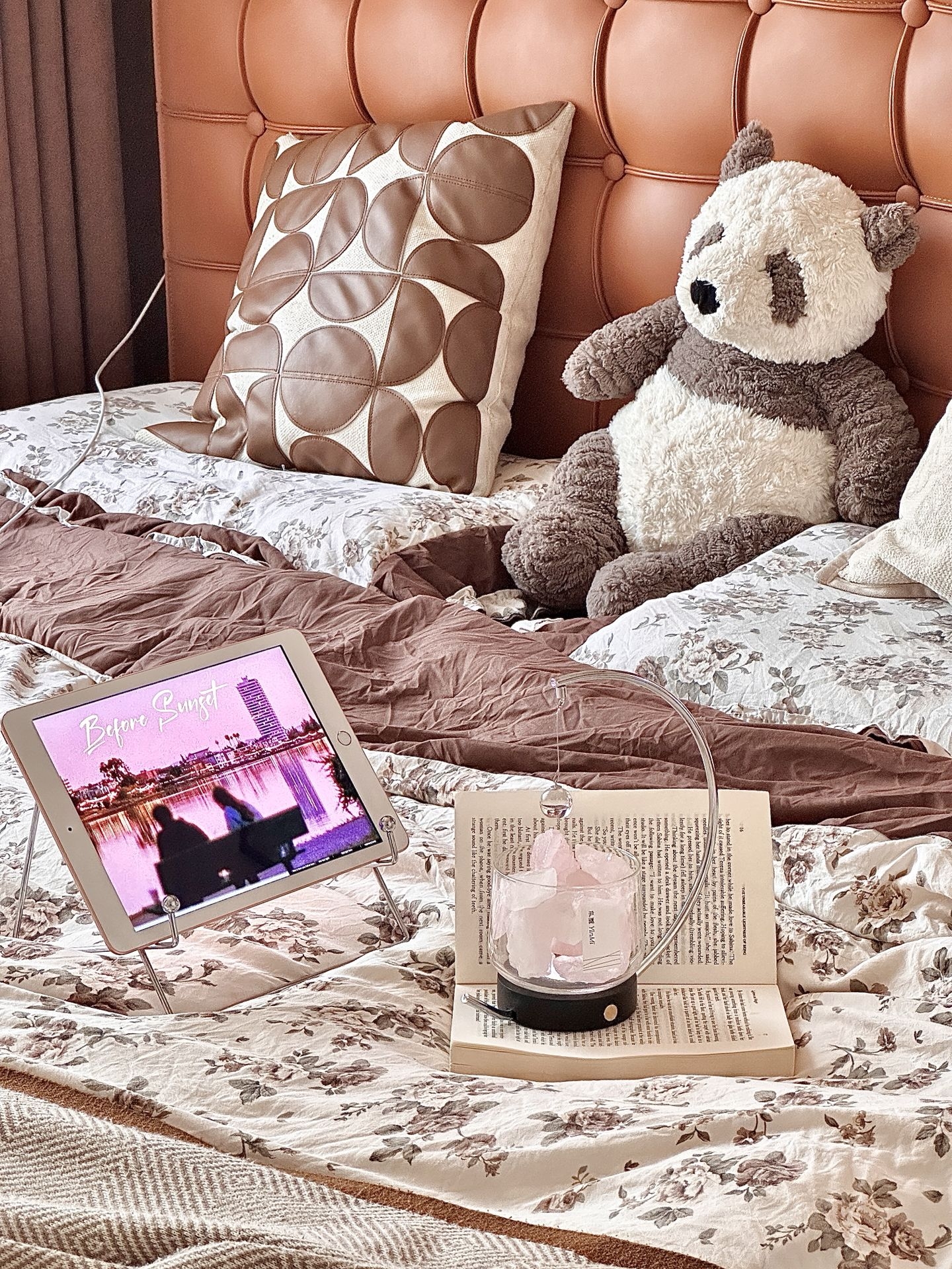 是我hin心水的月亮灯诶 和我美拉德色的卧室好搭 我选的是淡粉色和白色的晶石 打开灯后blingbling✨的,很好看 只用滴上几滴香薰精油,让香味慢慢散发 卧室里满满的散发着我喜欢的味道 在这小房间里,躺在床上看书睡觉听歌… 真好吖,这个氛围感,女孩纸真的会hin中意吧💗 #家的秋冬新皮肤 #家的秋冬氛围感 #养成系的家 #秋冬好物 #提升家居氛围感好物 @得物家居