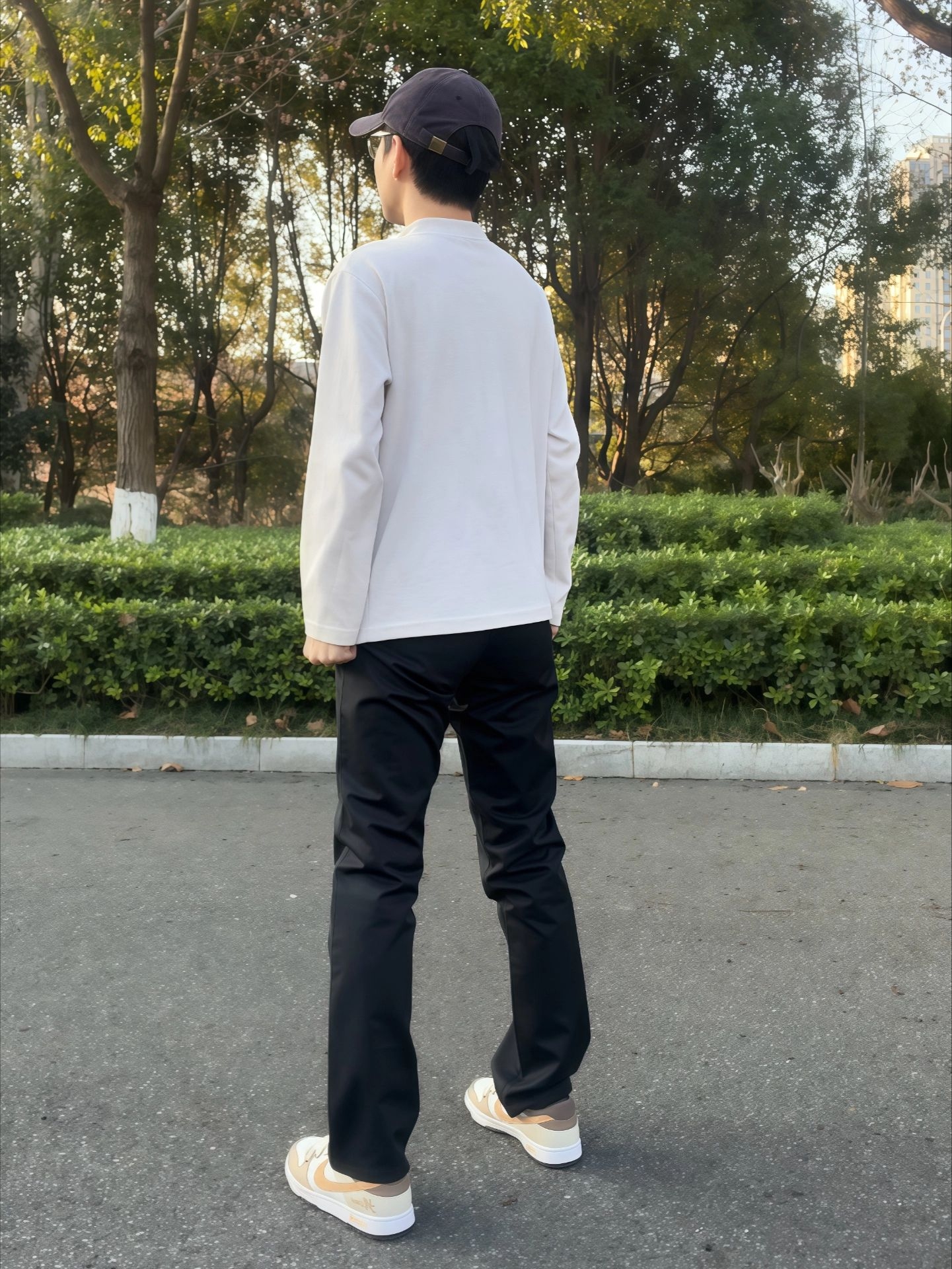 穿自己适合才舒服☑️ 免烫易打理而且上身穿褶皱也不明显 中腰➕窄版设计不会勒肚子 修身的同时也可以有效的修饰腿型🦵 黑色百搭款搭上衣也蛮吼搭得☑️ 白色长袖➕白棕色板鞋就可以出街😊 整体显高显瘦 单穿还不冷的😬 #雅戈尔/YOUNGOR