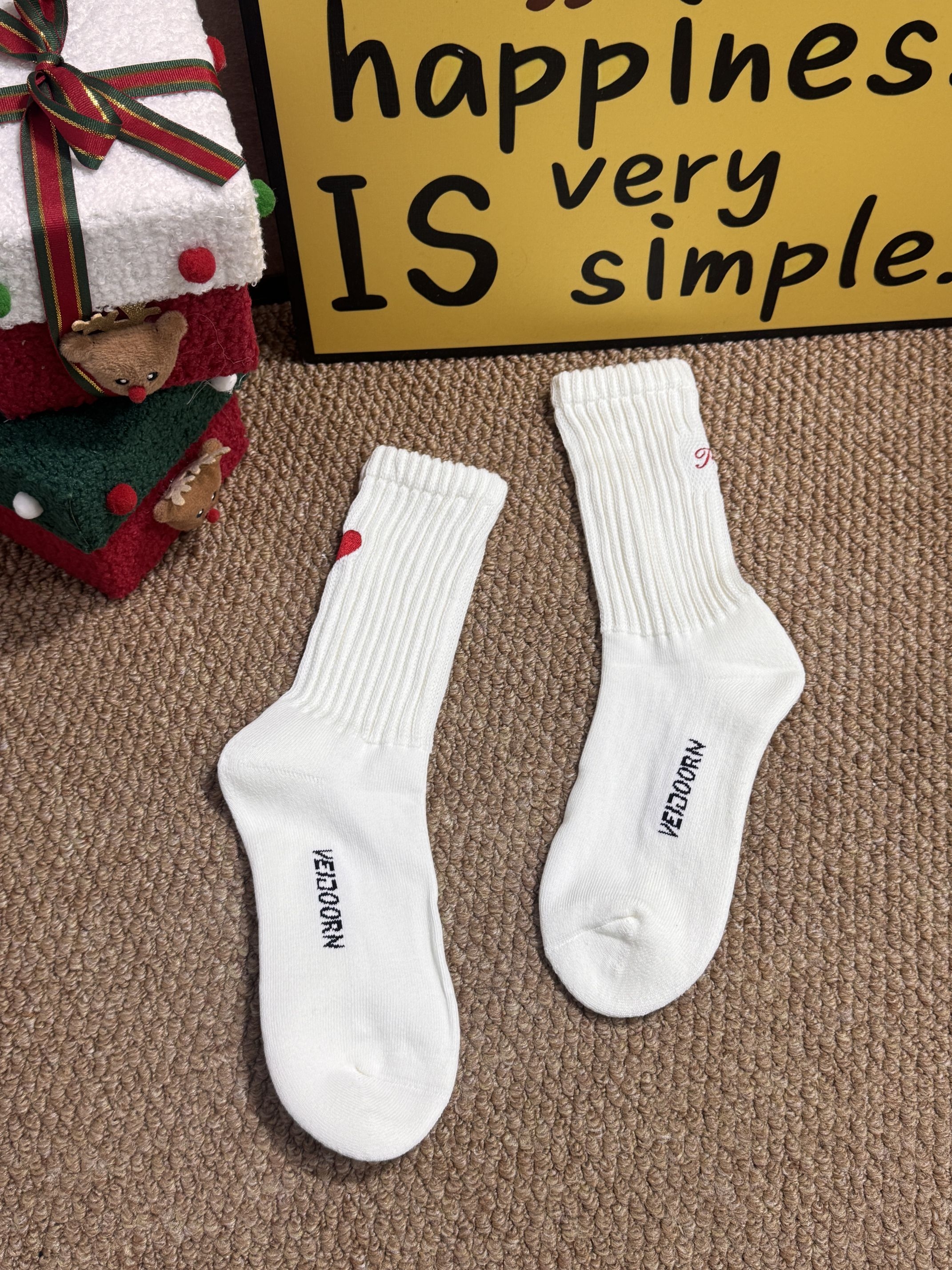 上次分享了灰色的这款针织袜 女宝可以选这款白色当情侣袜 后面的爱心小刺绣好有小巧思 袜子软软糯糯的穿起来很舒服 很透气不会闷脚还不掉跟🥰 #维动 VEIDOORN