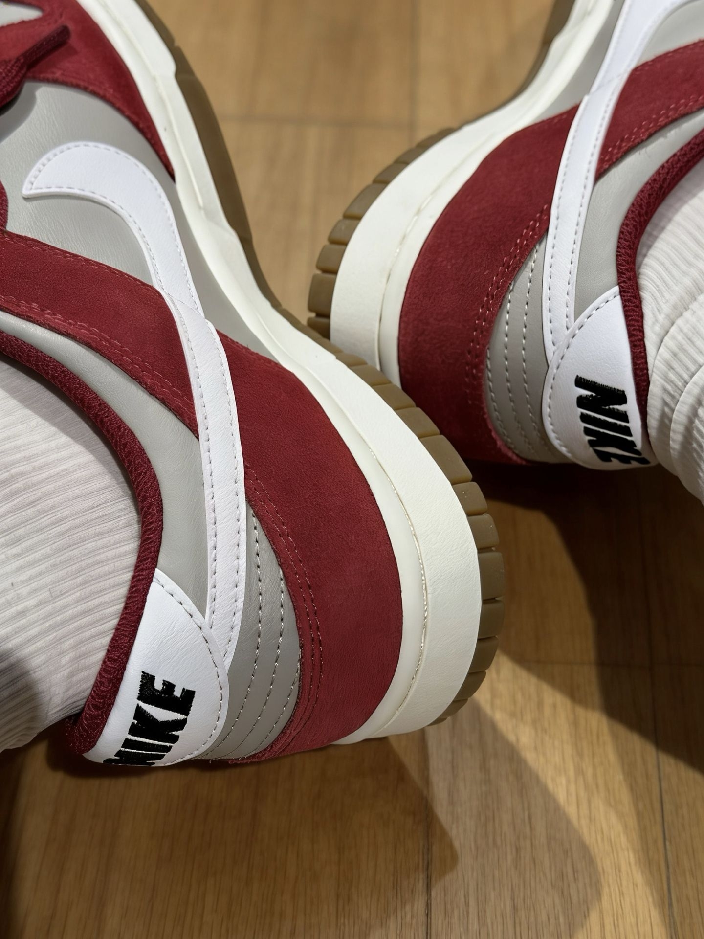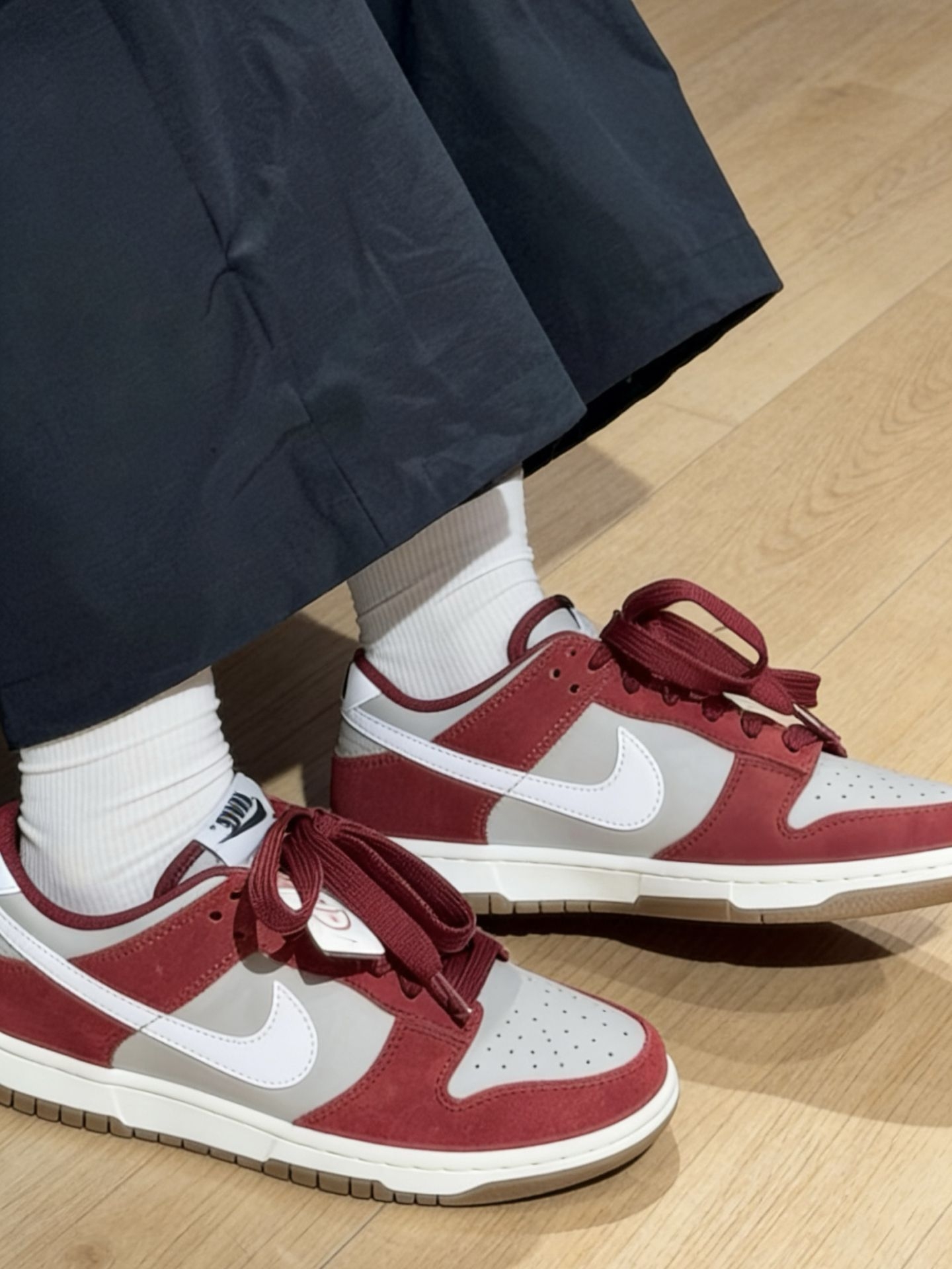 酒红麂皮拼接浅灰鞋面,质感拉满又显白,搭配米白生胶底自带复古滤镜。日常通勤、街头出片都适配,脚感软弹不笨重,是开春鞋柜必入款。#日红配色鞋太好看了 #灰红dunk #酒红色系 #复