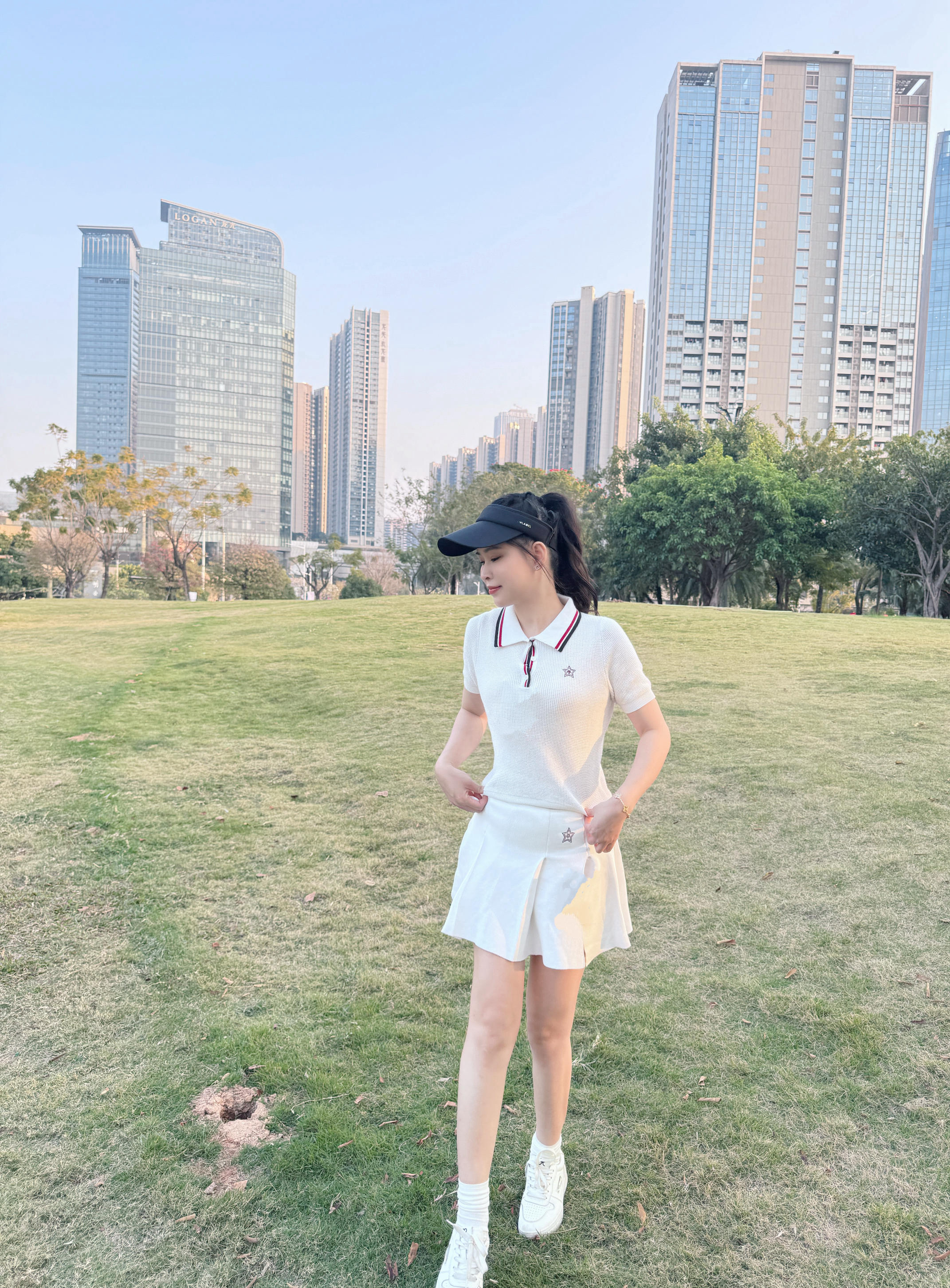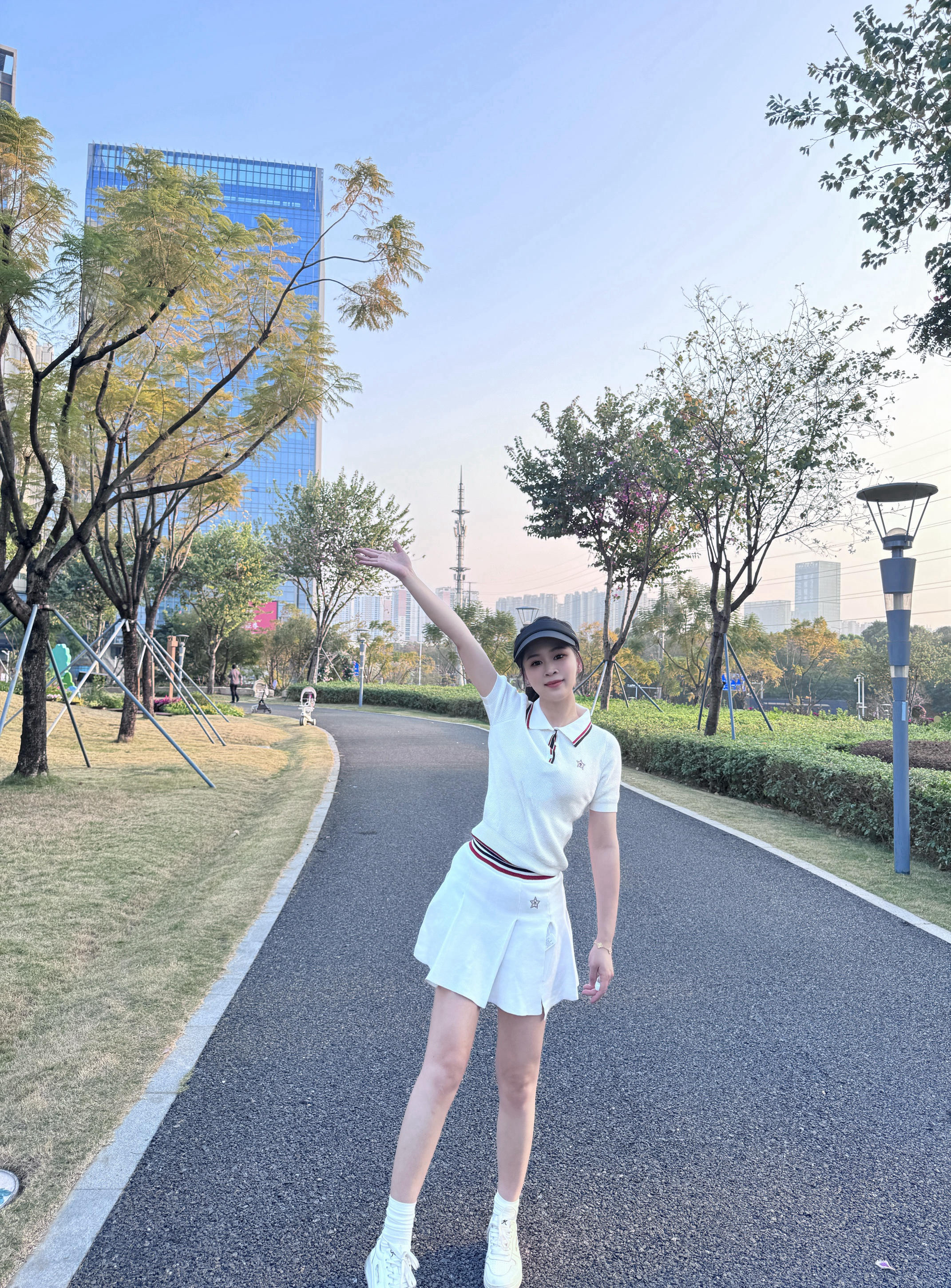 这是一套清新活力的运动休闲风穿搭,非常适合户外出行、轻运动或日常逛街