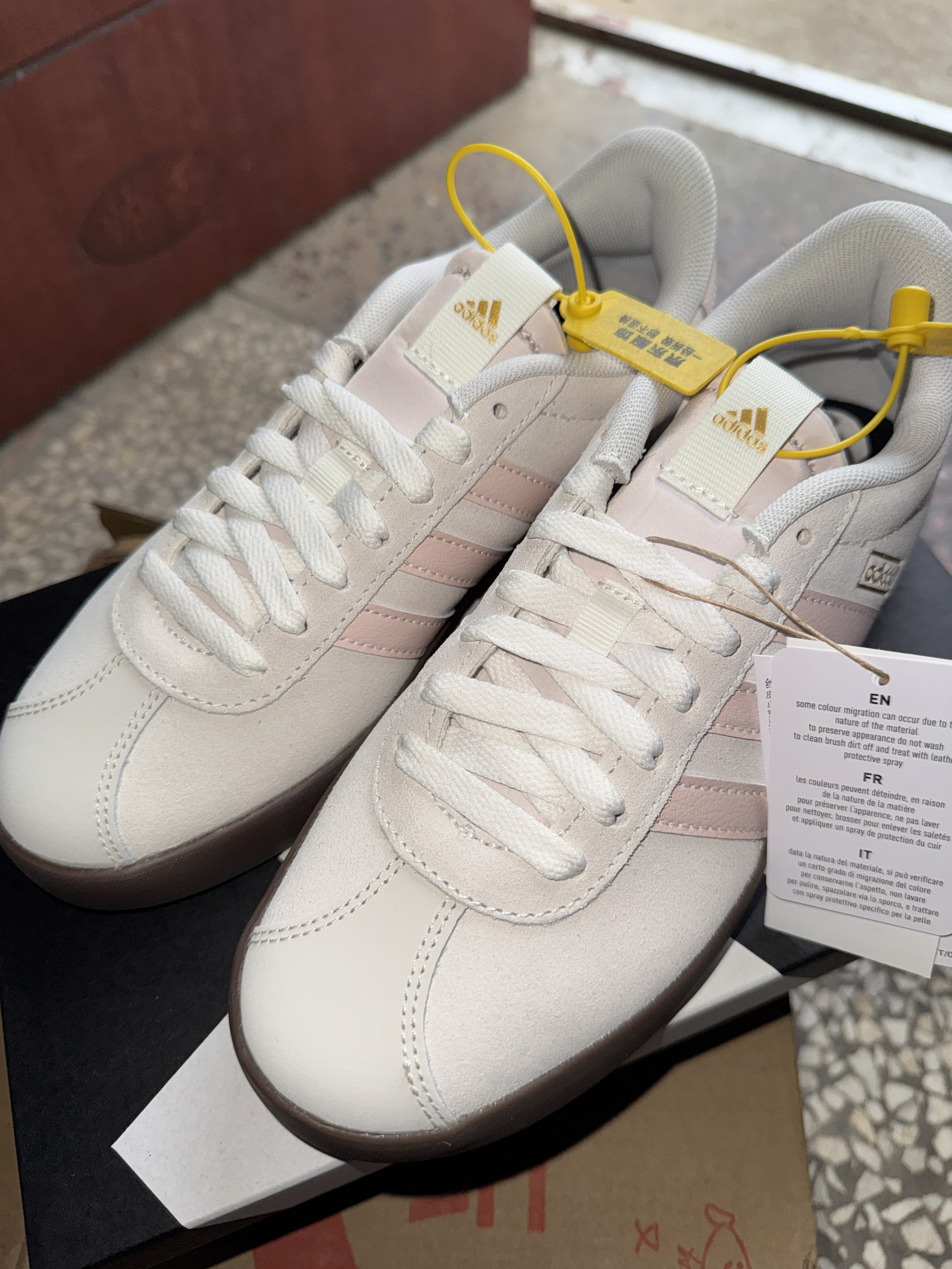 家人们谁懂啊!刚拆箱我就知道这双鞋要成我的开春本命鞋了!拿到手第一感觉就是质感拉满,米白麂皮+浅粉三条纹配生胶底,复古又温柔,完全长在我的审美点上!下面我来说说它给我的感受👇 • 颜值绝杀:米白麂皮+低饱和浅粉条纹+生胶底,温柔复古还显白,金色logo细节拉满。 • 质感在线:麂皮软fufu不廉价,做工扎实,摸起来就很舒服。 • 脚感舒服:码数正,包裹感好,生胶底带缓震,逛街一天也不累。 ...