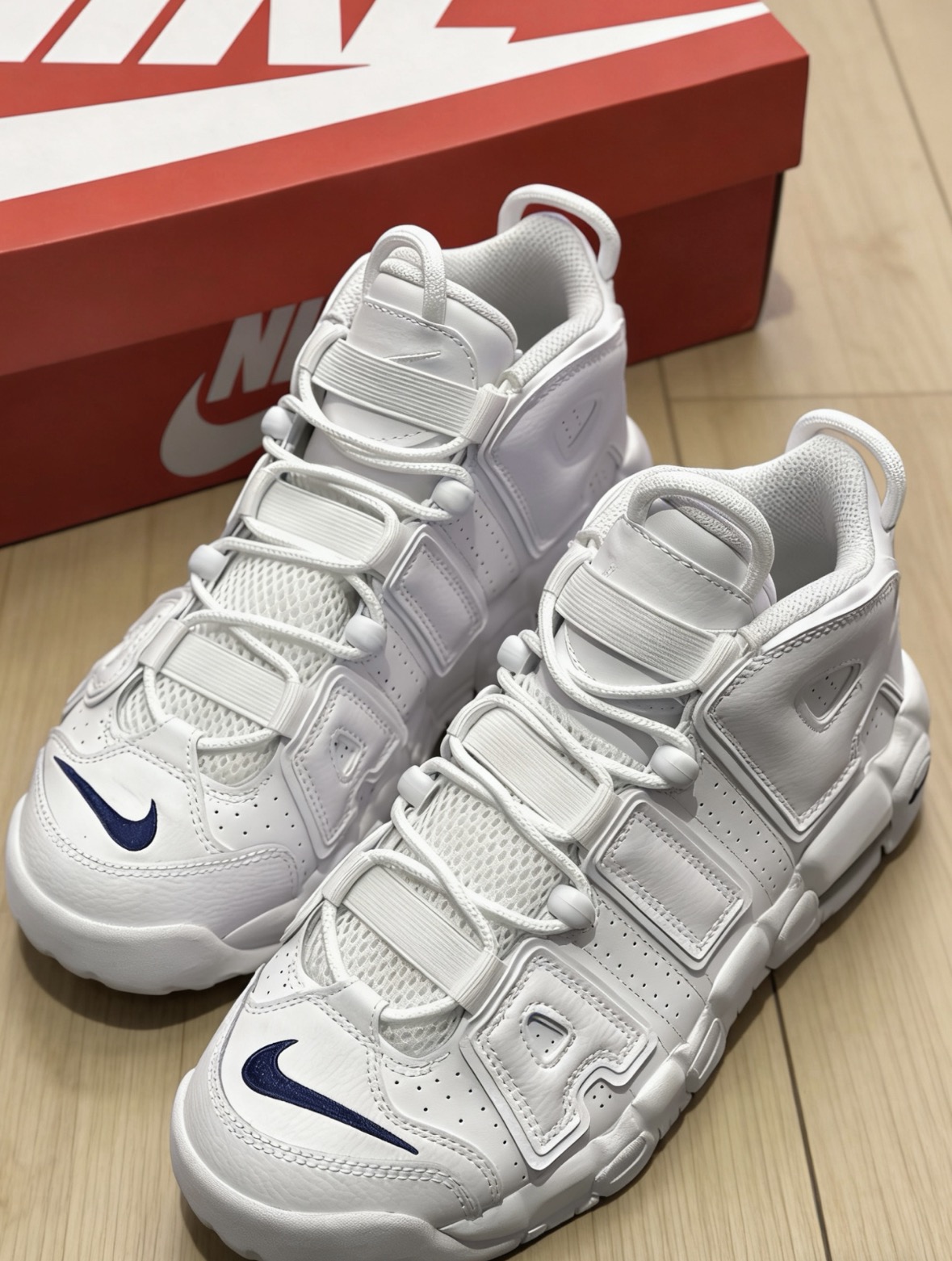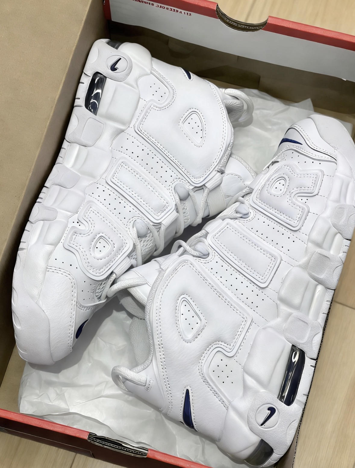 本篇笔记关联了Nike Air More Uptempo 皮蓬大Air 缓震 复古 防水 百搭 防滑耐磨 运动休闲鞋 GS/白色/蓝色等商品,为用户提供真实的使用体验和购买参考。