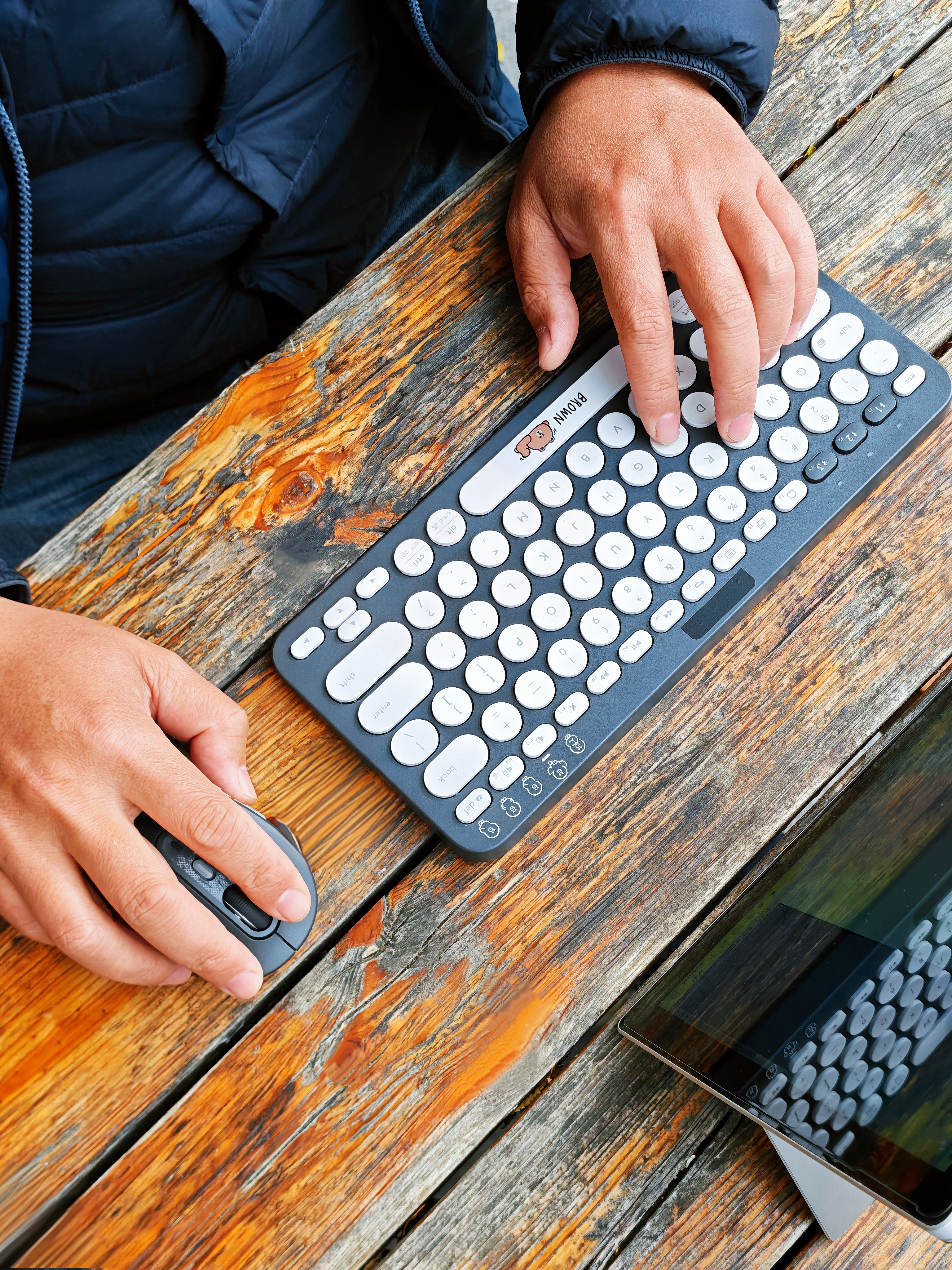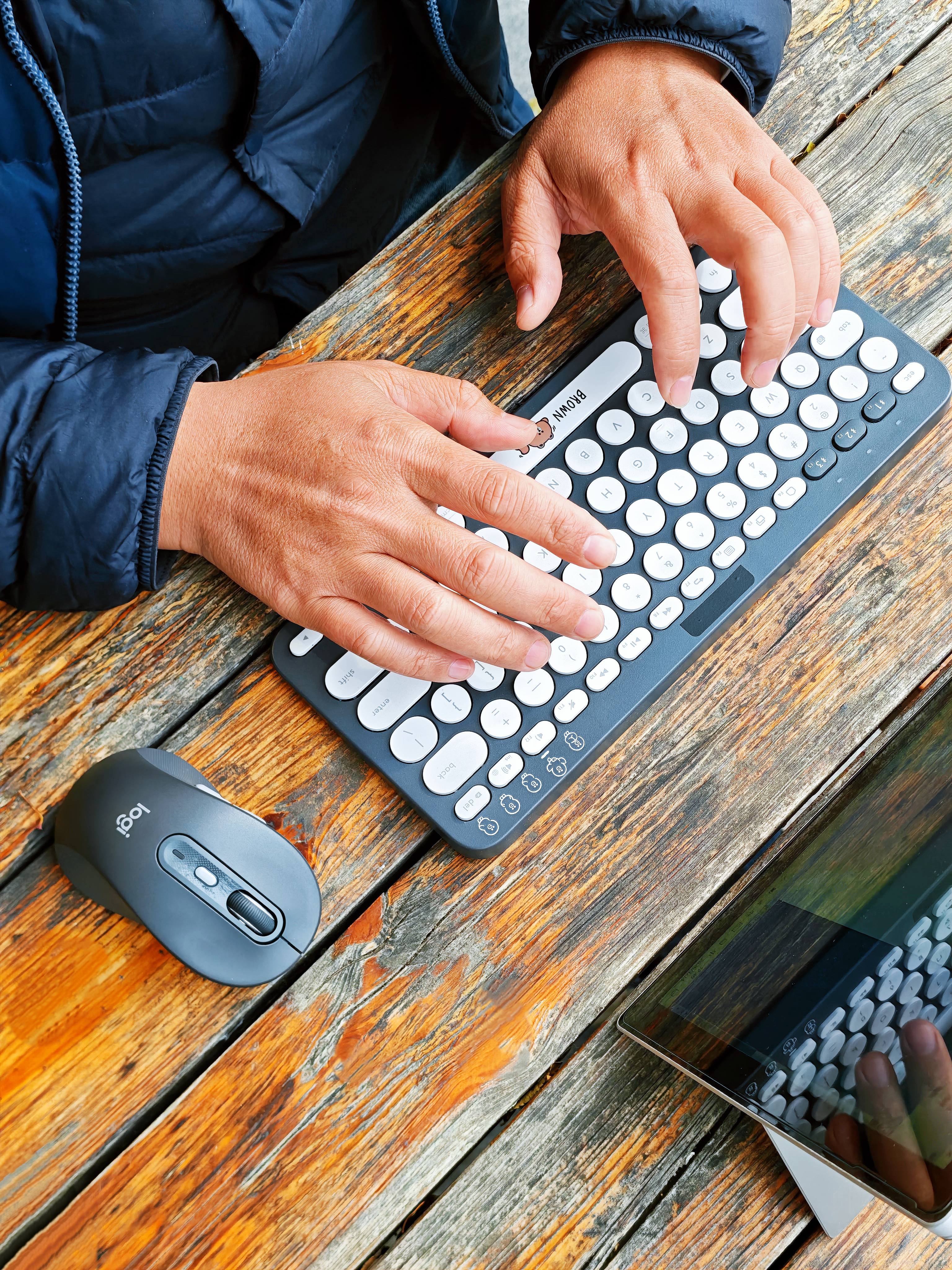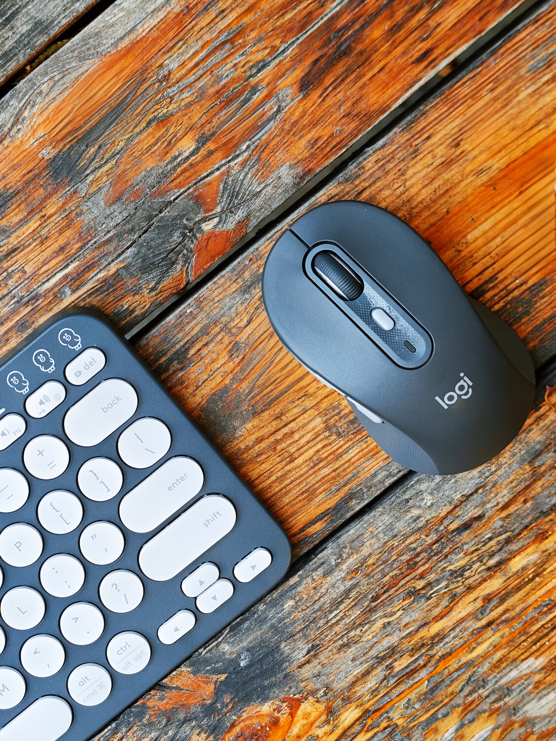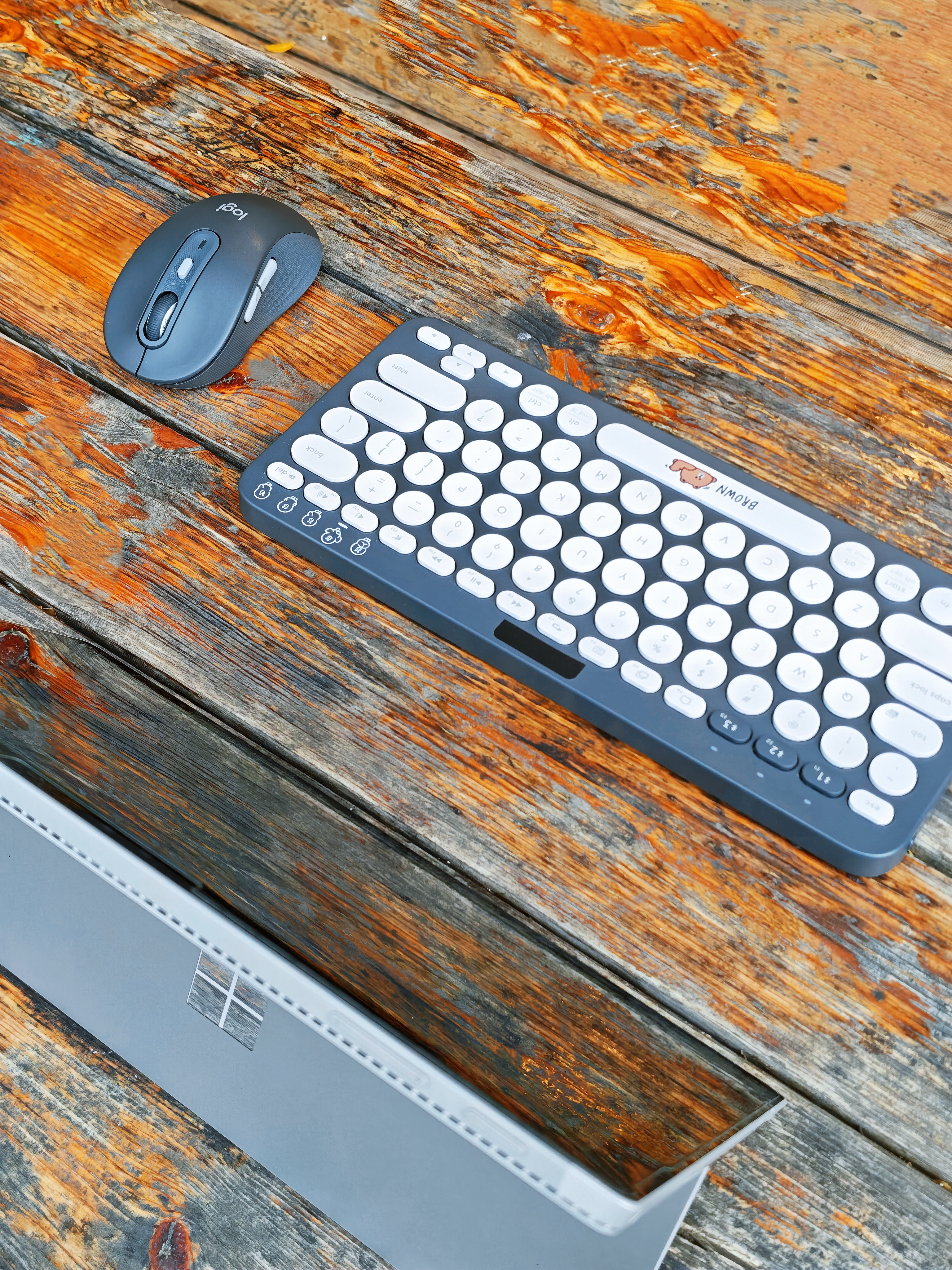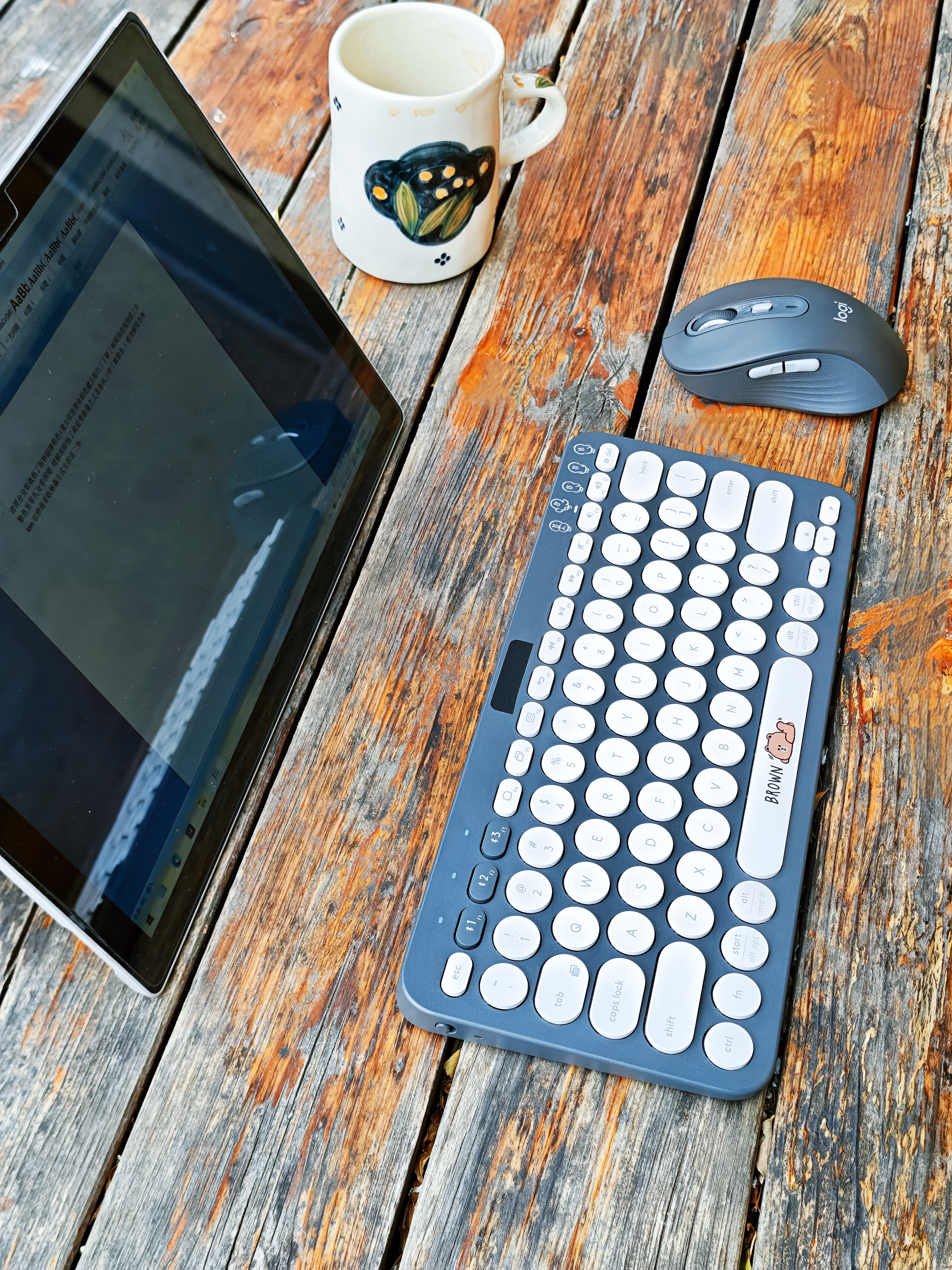 单看罗技M750黑色这款,说心里话,真不-觉-得好看:黑黢黢颜值有点垮,表面材质手感也有点硬邦邦(可能我比较挑,纯个人感觉😂),一度想给它贴个膜整整容。无意中把它和罗技K380布朗熊款搭配在一起,惊喜的发现同调的黑灰配色意外的契合,特别是往实木桌上一摆,竟然毫无违和感,那种轻松办公惬意生活的氛围感油然而生。这套键鼠搭配平板或者是Surface Pro这一类的轻办公设备便携又好用,还特别有格调——...