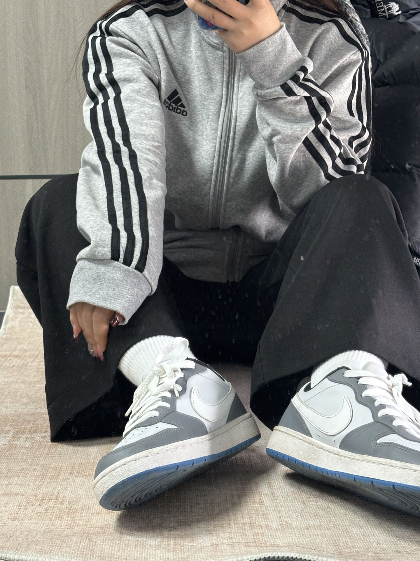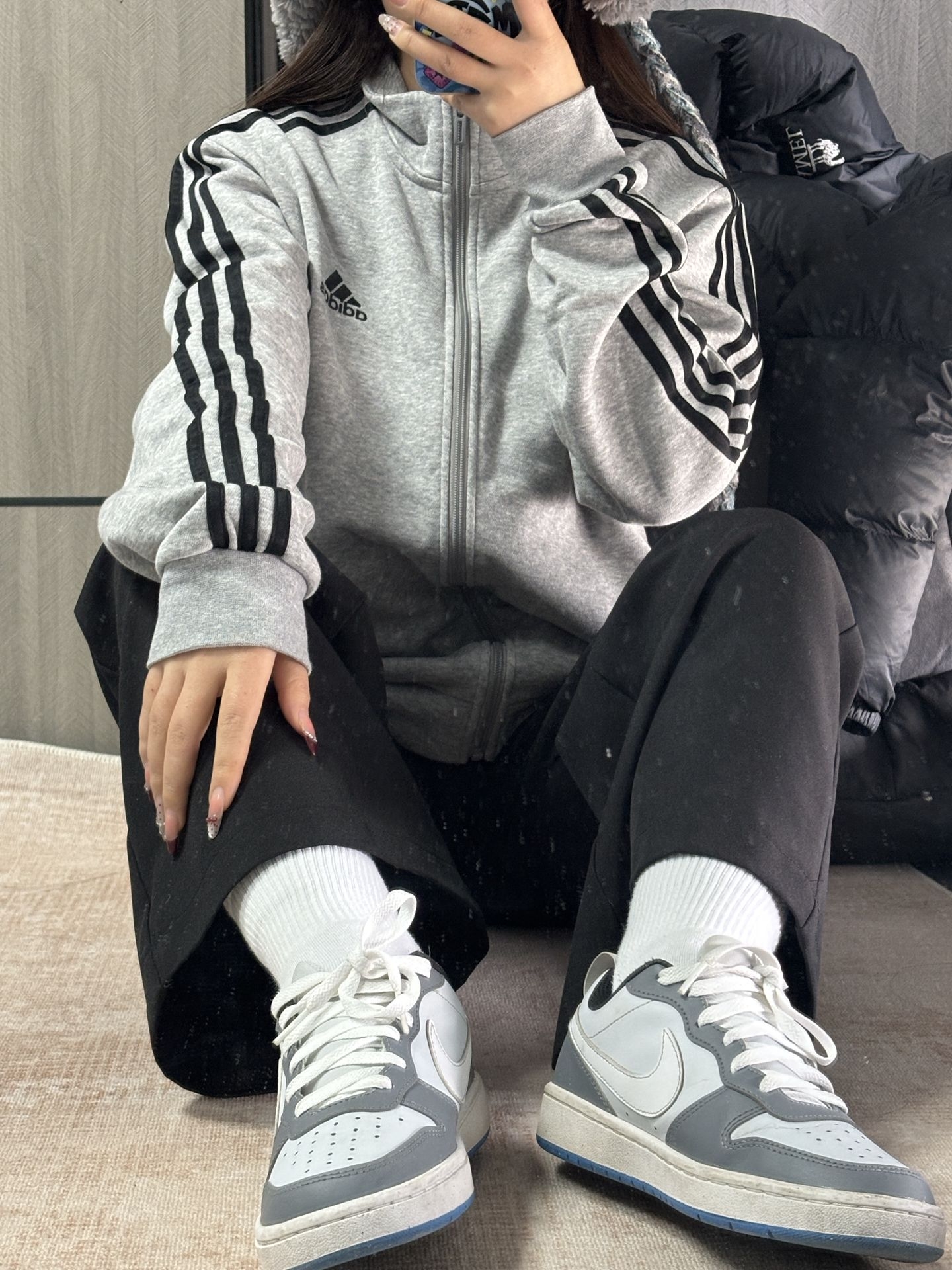 阿迪外套➕Nike版鞋 很不错哦 两个颜色搭配很好看 搭配在一起又很融合 这套搭配舒适又百搭,很适合日常出街