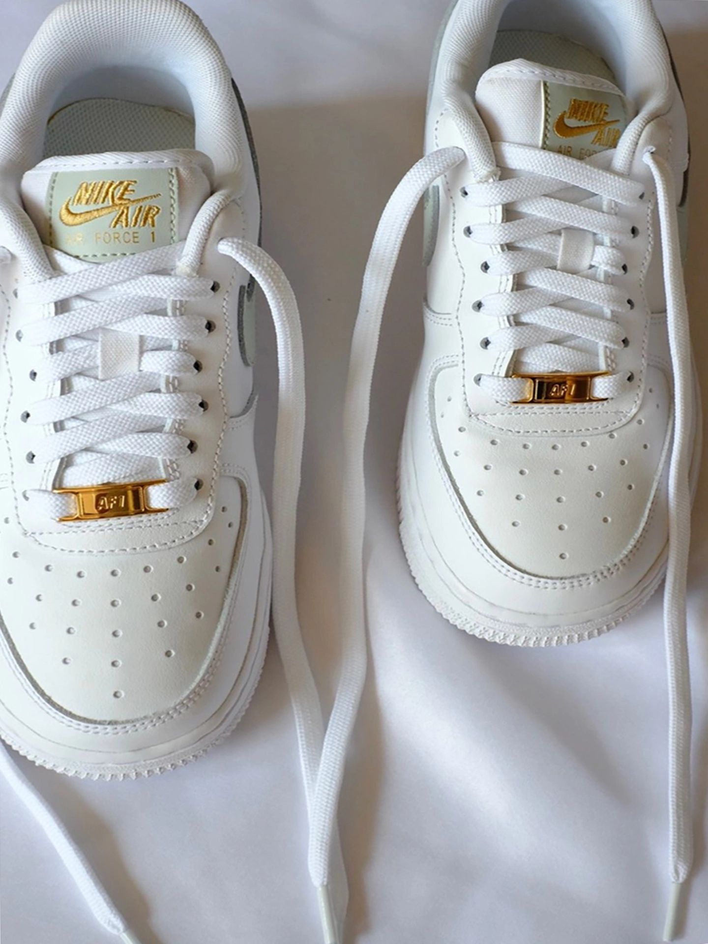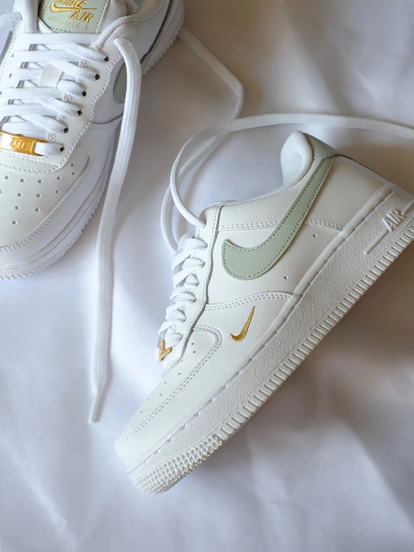 昨天穿新入的Nike Air Force1 07 essential迷你钩低帮女板鞋去公园晒太阳☀️~鞋身白色皮革质感不错,灰绿色swoosh配金色小细节(鞋头金属扣、鞋舌后跟刺绣超耐看)! 搭白色短T+浅蓝直筒牛仔裤,逛了一下午脚感舒服~闺蜜抓着我拍照😎,说这身清爽又有小心机,心里甜滋滋的💗。 尺码正常,瘦脚宽脚都合适✅;白色部分脏了用橡皮擦清洁🧼哦~ 你们喜欢这个配色吗?平时会怎么搭?来评论...