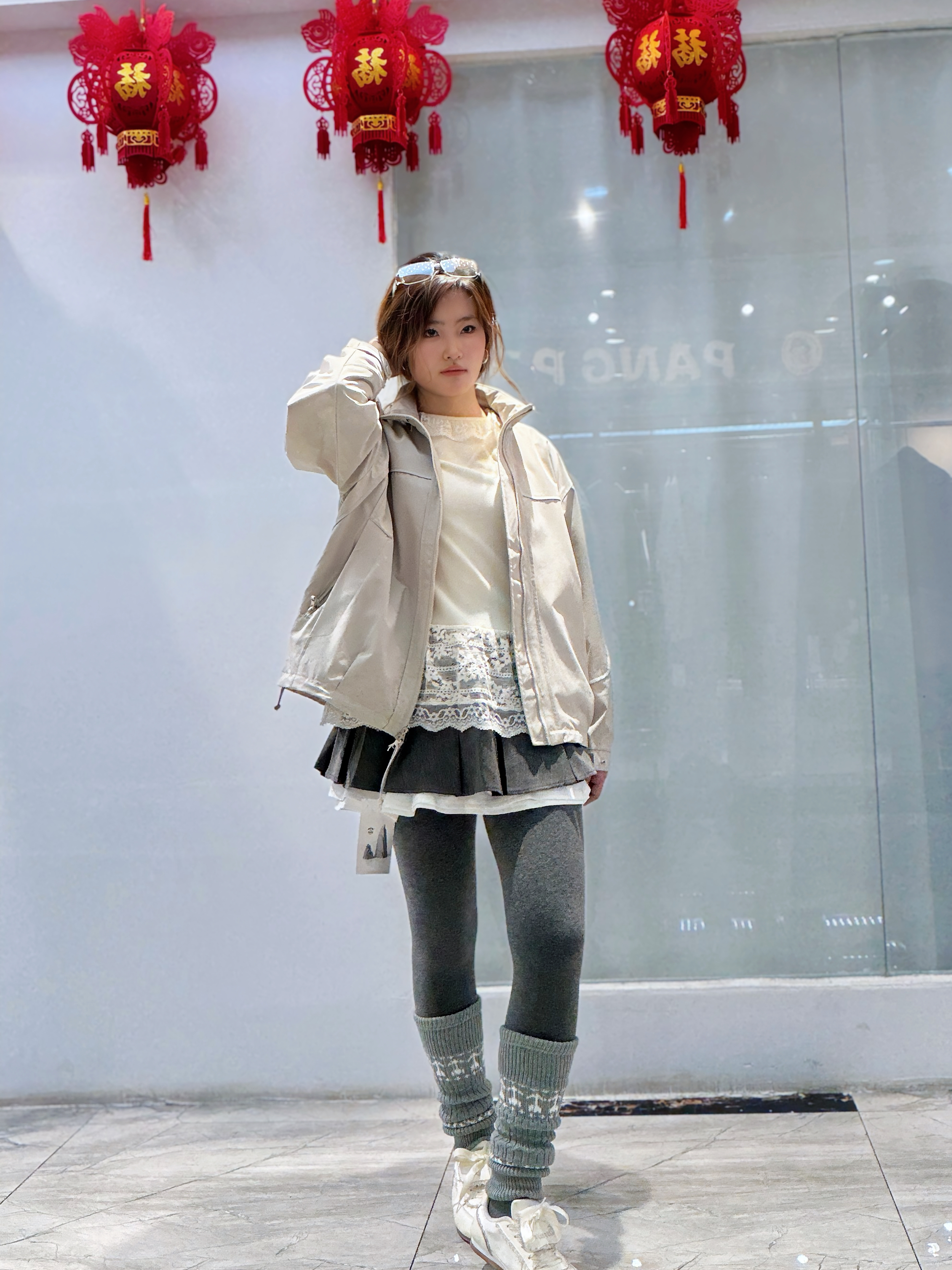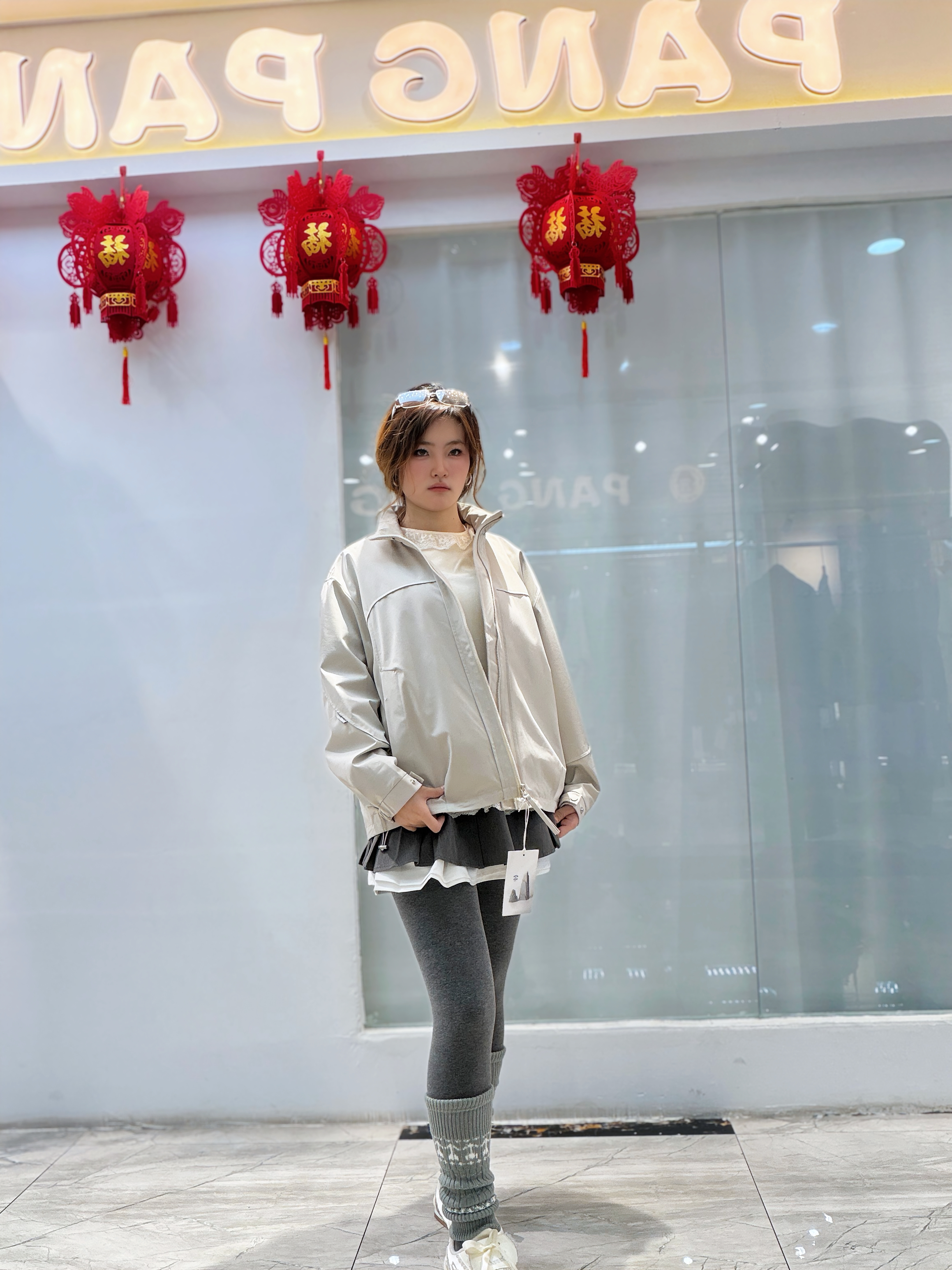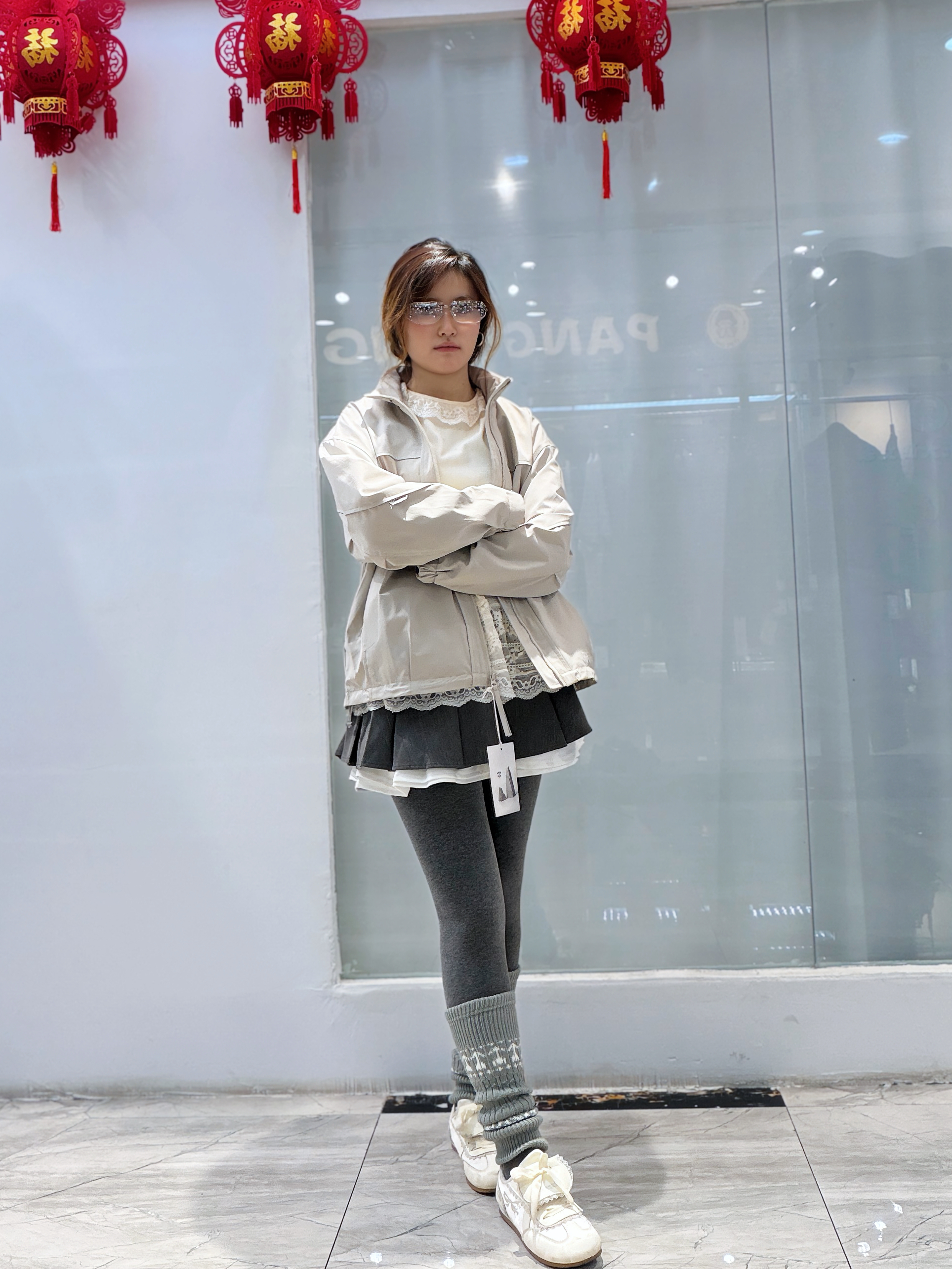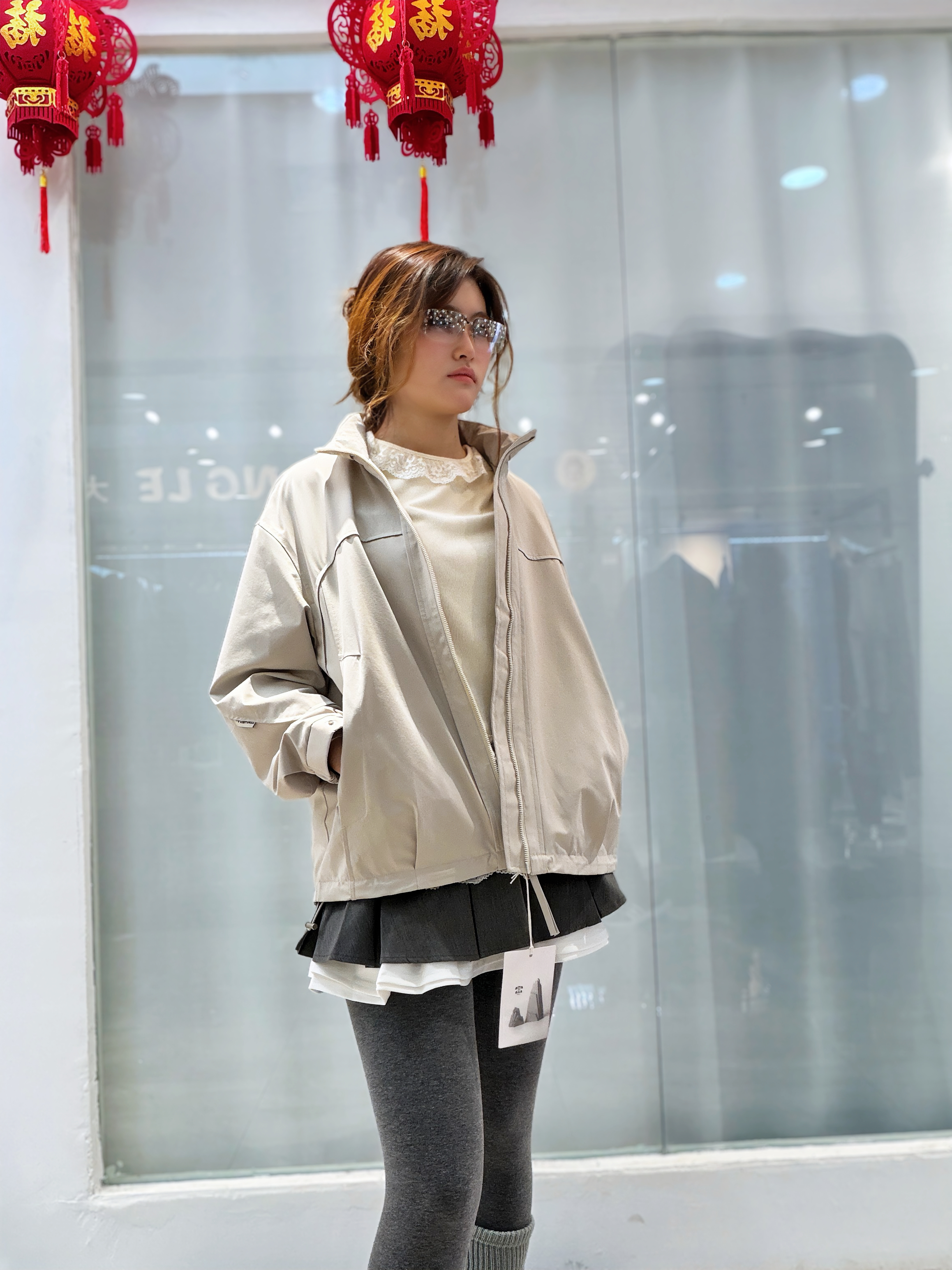 谁懂啊!这件浅卡其冲锋衣真的太适合早春叠穿了👇 • 外套是轻薄的防风面料,版型宽松不挑身材,随便搭都很有松弛感 • 内搭蕾丝拼接上衣+百褶短裙,甜妹感直接拉满,中和了冲锋衣的硬朗 • 灰色leggings+堆堆袜,保暖又显腿细,小白鞋一踩,活力感满分 出门逛街、探店都这么穿,又甜又酷,拍照还巨出片~😎