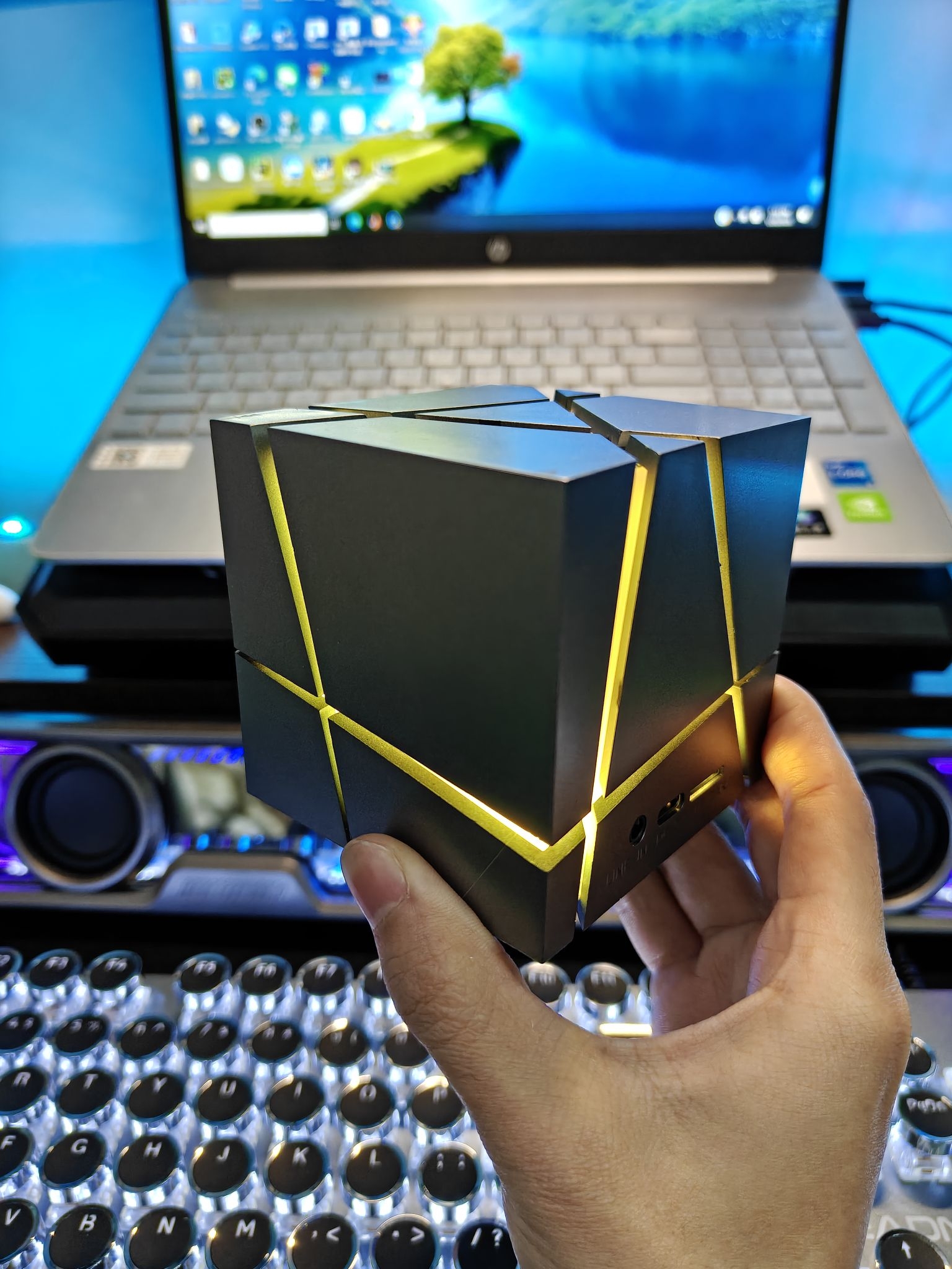 这是一款加湿器➕音响➕炫彩灯光的小摆件 直接往里面加水便可加湿 可以用遥控调节灯光和音响 音质不沉闷,很有律动感 虚拟的火焰效果也非常。有新年的氛围感