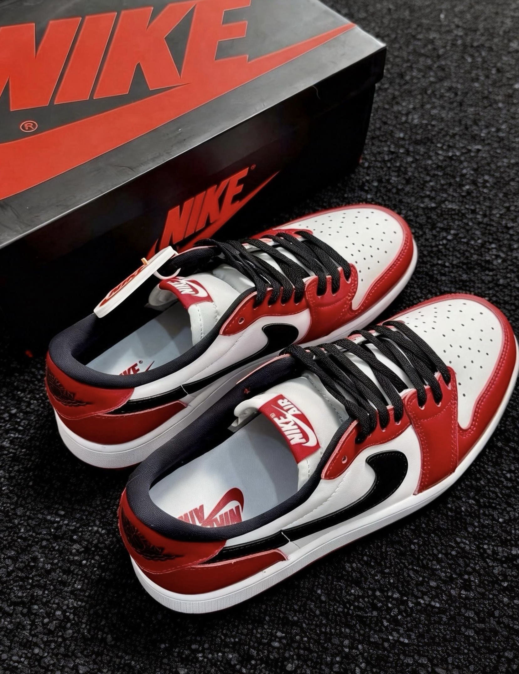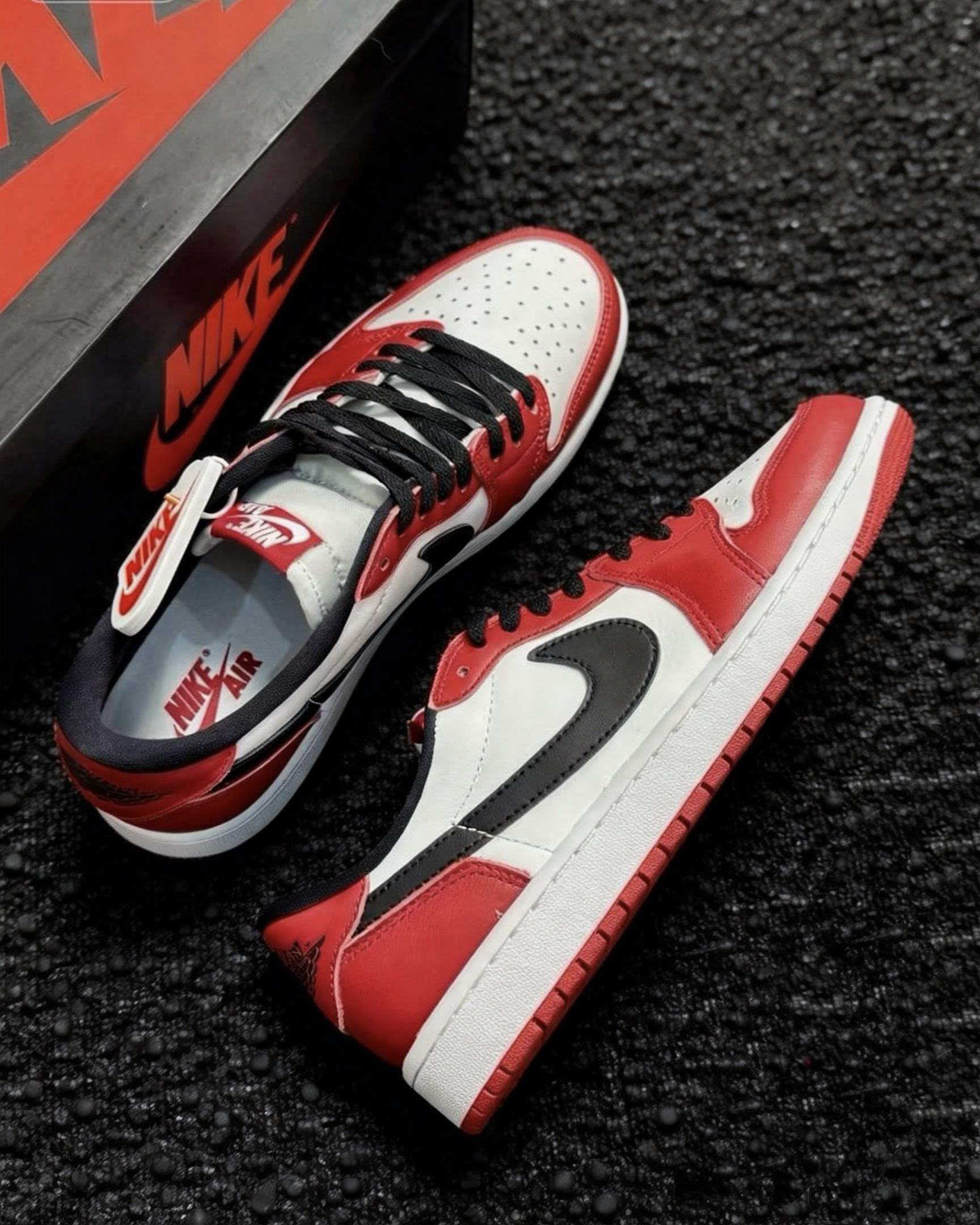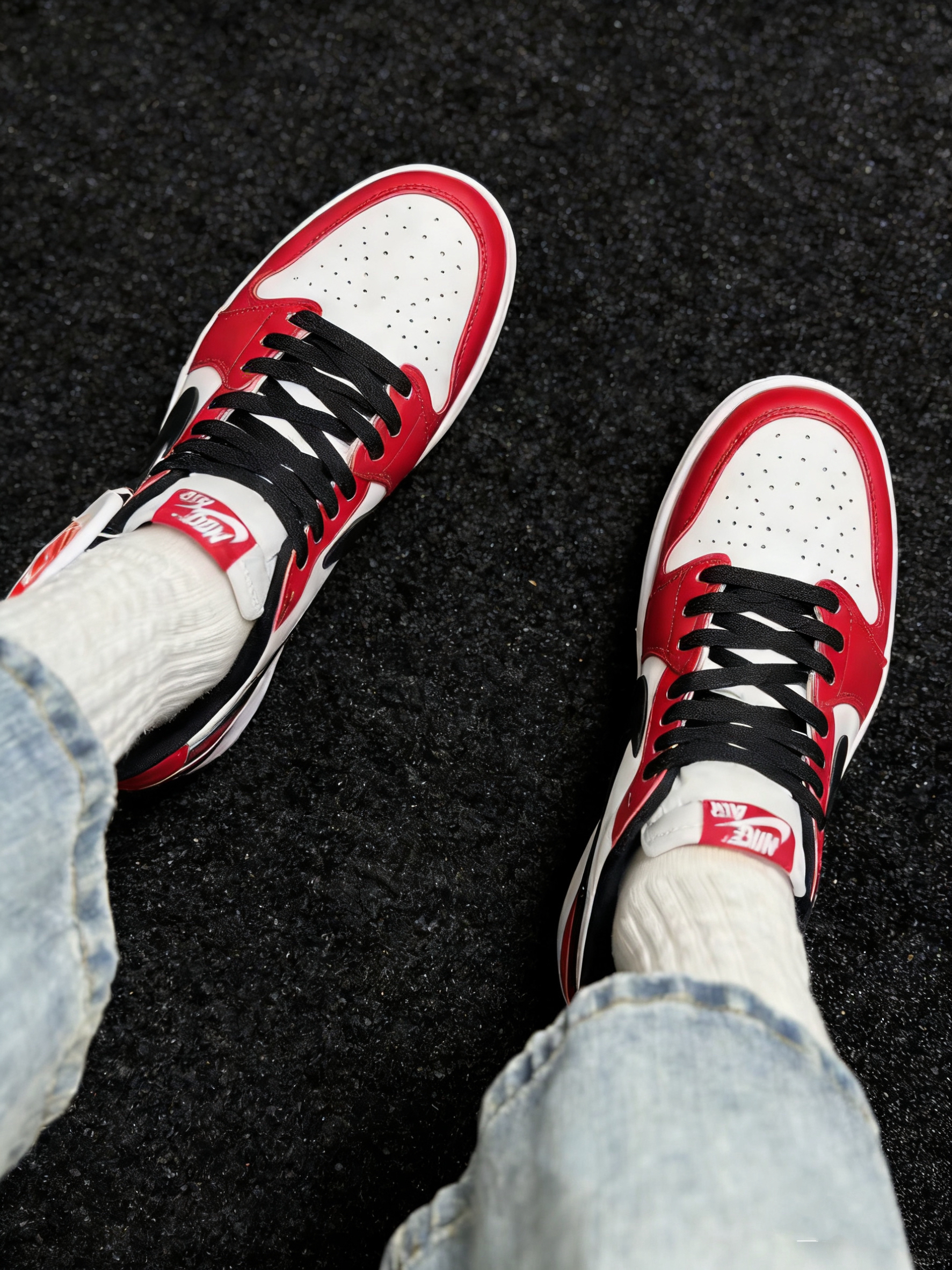 🎨 设计与传承:原汁原味的“时间胶囊” 1️⃣经典配色公式:它严格遵循了1985年元年的配色方案——洁净的白色皮革基底、热烈的红色覆盖层、勾勒轮廓的黑色Swoosh与鞋领。这种色彩组合不仅是芝加哥公牛队的象征,更在80年代打破了篮球鞋的非黑即白,成为潮流史上最醒目的一笔。 2️⃣忠于OG的细节:鞋舌上经典的 “Nike Air” 标签、后跟压印的飞翼(Wings)Logo 都得以完整保留。这些细...
