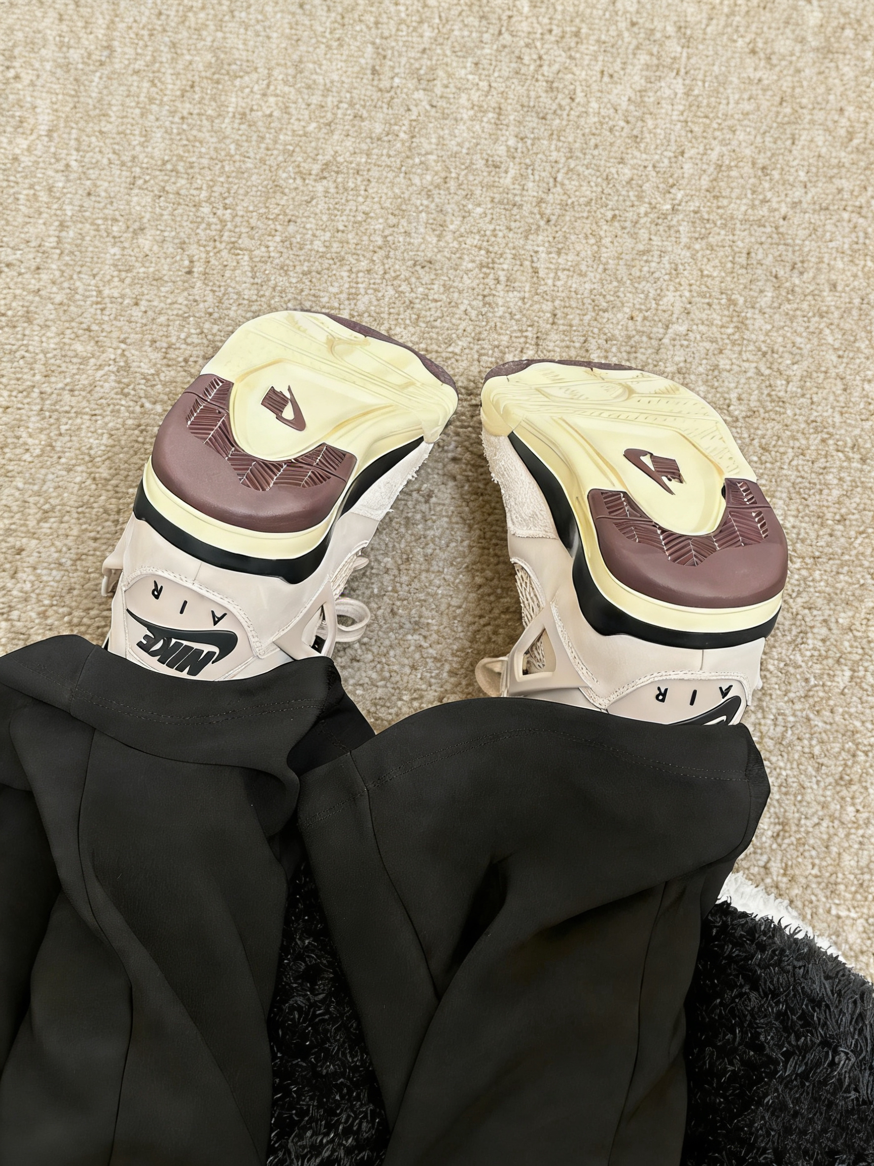 🎨 设计语言: 1️⃣鞋子采用了一种名为 “Fossil Stone”(化石石) 的高级灰调贯穿全身,营造出统一、静谧且极具高级感的单色视觉效果。 2️⃣鞋身并非单一材质,而是由高品质的麂皮与皮革精心拼接而成。不同纹理的材质在光线下呈现细腻的层次变化,触感更是柔软丰富,远超普通市售款。 3️⃣最引人注目的是不对称的鞋舌设计——左脚饰以经典的Jumpman吊牌,右脚则替换为A Ma Maniére的...