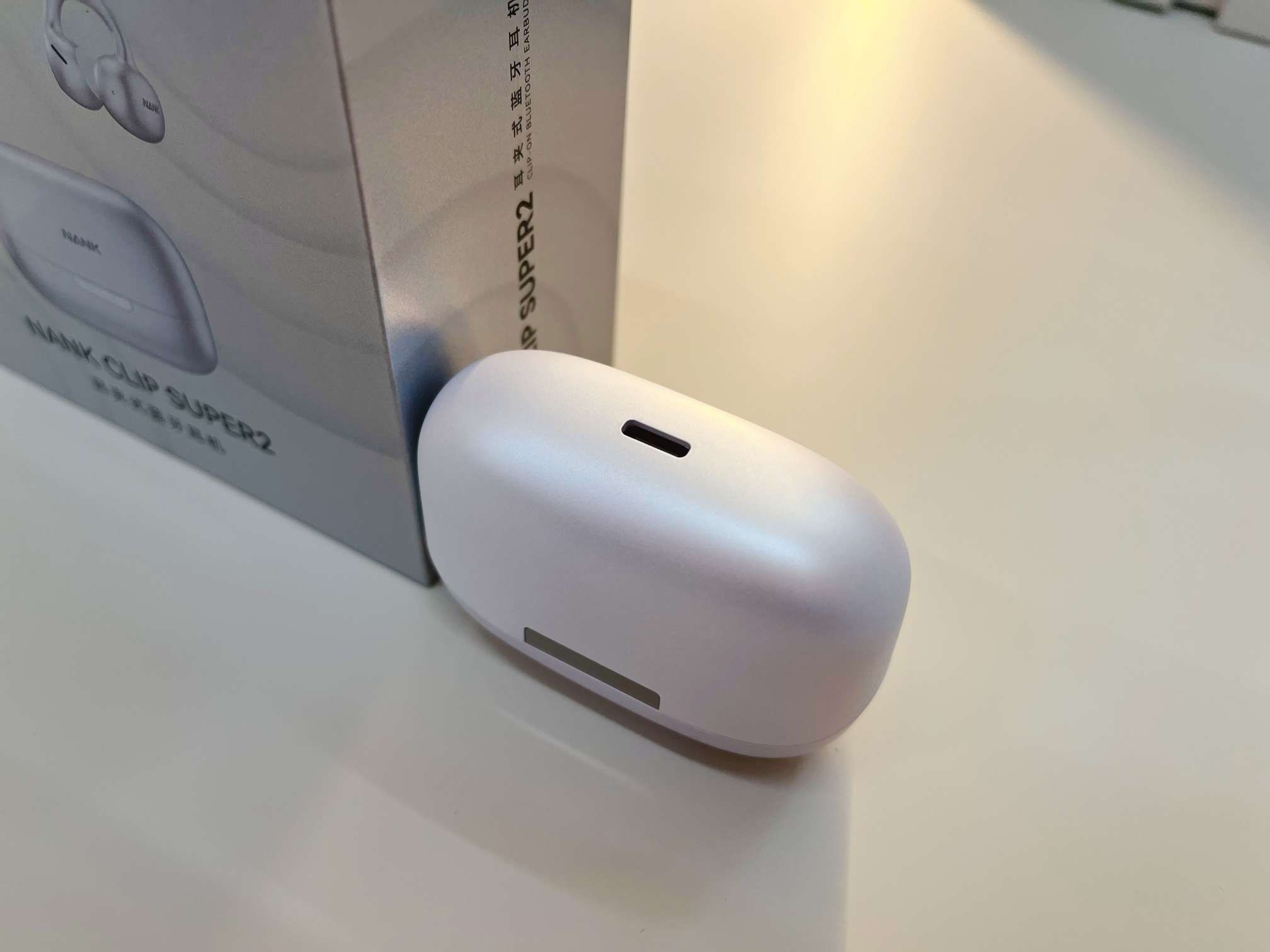 南卡ClipSuper2的包装简洁大方,打开后能看到耳机主体、充电盒、一条Type-C充电线以及一份说明书。充电盒是亲肤的磨砂质感,手感不错,体积小巧,轻松就能塞进裤兜或者小包包里。