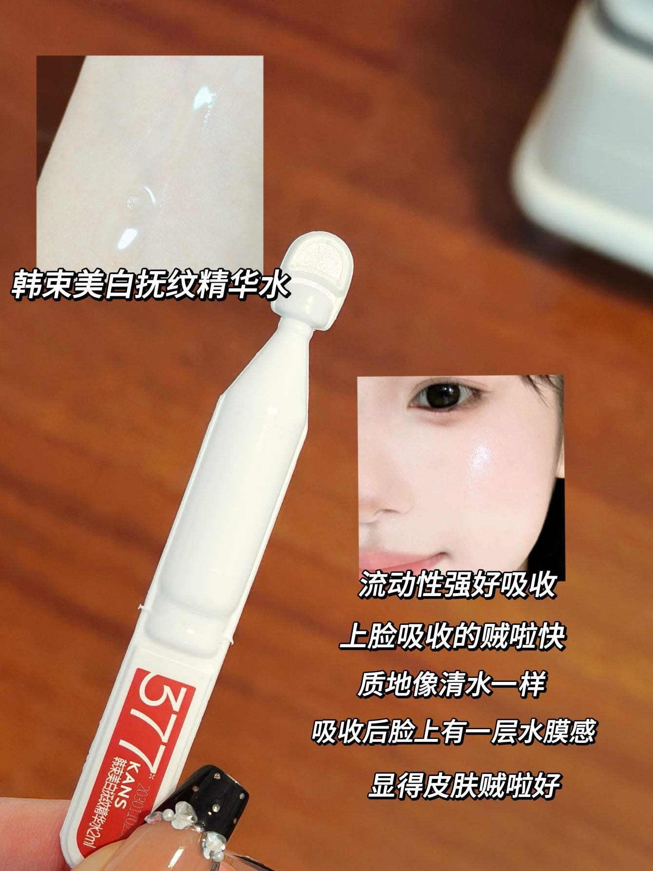 本篇笔记关联了Kans/韩束 377次抛护肤套装【水+乳+精华】美白淡斑紧致弹嫩 水2ml+乳2ml+精华1.5ml、Kans/韩束 377闪充环肽亮白棒次抛精华 美白抗皱补水祛斑去黄提亮淡纹去痘印 美白淡斑等商品,为用户提供真实的使用体验和购买参考。